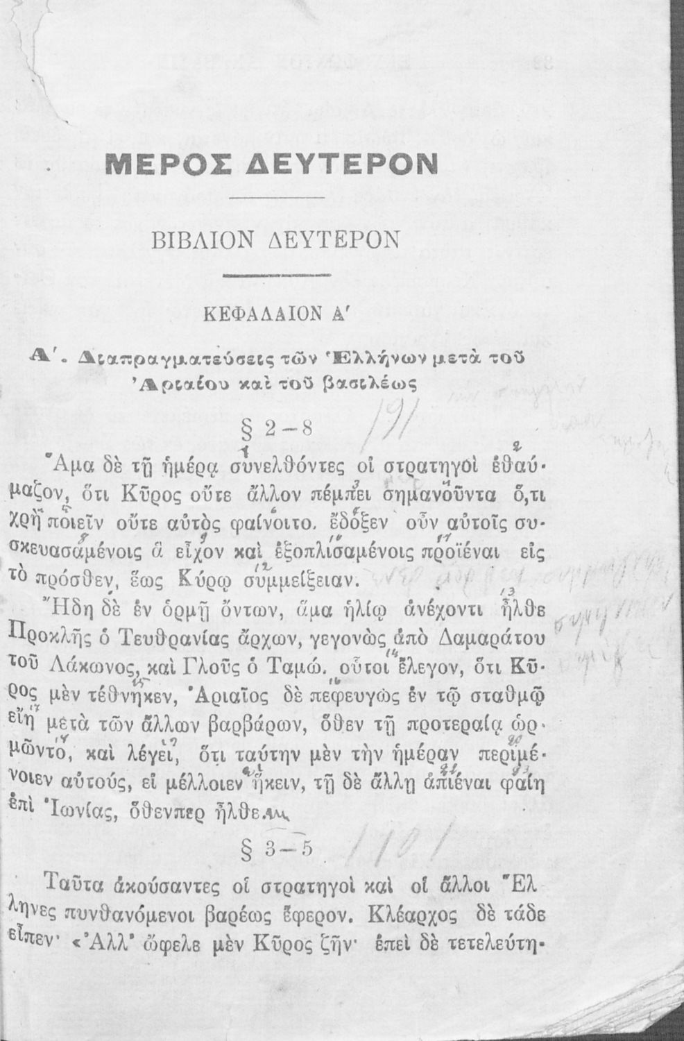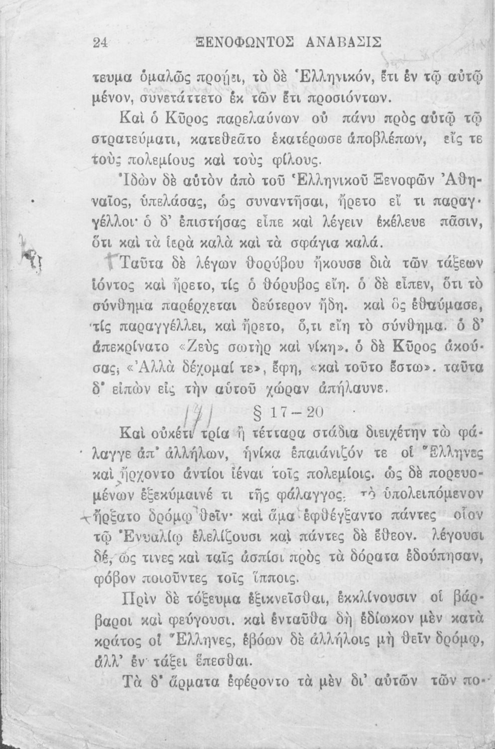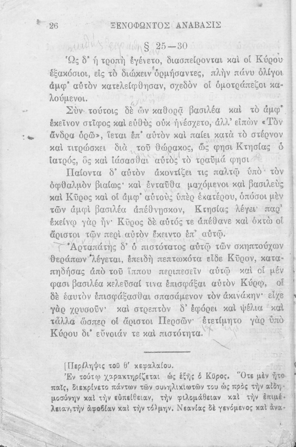 Σχολικό εγχειρίδιο Αρχαίων Ελληνικών που περιλαμβάνει αποσπάσματα από το έργο του Ξενοφώντα Κύρου Ανάβασις, εισαγωγικά σχόλια για τη ζωή και το έργο του, ερμηνευτικές και γραμματικές παρατηρήσεις, λεξικολογικά σχόλια και πίνακα κυρίων ονομάτων.