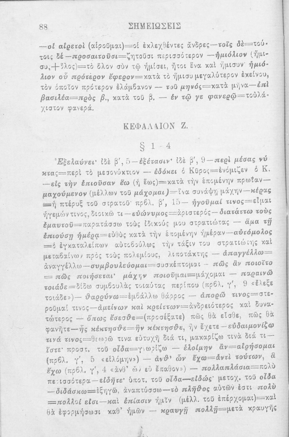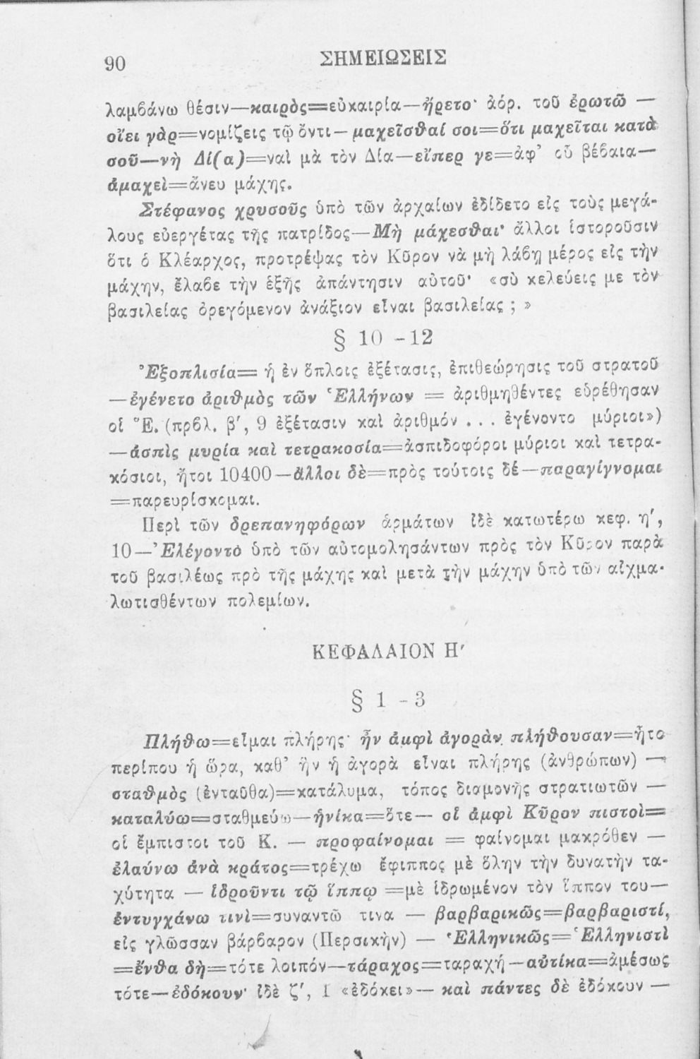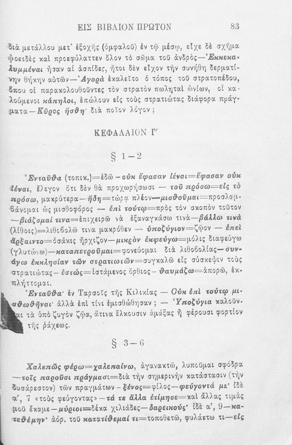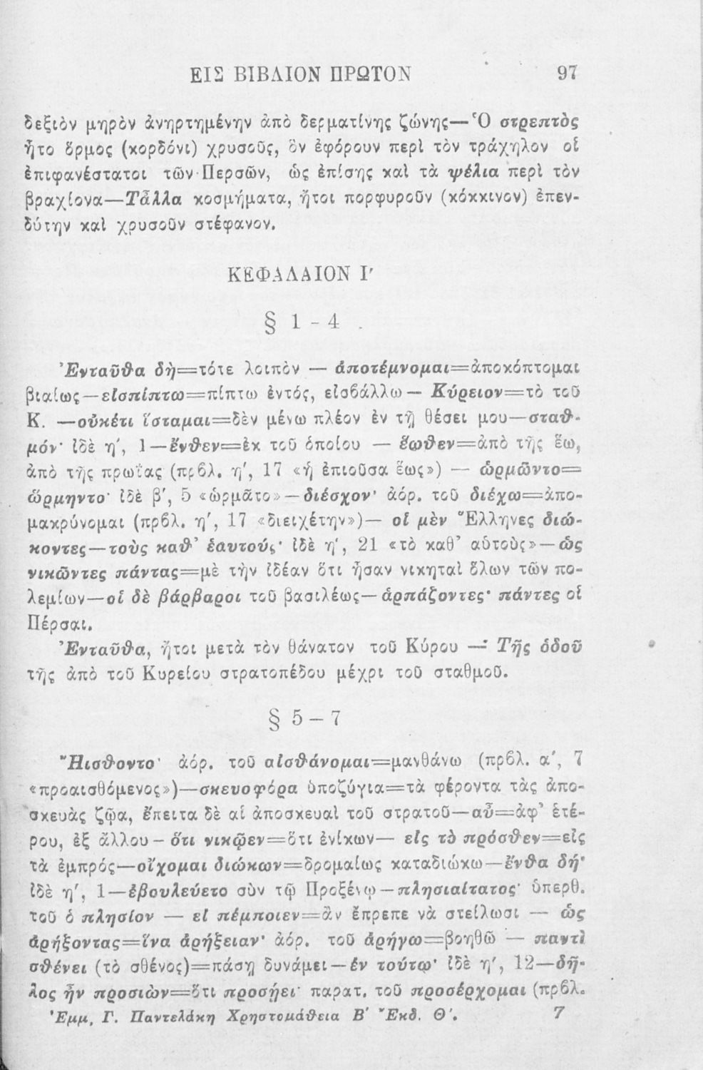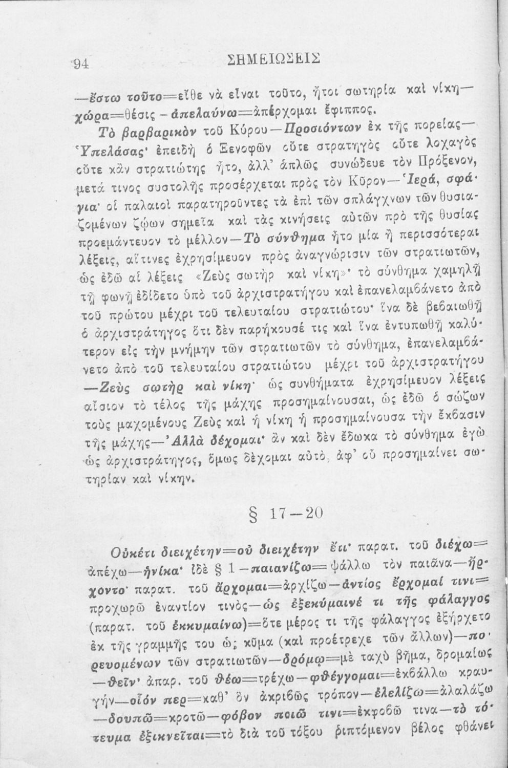 Σχολικό εγχειρίδιο Αρχαίων Ελληνικών για τα Ελληνικά Σχολεία, Γυμνάσια και Παρθεναγωγεία που περιλαμβάνει αποσπάσματα από το έργο του Ξενοφώντα Κύρου Ανάβασις, και λεξικογραφικές παρατηρήσεις.