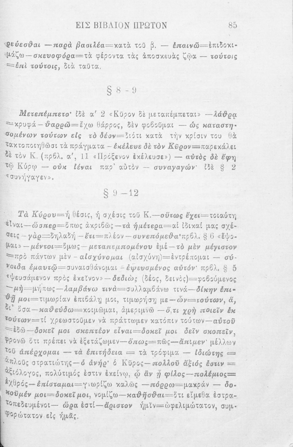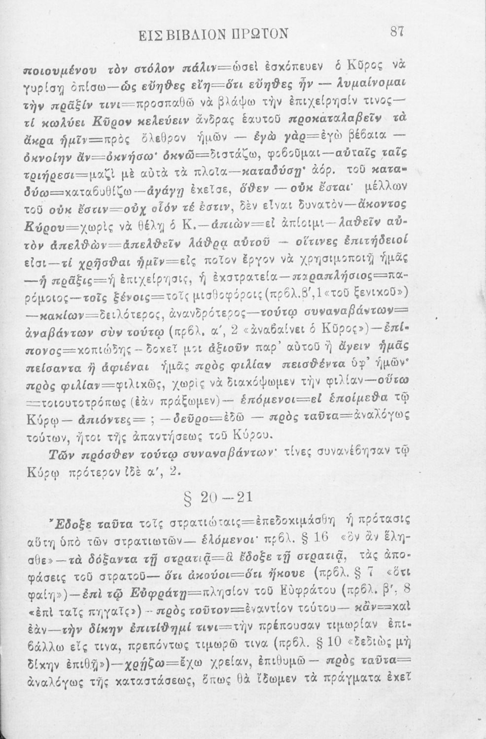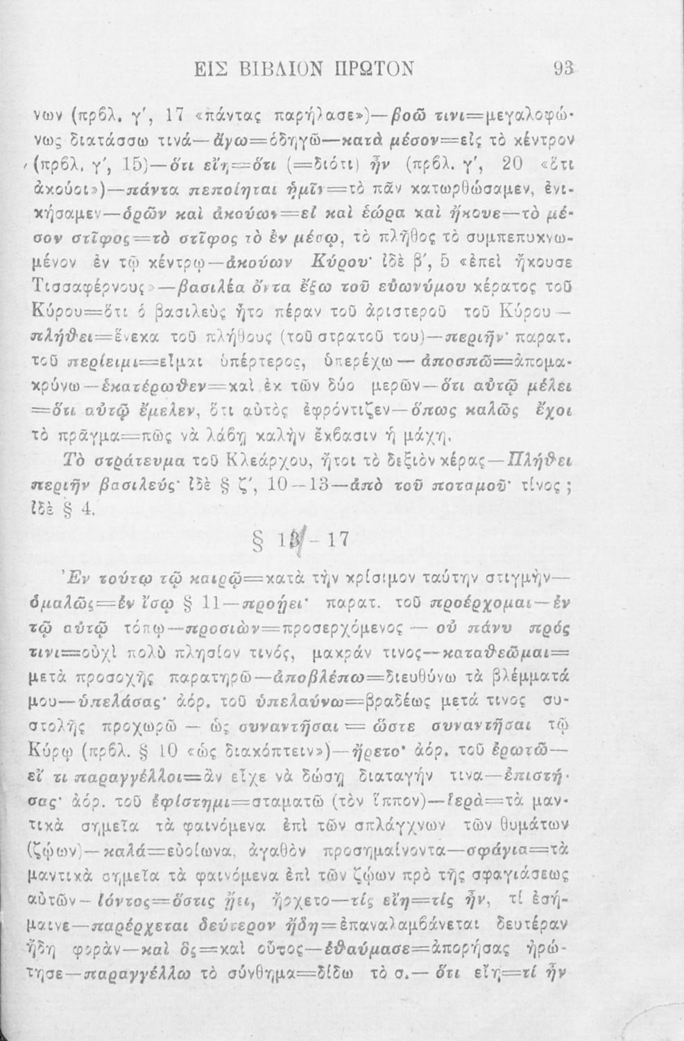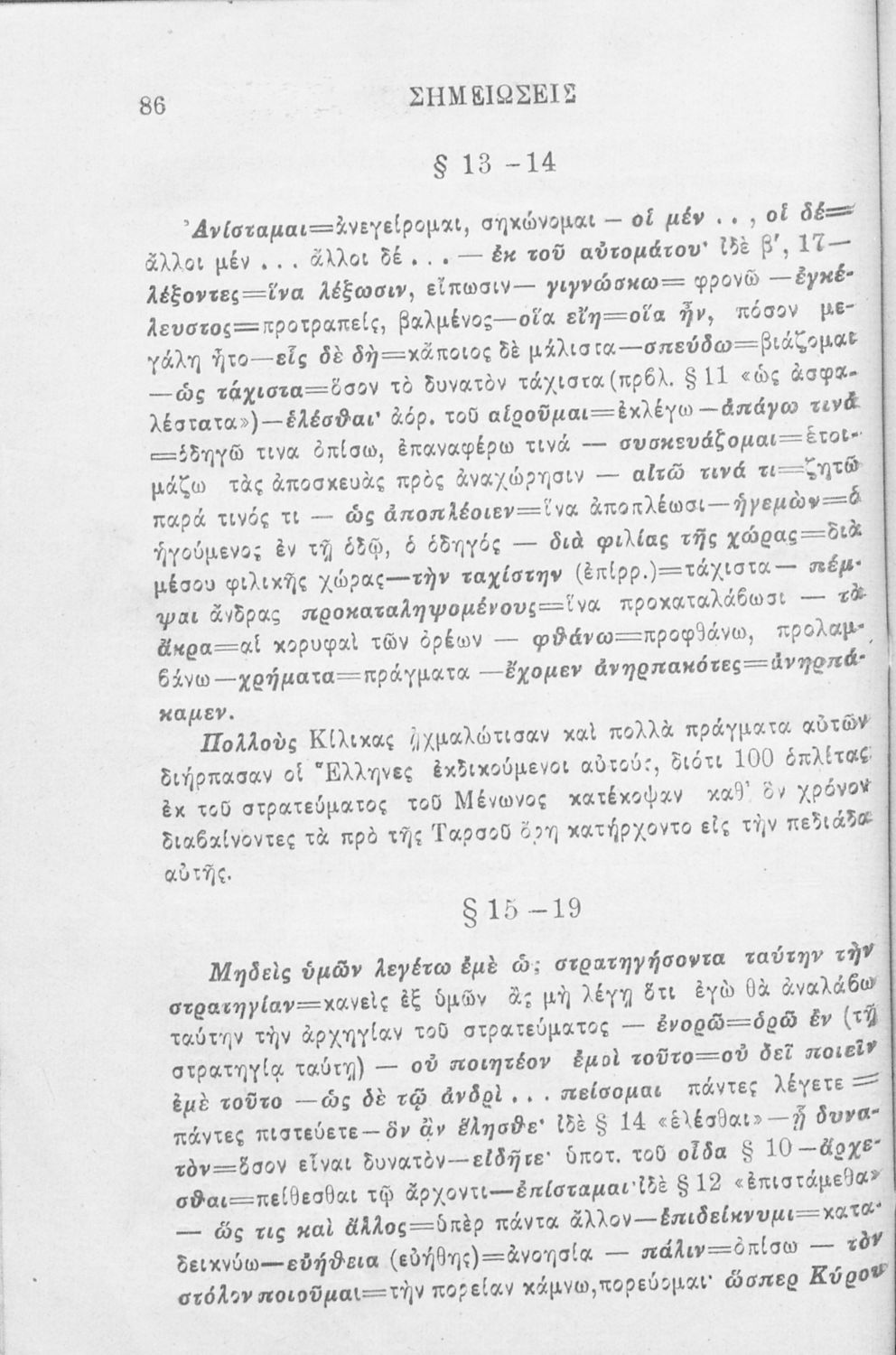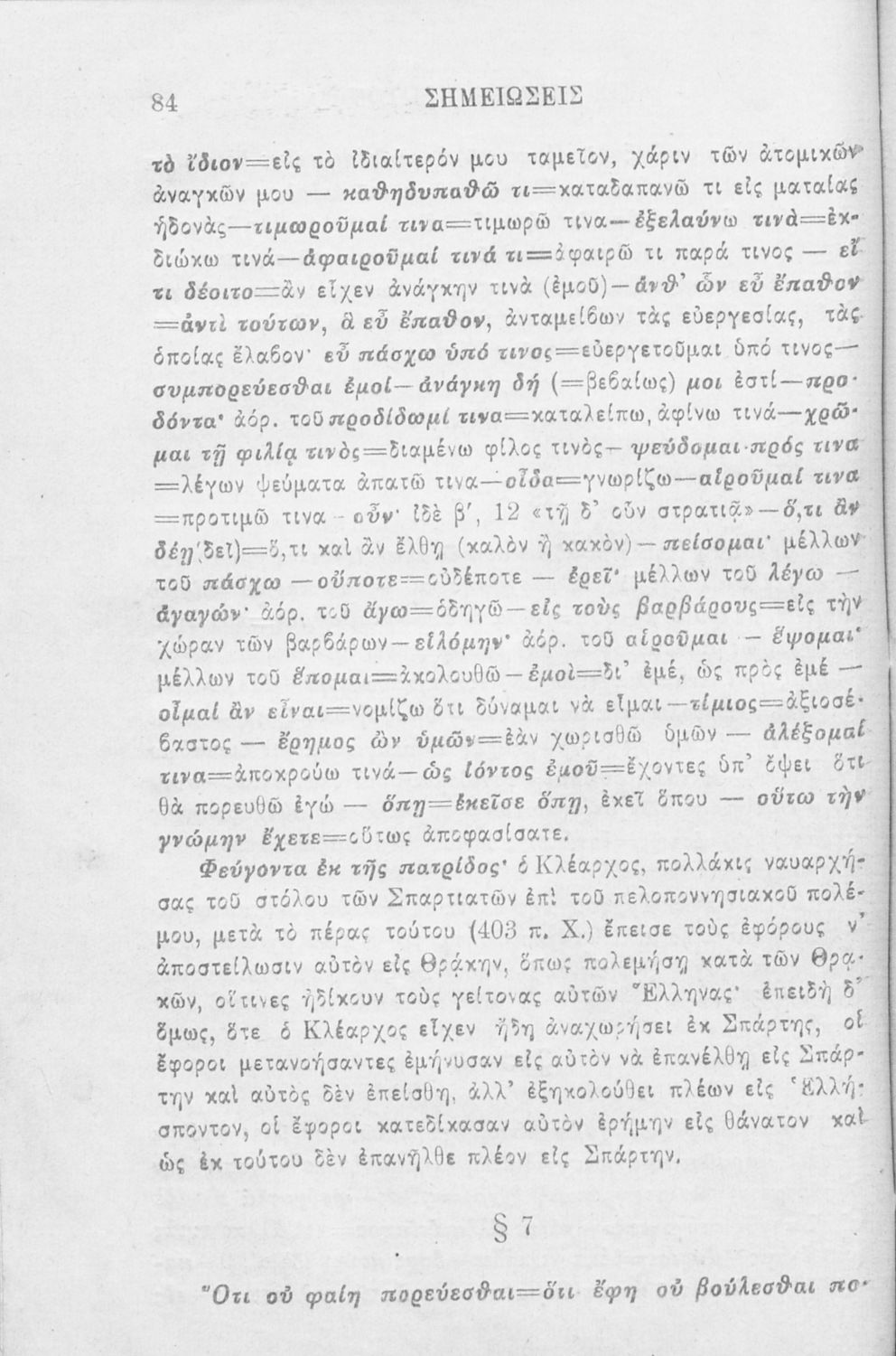 Σχολικό εγχειρίδιο Αρχαίων Ελληνικών για τα Ελληνικά Σχολεία, Γυμνάσια και Παρθεναγωγεία που περιλαμβάνει αποσπάσματα από το έργο του Ξενοφώντα Κύρου Ανάβασις, και λεξικογραφικές παρατηρήσεις.