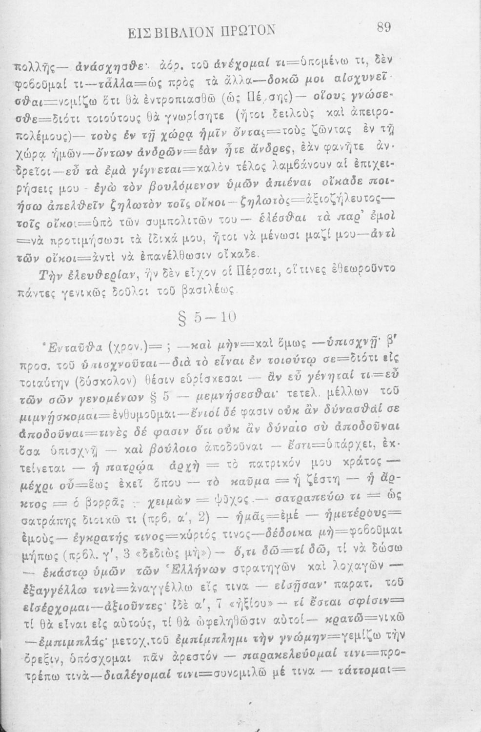 Σχολικό εγχειρίδιο Αρχαίων Ελληνικών για τα Ελληνικά Σχολεία και Παρθεναγωγεία που περιλαμβάνει αποσπάσματα από το έργο του Ξενοφώντα Κύρου Ανάβασις, και λεξικογραφικές παρατηρήσεις.
