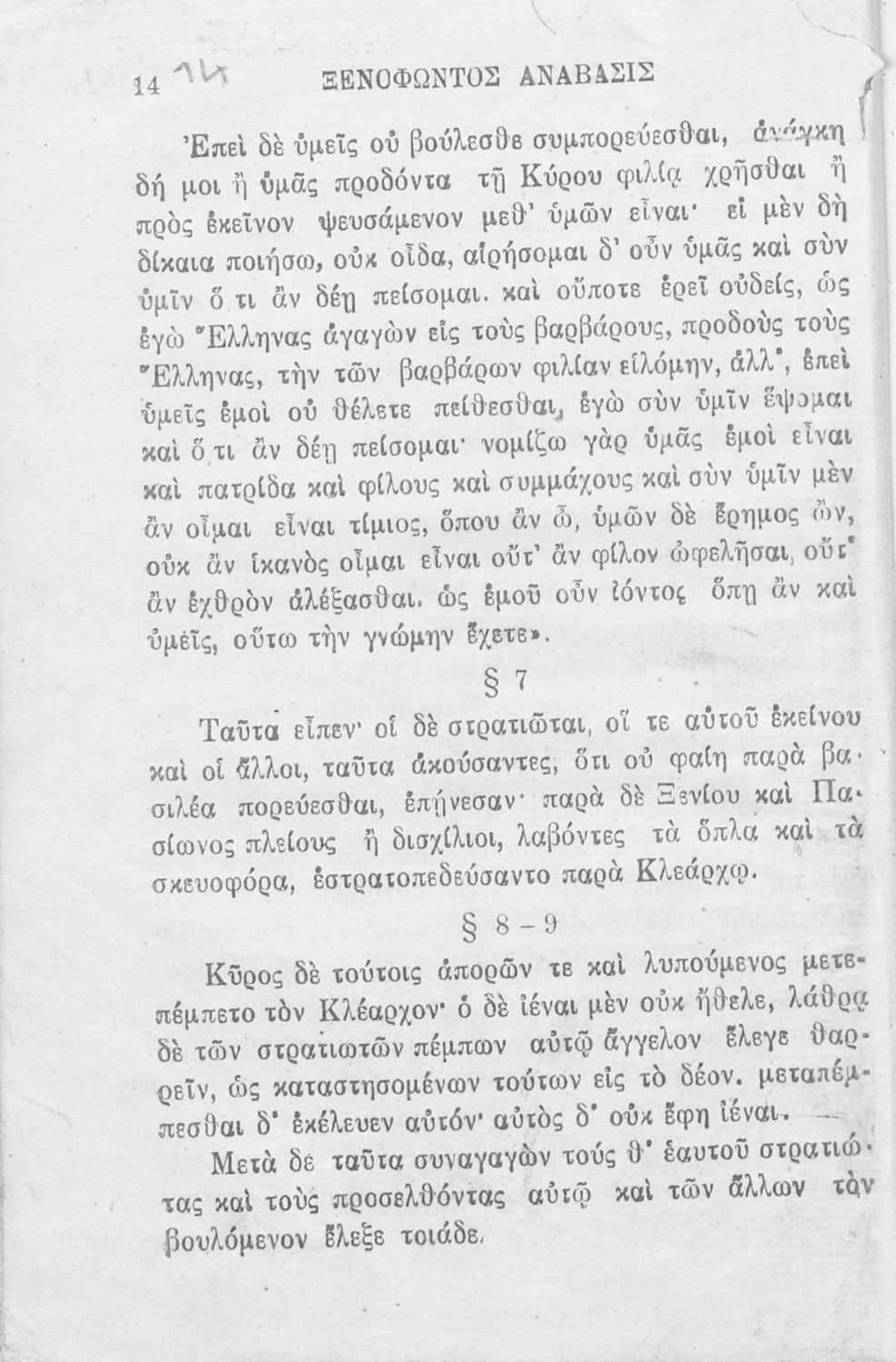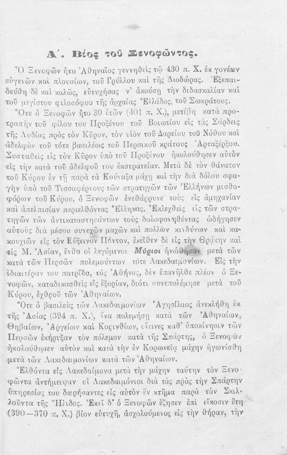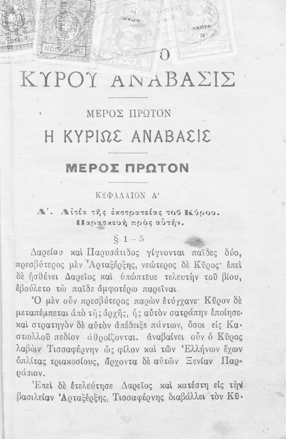 Σχολικό εγχειρίδιο Αρχαίων Ελληνικών που περιλαμβάνει αποσπάσματα από το έργο του Ξενοφώντα Κύρου Ανάβασις, εισαγωγικά σχόλια για τη ζωή και το έργο του, ερμηνευτικές και γραμματικές παρατηρήσεις, λεξικολογικά σχόλια και πίνακα κυρίων ονομάτων.