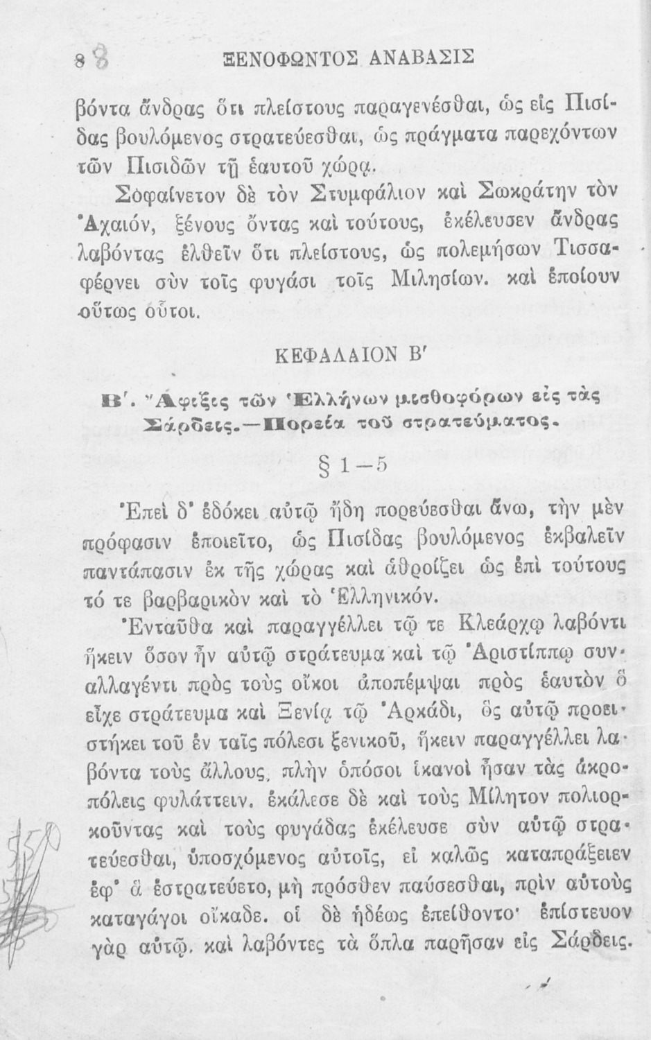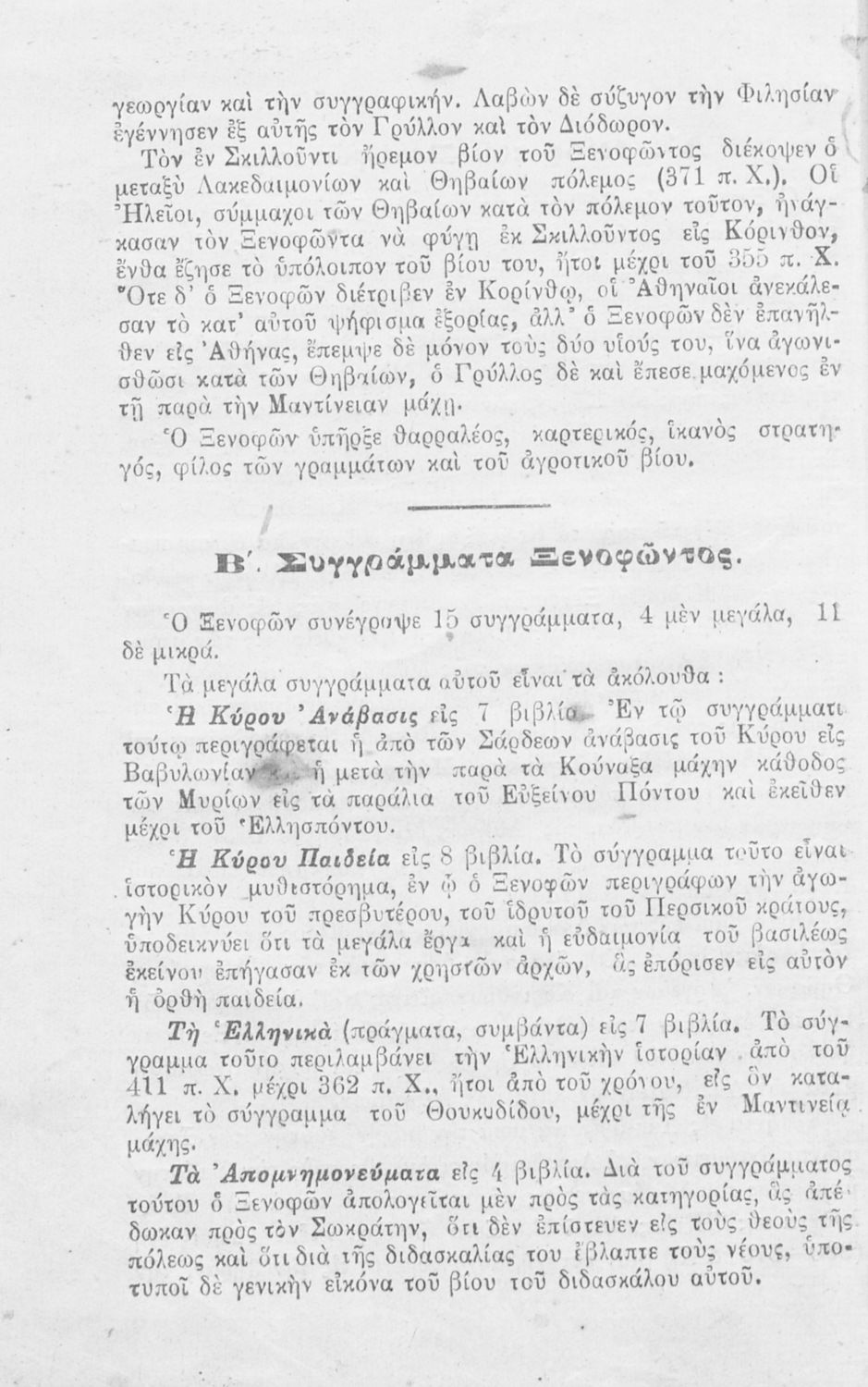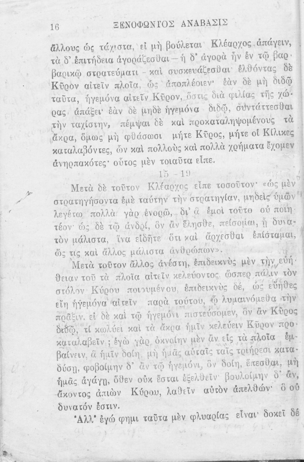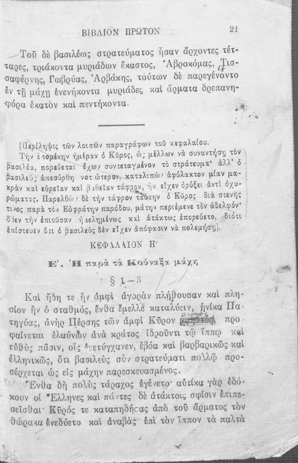 Σχολικό εγχειρίδιο Αρχαίων Ελληνικών που περιλαμβάνει αποσπάσματα από το έργο του Ξενοφώντα Κύρου Ανάβασις, εισαγωγικά σχόλια για τη ζωή και το έργο του, ερμηνευτικές και γραμματικές παρατηρήσεις, λεξικολογικά σχόλια και πίνακα κυρίων ονομάτων.