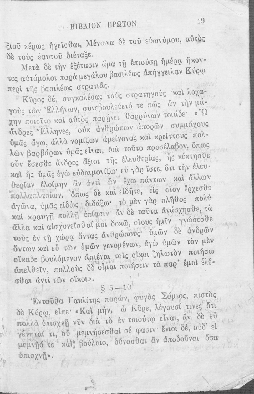 Βαθμίδα εκπαίδευσης: Δευτεροβάθμια Μάθημα: Αρχαία Ελληνικά Γλώσσα: Καθαρεύουσα Παρουσίαση περιεχομένου: Σχολικό εγχειρίδιο Αρχαίων Ελληνικών που περιλαμβάνει αποσπάσματα από το έργο του Ξενοφώντα Κύρου Ανάβασις, εισαγωγικά σχόλια για τη ζωή και το έργο του, ερμηνευτικές και γραμματικές παρατηρήσεις, λεξικολογικά σχόλια και πίνακα κυρίων ονομάτων. |