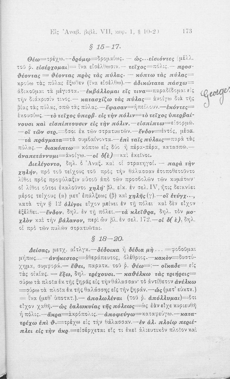 Σχολικό εγχειρίδιο της Γ' Ελληνικού Σχολείου και Αστικών Σχολείων για το μάθημα των Αρχαίων Ελληνικών. Το σύγγραμμα περιλαμβάνει κείμενα κατ΄ επιλογή από τα τέσσερα τελευταία βιβλία του έργου Κύρου Ανάβασις. ...