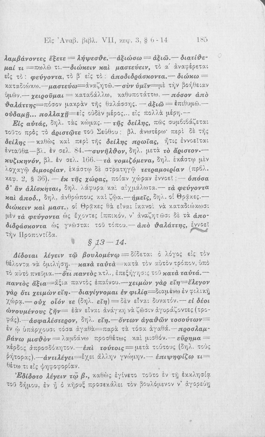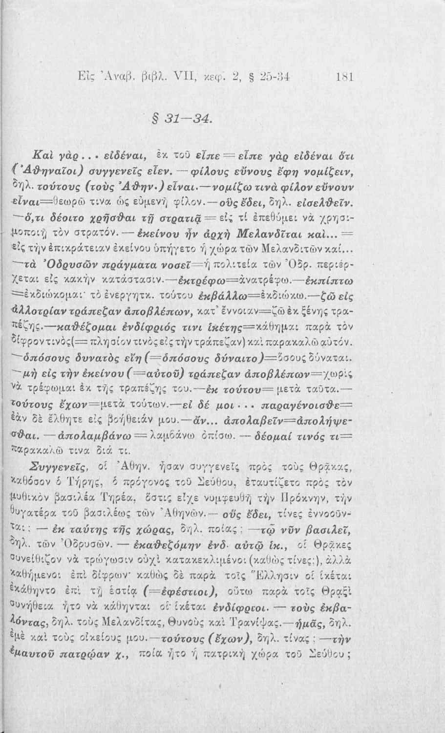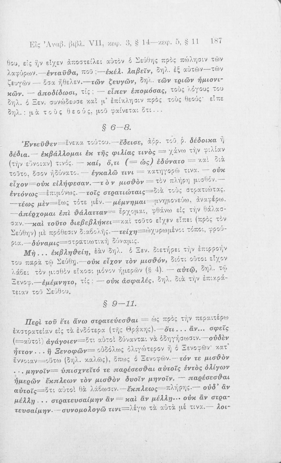 Σχολικό εγχειρίδιο Αρχαίων Ελληνικών για τις Γ΄ Ελληνικού Σχολείου και Α΄ Αστικού Σχολείου Θηλέων που περιλαμβάνει το έργο του Ξενοφώντα Κύρου Ανάβασις, ερμηνευτικά και πραγματολογικά σχόλια και λεξιλογικές παρατηρήσεις. Περιέχει και πίνακα κυρίων ονομάτων.