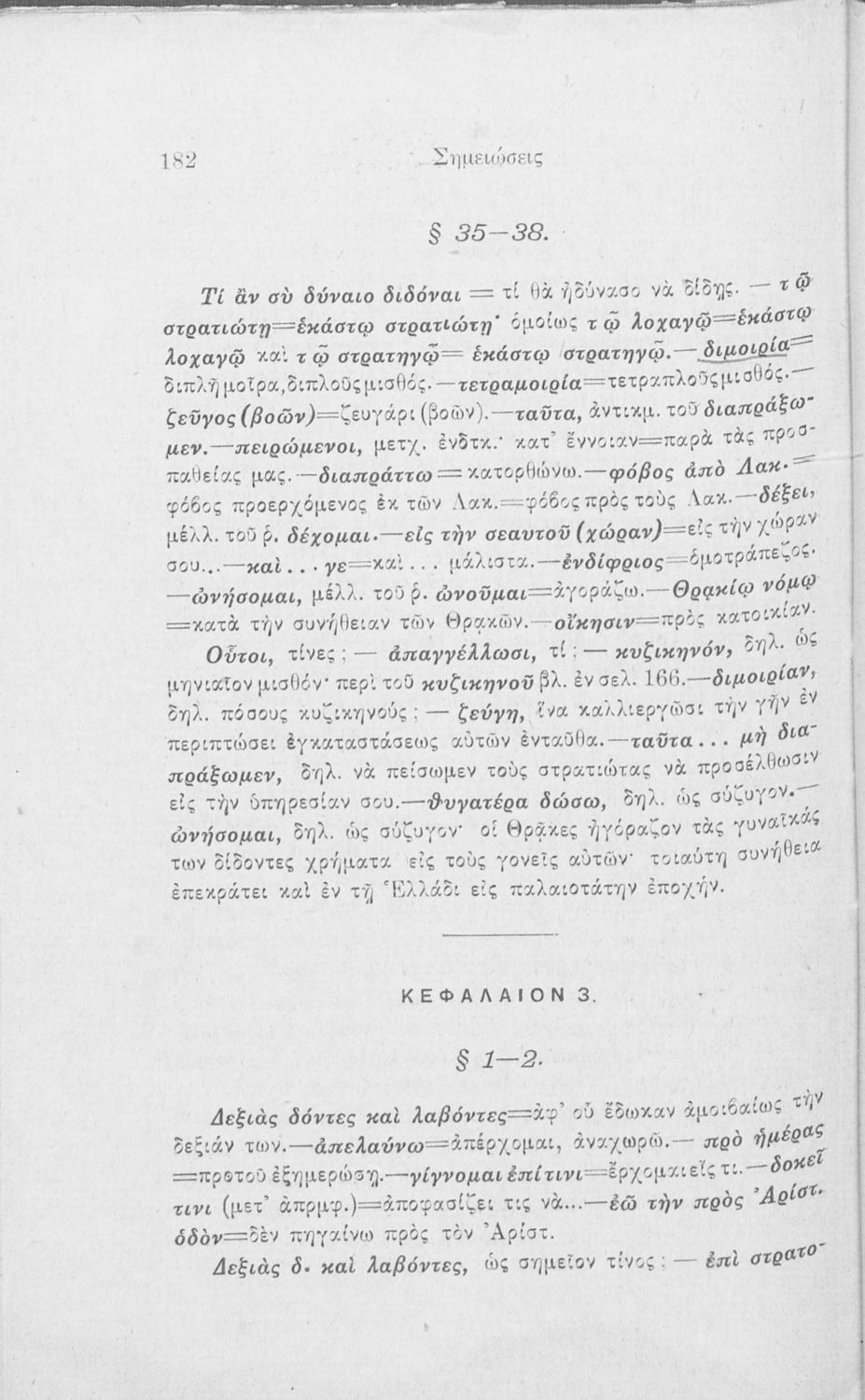 Σχολικό εγχειρίδιο Αρχαίων Ελληνικών για τις Γ΄ Ελληνικών Σχολείων και Α΄ Αστικών Σχολείων Θηλέων που περιλαμβάνει το έργο του Ξενοφώντα Κύρου Ανάβασις, εισαγωγικά σχόλια για τη ζωή και το έργο του, ...
