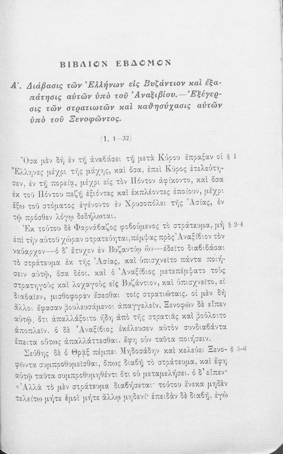 Σχολικό εγχειρίδιο Αρχαίων Ελληνικών που περιλαμβάνει αποσπάσματα από το έργο του Ξενοφώντα Ελληνικά και τα έργα του Λουκιανού Ενύπνιον και Ανάχαρσις, βιογραφικά σημειώματα των συγγραφέων, ερμηνευτικές και ...