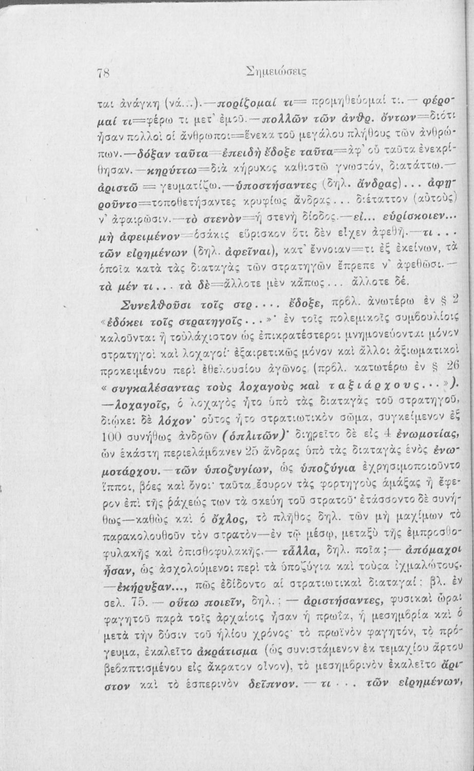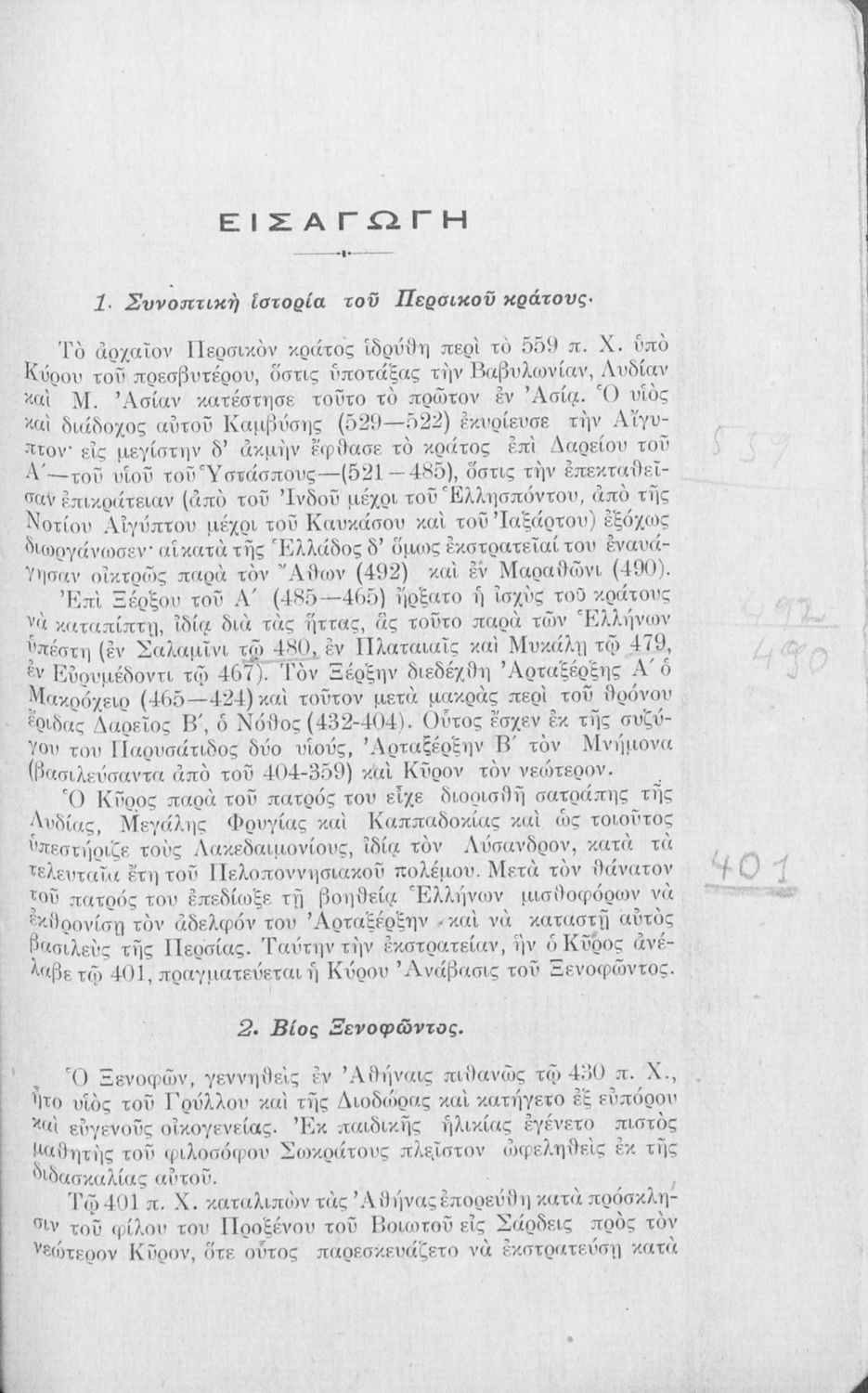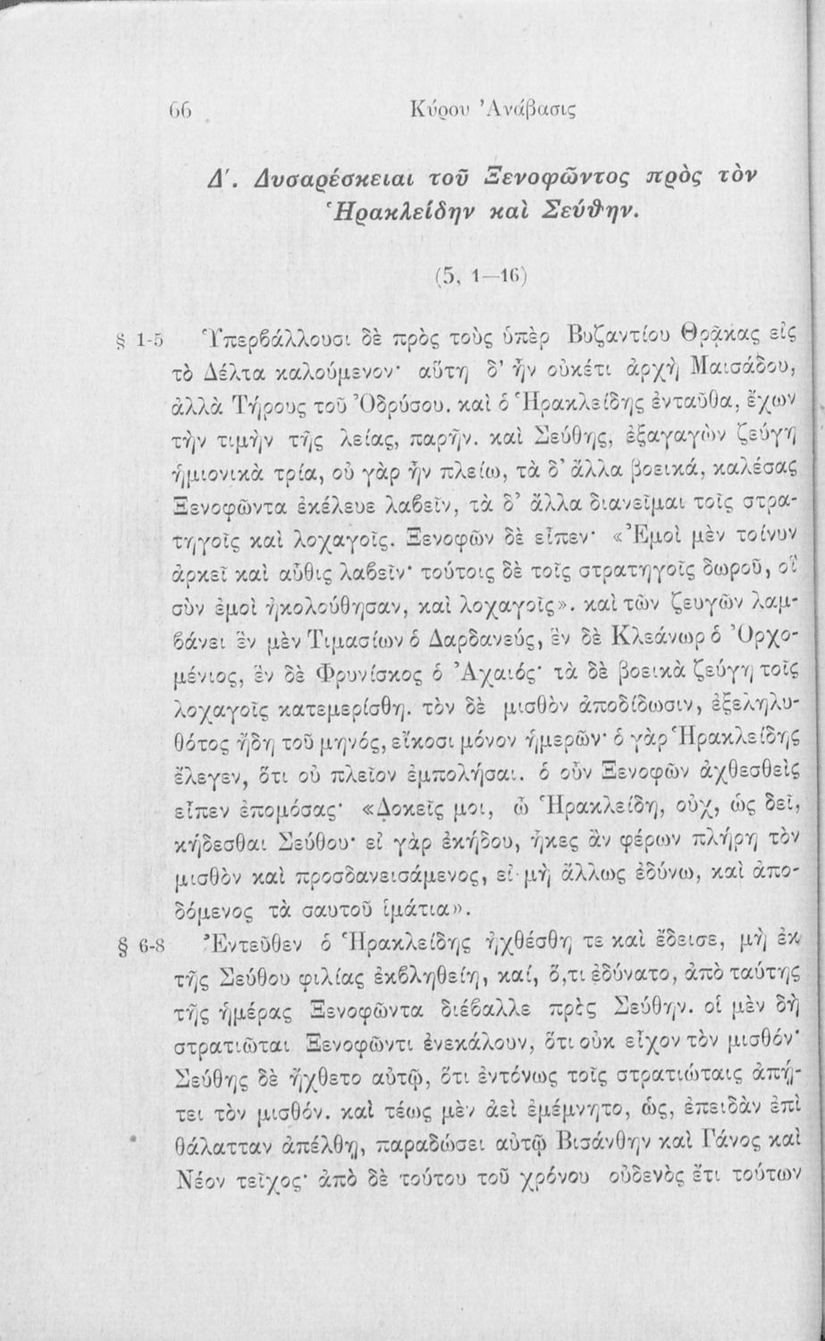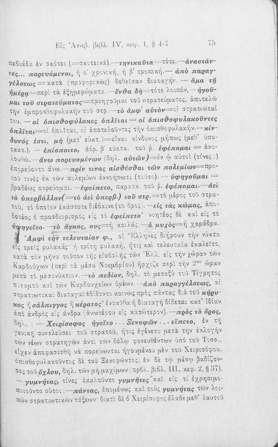 Σχολικό εγχειρίδιο Αρχαίων Ελληνικών για τις Γ΄ Ελληνικού Σχολείου και Α΄ Αστικού Σχολείου Θηλέων που περιλαμβάνει το έργο του Ξενοφώντα Κύρου Ανάβασις, ερμηνευτικά και πραγματολογικά σχόλια και λεξιλογικές παρατηρήσεις. Περιέχει και πίνακα κυρίων ονομάτων.