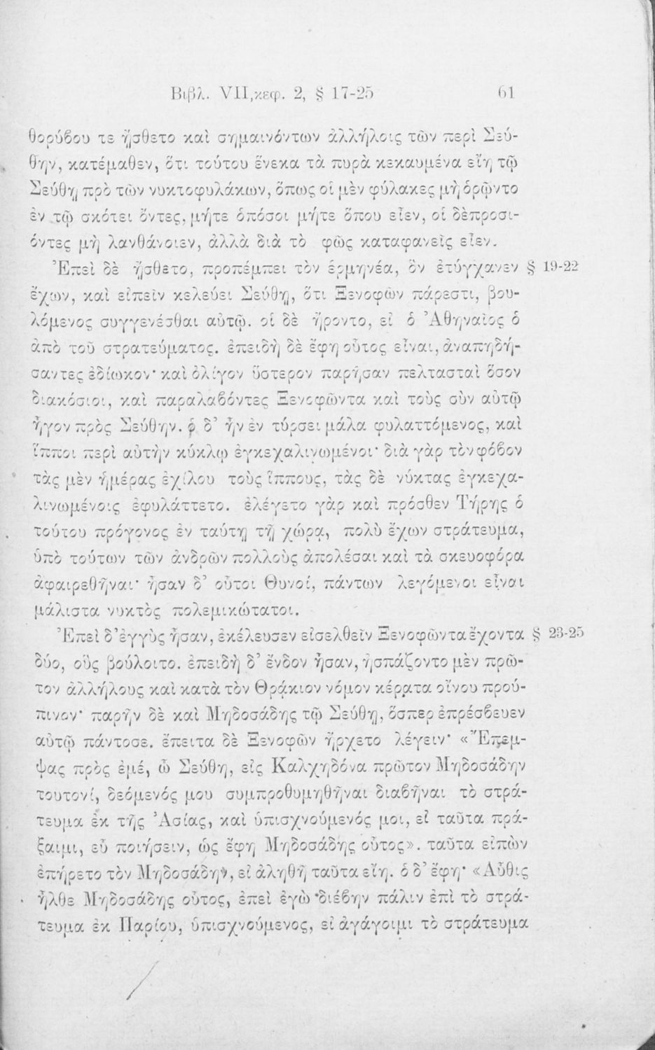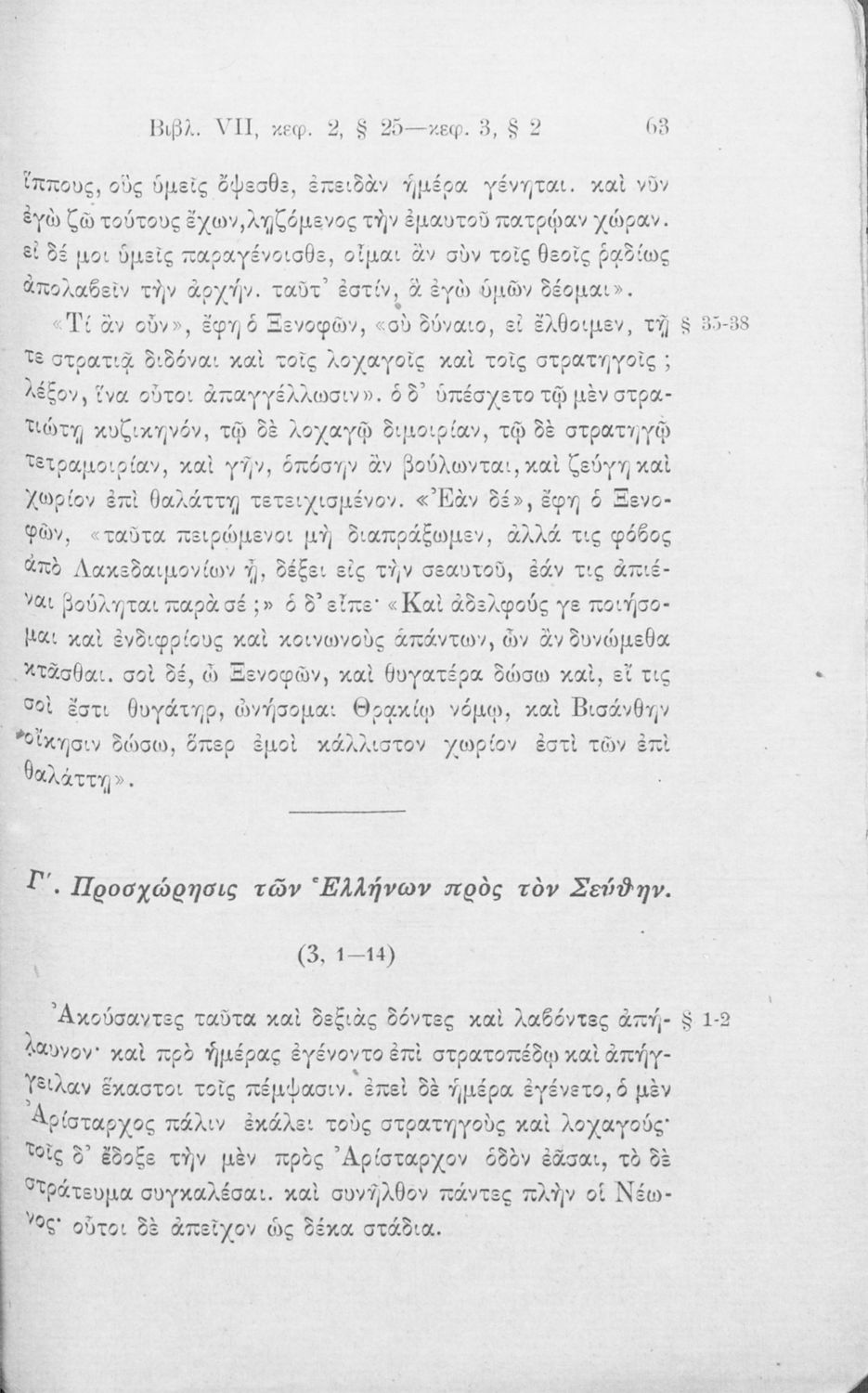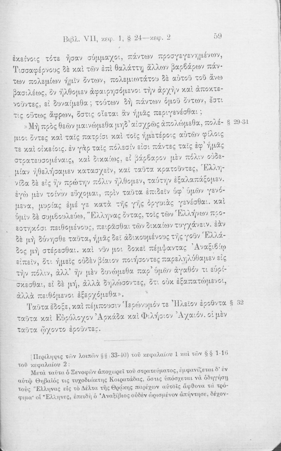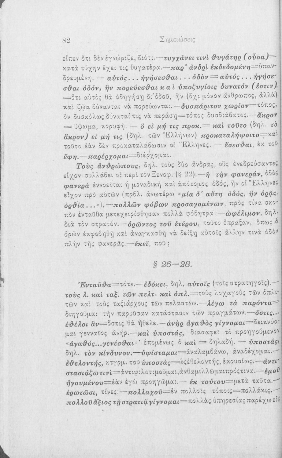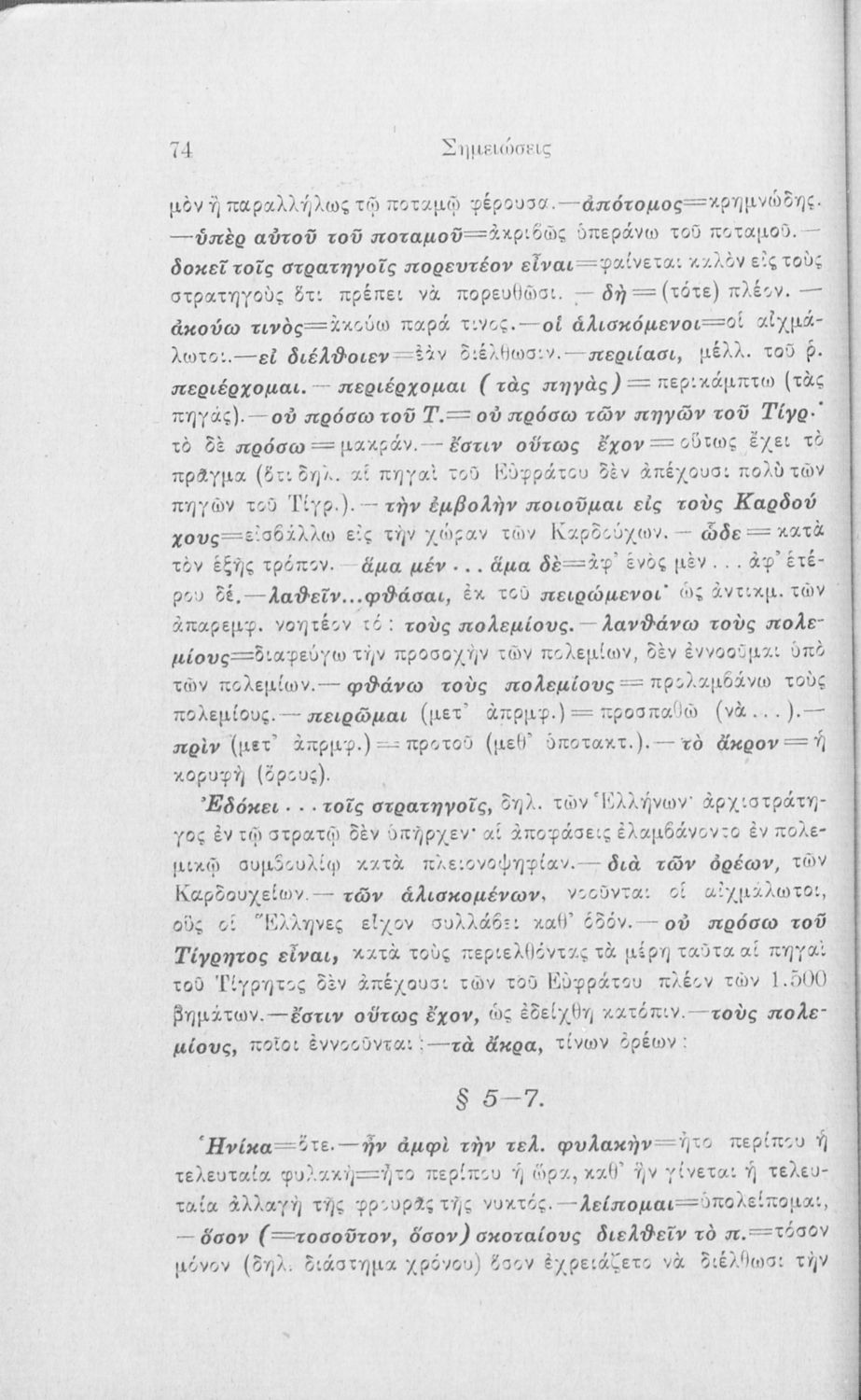 Σχολικό εγχειρίδιο Αρχαίων Ελληνικών για τις Γ΄ Ελληνικού Σχολείου και Α΄ Αστικού Σχολείου Θηλέων που περιλαμβάνει το έργο του Ξενοφώντα Κύρου Ανάβασις, ερμηνευτικά και πραγματολογικά σχόλια και λεξιλογικές παρατηρήσεις. Περιέχει και πίνακα κυρίων ονομάτων.