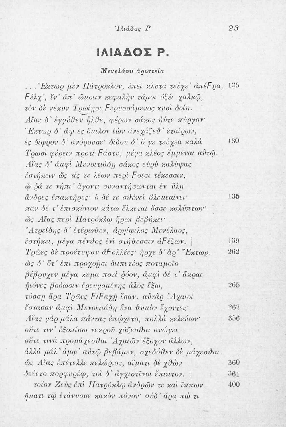 Μαθητικό βοήθημα Αρχαίων Ελληνικών που περιλαμβάνει τις ραψωδίες Ο, Π, Ρ, Σ, Τ, Χ, Ψ, Ω από την Ιλιάδα του Ομήρου και ερμηνευτικά, γλωσσικά και πραγματολογικά σχόλια.