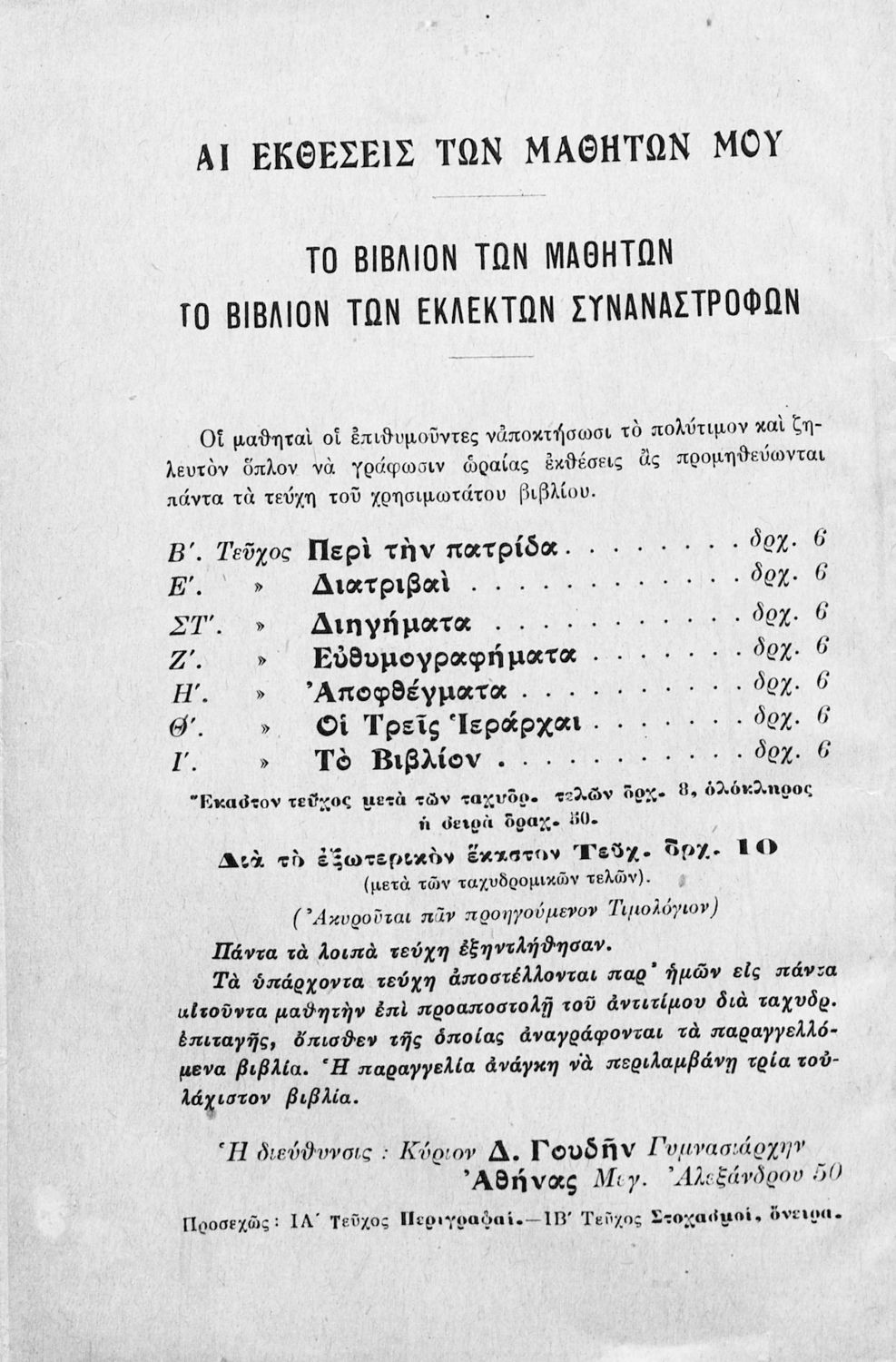 Εκδότης: Τυπογραφείο Π. Δ. Κυριακού Έτος έκδοσης: 1926 Τόπος έκδοσης: Αθήνα Έκδοση: 4η |