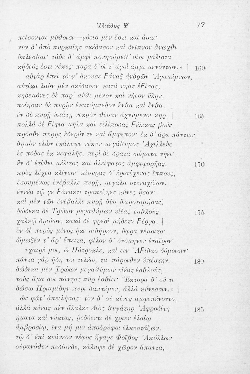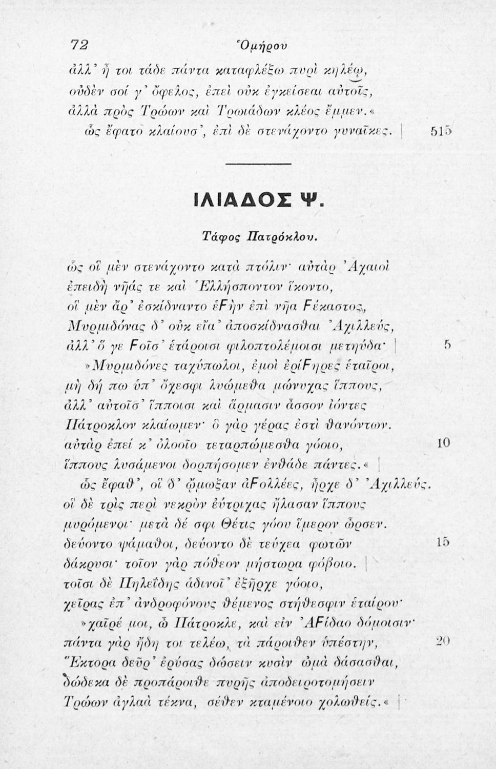 Μαθητικό βοήθημα Αρχαίων Ελληνικών που περιλαμβάνει τις ραψωδίες Ο, Π, Ρ, Σ, Τ, Χ, Ψ, Ω από την Ιλιάδα του Ομήρου και ερμηνευτικά, γλωσσικά και πραγματολογικά σχόλια.