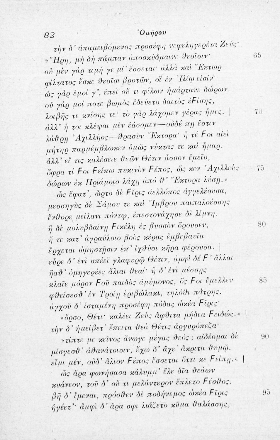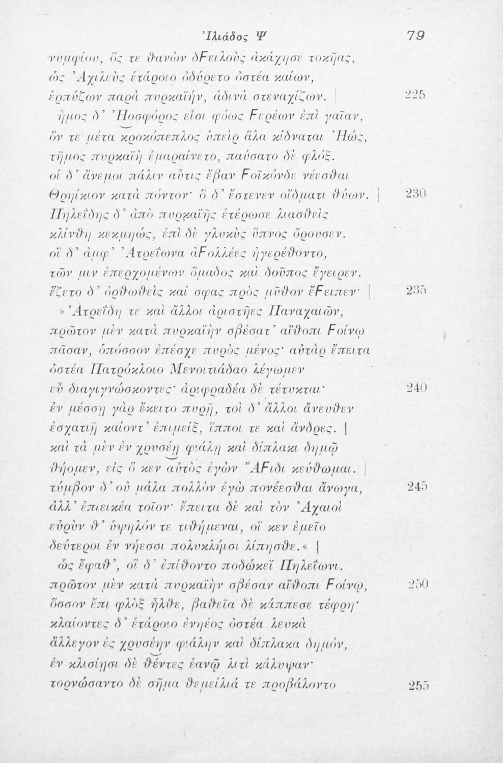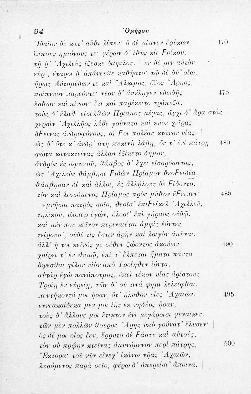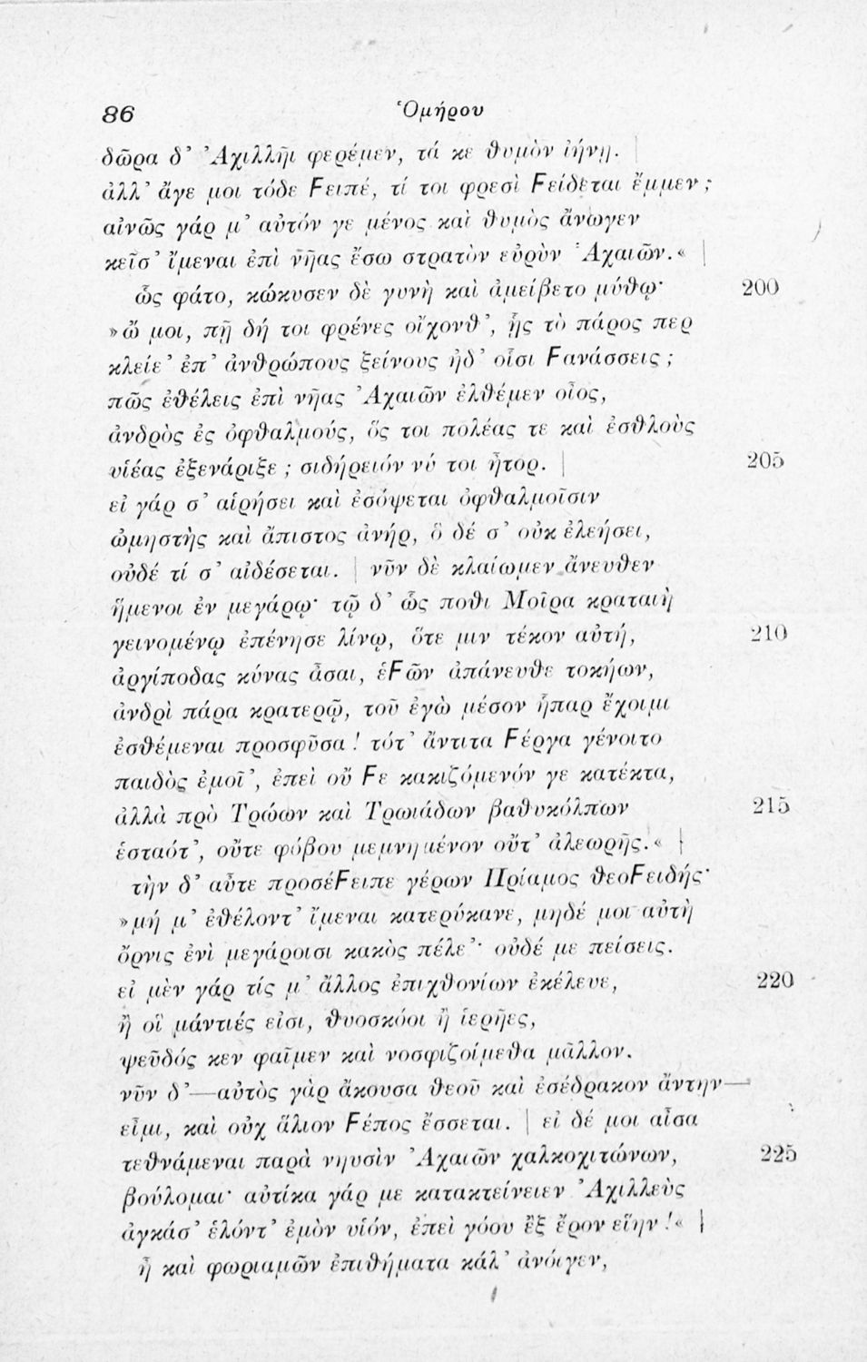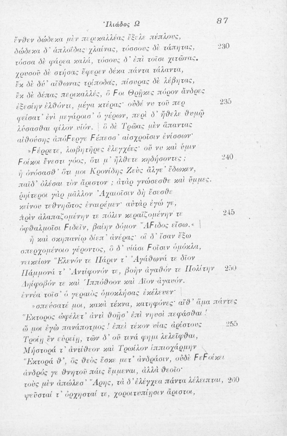 Μαθητικό βοήθημα του Ελληνικού Σχολείου, των Παρθεναγωγείων και του Γυμνασίου για το μάθημα των Αρχαίων Ελληνικών. Περιέχει τις ραψωδίες Ο, Π, Ρ, Σ, Τ, Χ, ψ, Ω από το πρωτότυπο με σχόλια και ερμηνευτικές ...