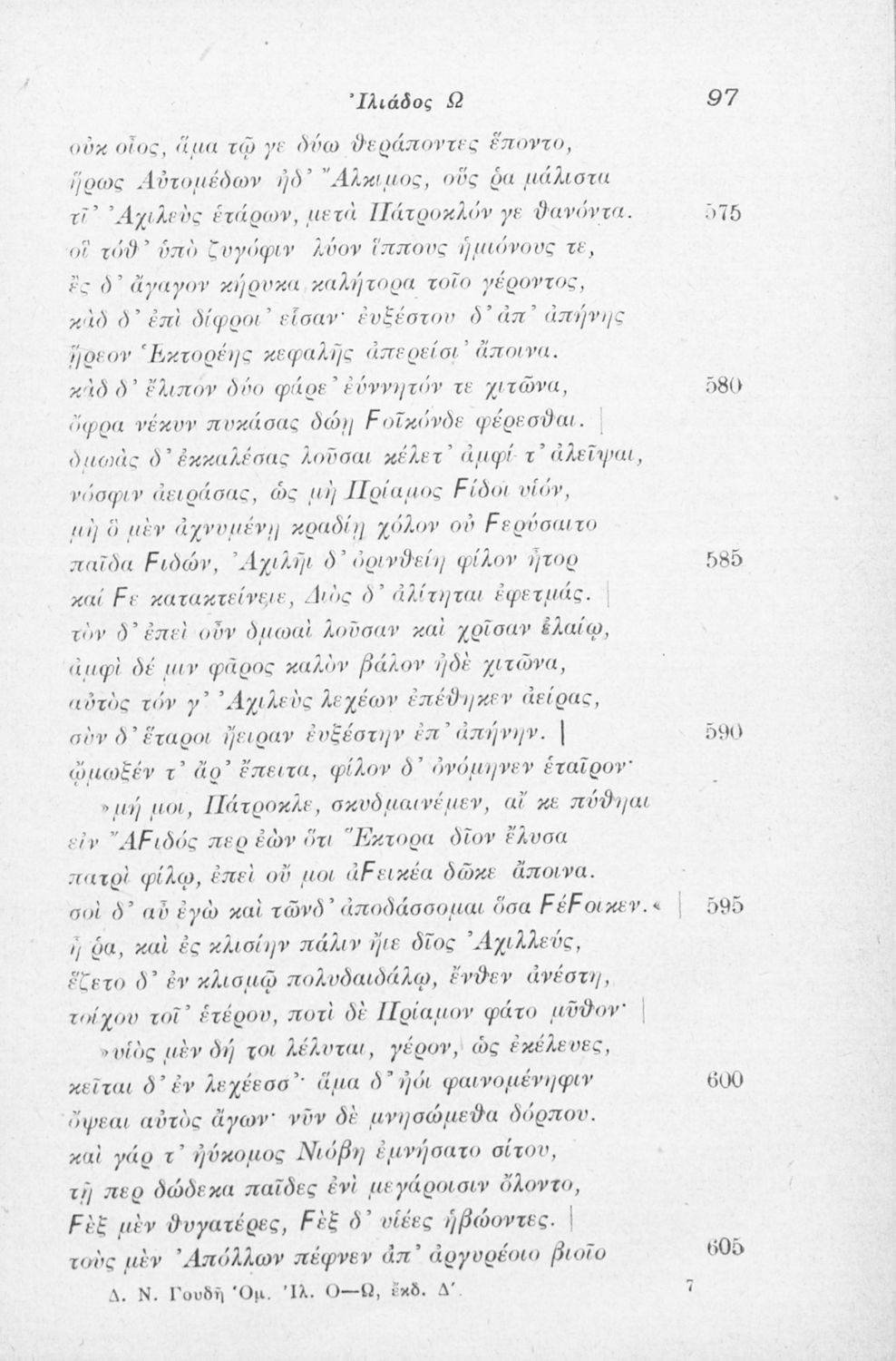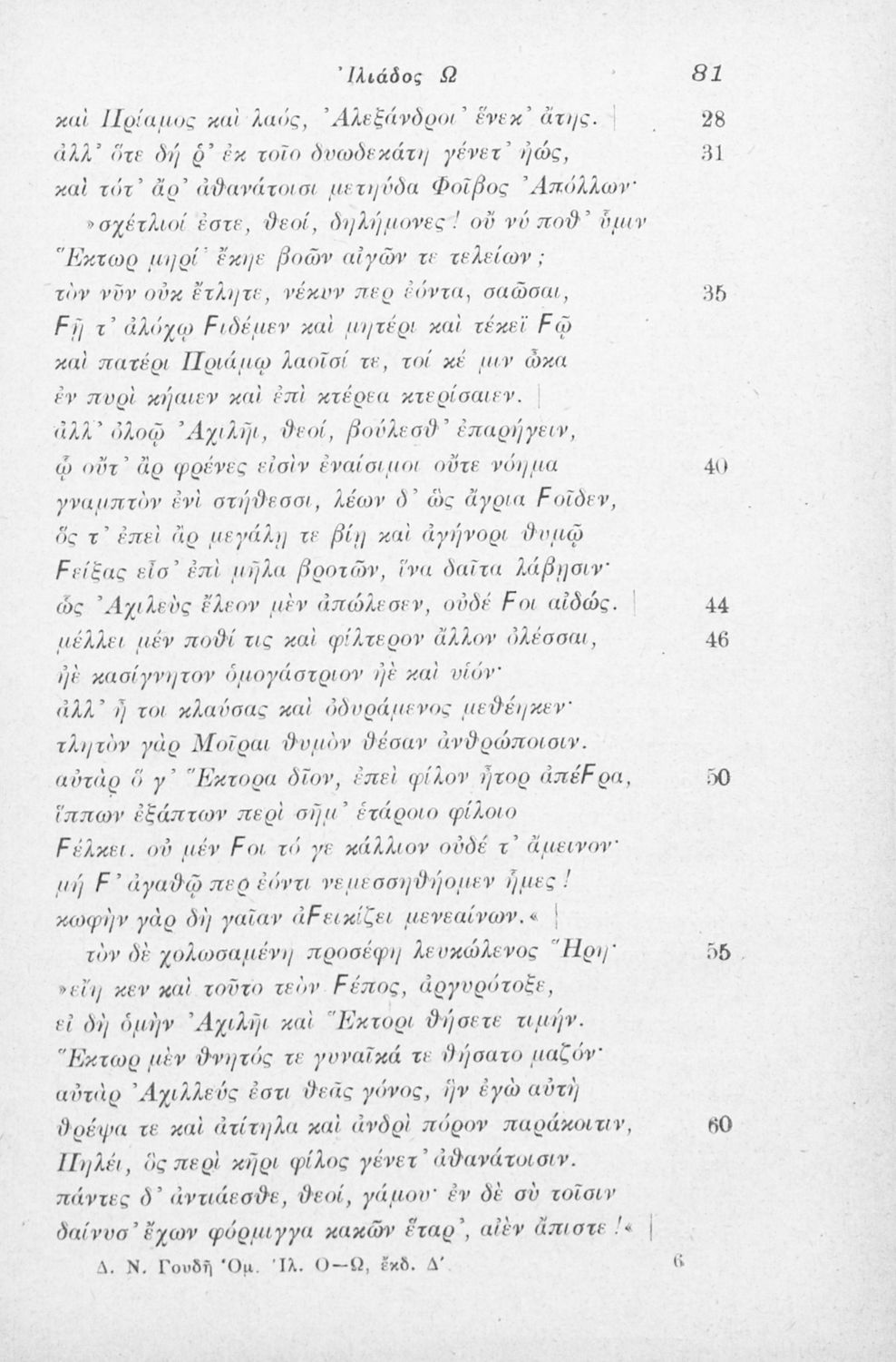 Όμηρος, Δημ. Ν. Γουδής (σχόλια)