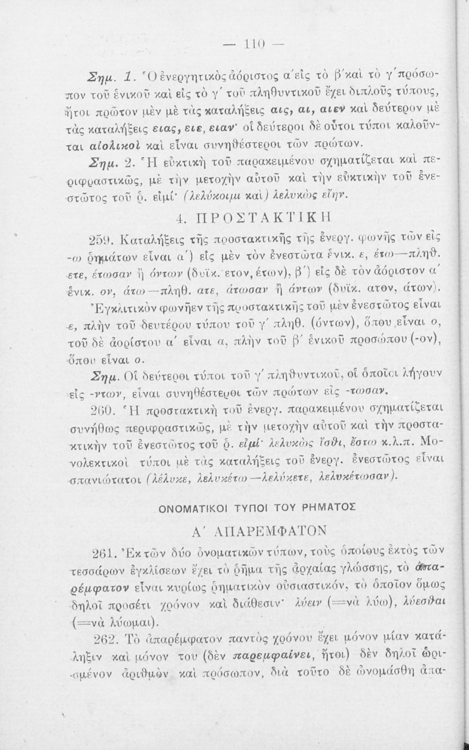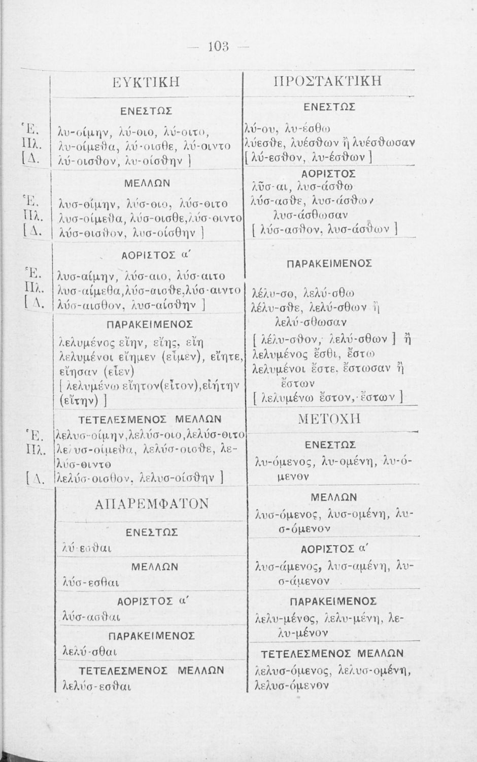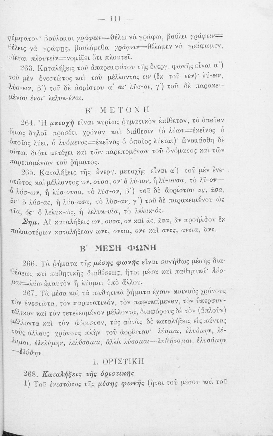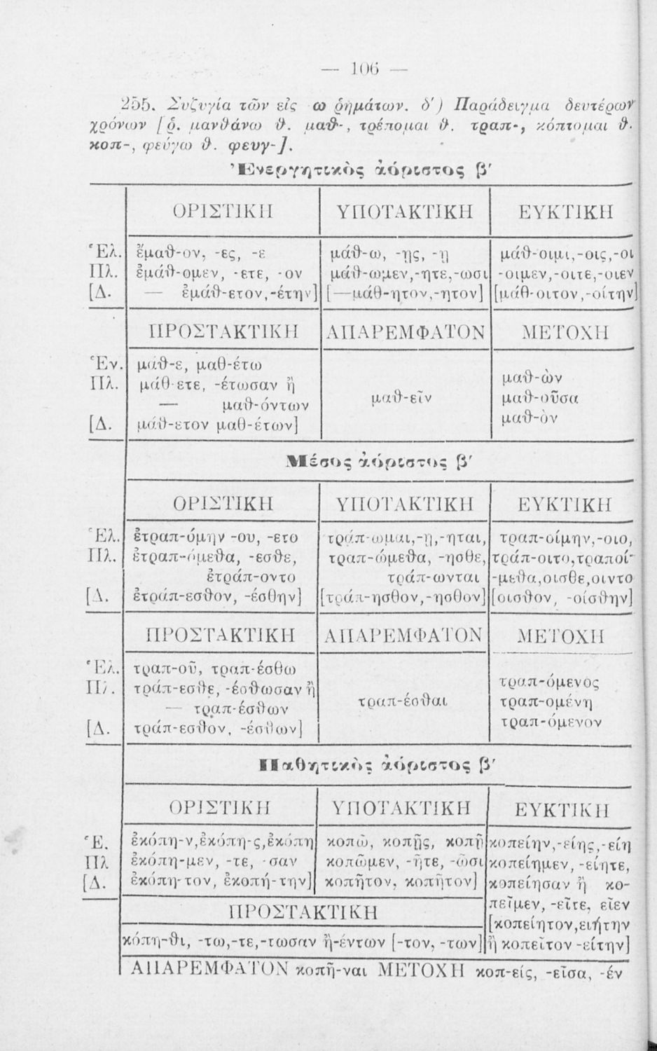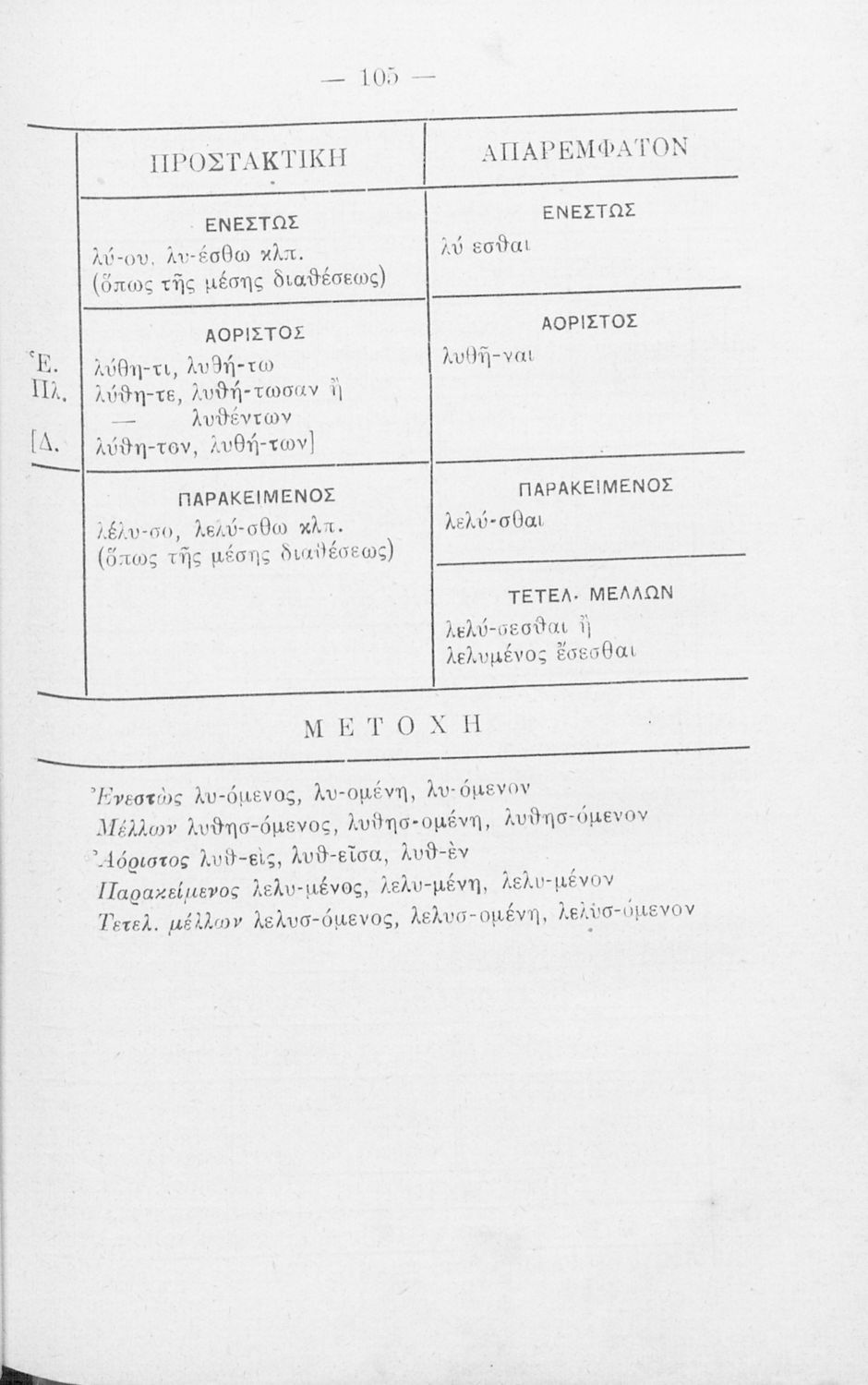 Σχολικό εγχειρίδιο Αρχαίων Ελληνικών Γυμνασίου που περιλαμβάνει τη γραμματική της αρχαίας ελληνικής και είναι χωρισμένο σε φθογγολογικό και τυπολογικό μέρος Περιέχει και κατάλογο ανωμάλων ρημάτων.