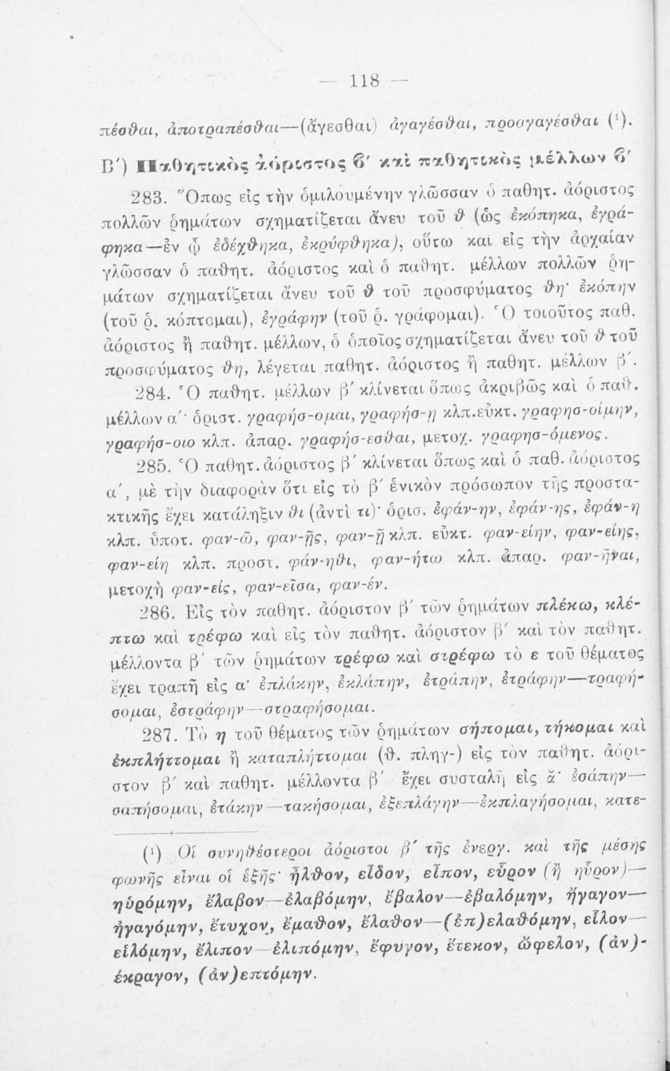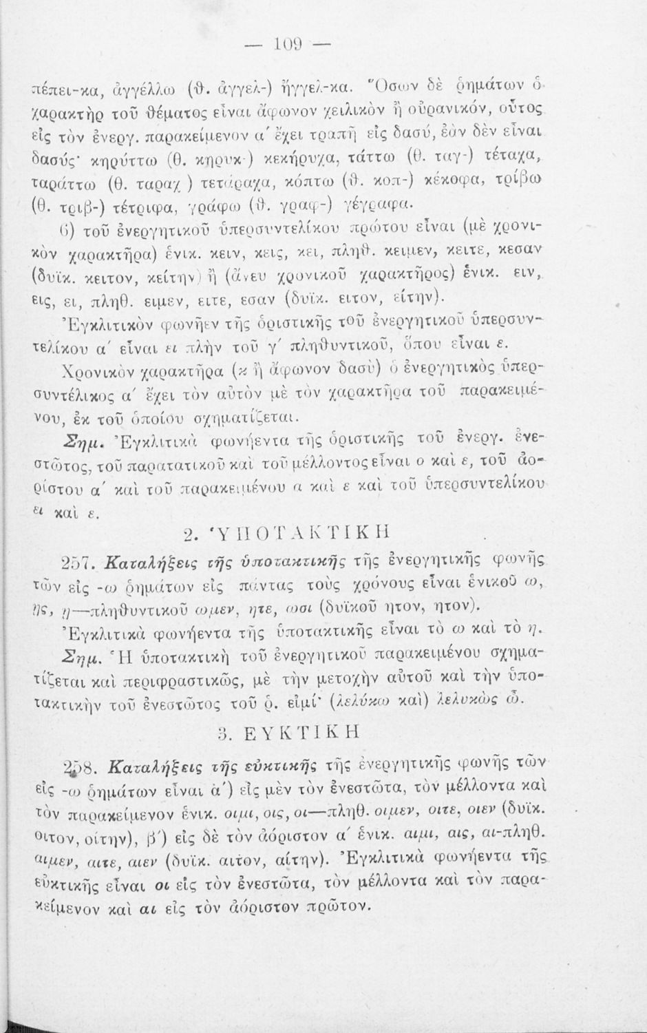 Σχολικό εγχειρίδιο Αρχαίων Ελληνικών για τα Ελληνικά Σχολεία και Παρθεναγωγεία που περιέχει τους κανόνες γραμματικής και είναι χωρισμένο σε φθογγολογικό, τυπολογικό και ετυμολογικό μέρος.