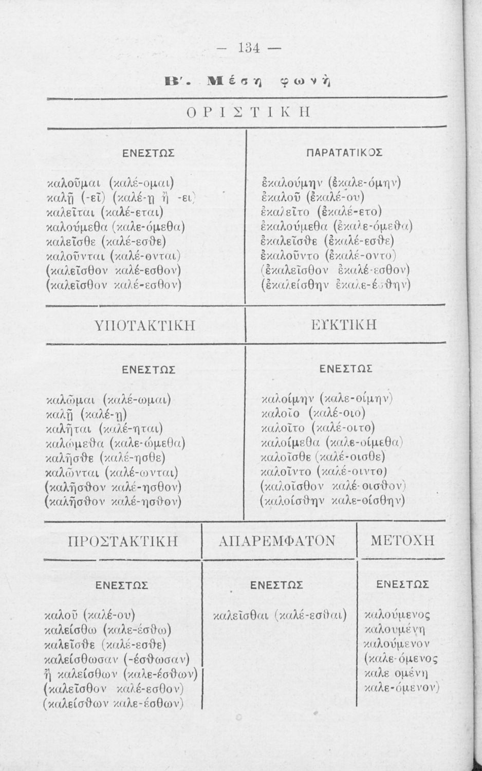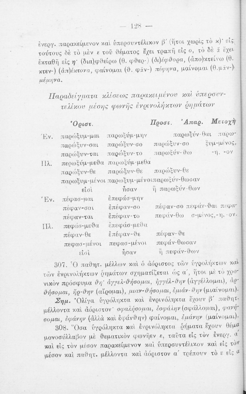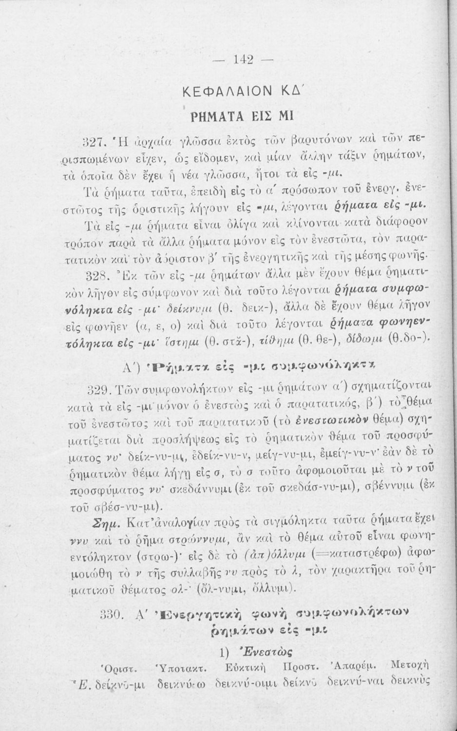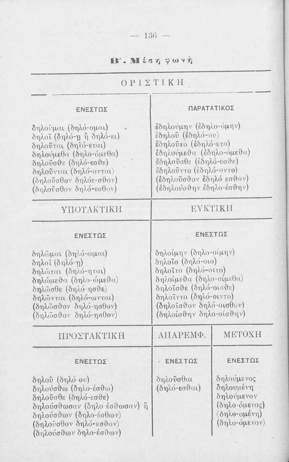 Σχολικό εγχειρίδιο Αρχαίων Ελληνικών Γυμνασίου που περιλαμβάνει τη γραμματική της αρχαίας ελληνικής και είναι χωρισμένο σε φθογγολογικό και τυπολογικό μέρος Περιέχει και κατάλογο ανωμάλων ρημάτων.