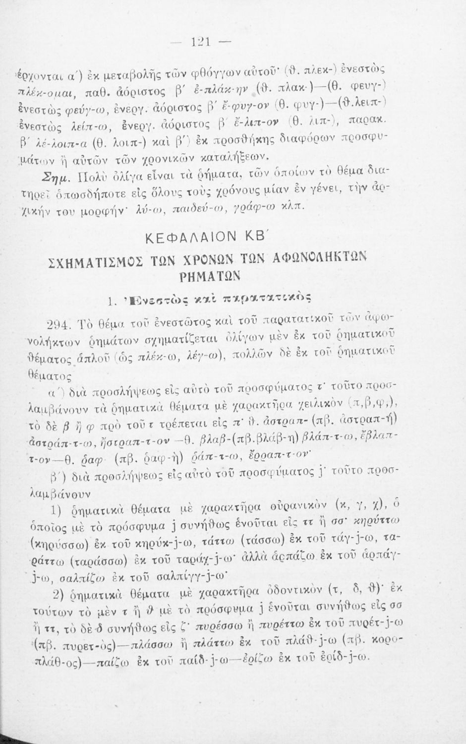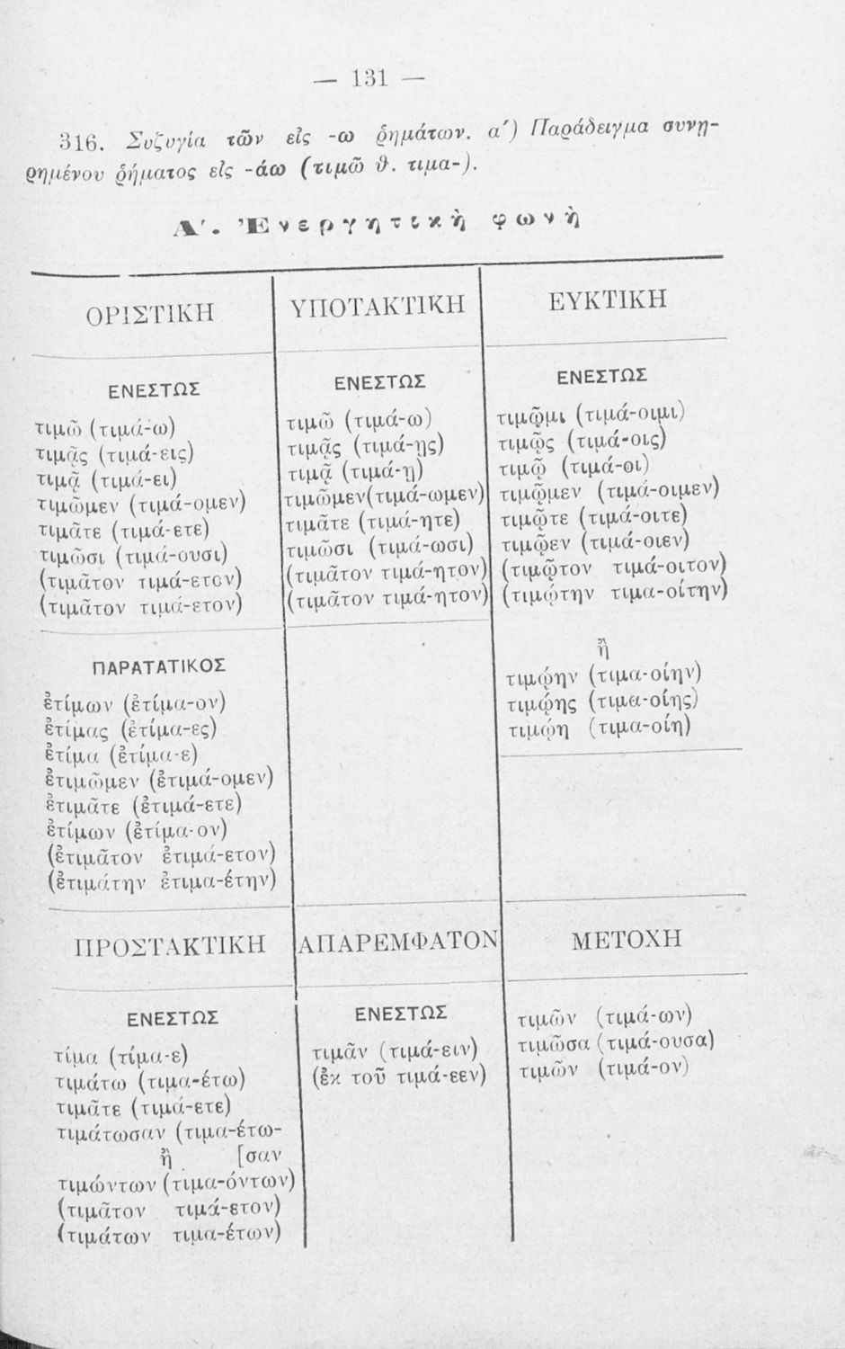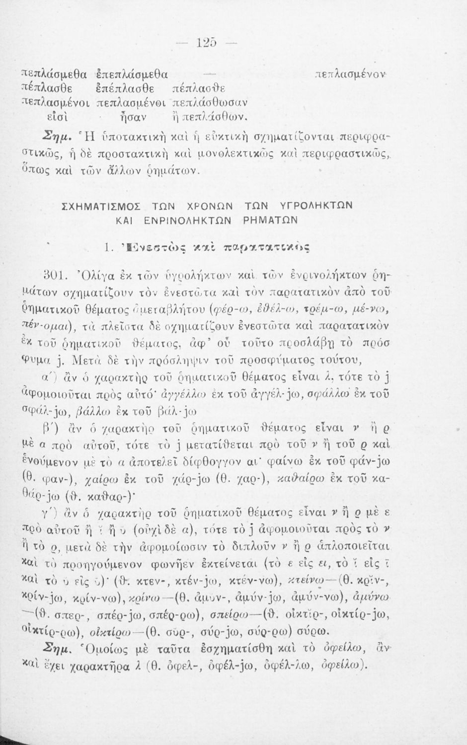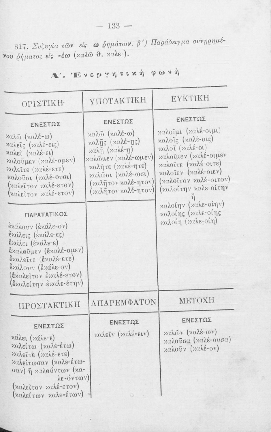 Σχολικό εγχειρίδιο Αρχαίων Ελληνικών Γυμνασίου που περιλαμβάνει τη γραμματική της αρχαίας ελληνικής και είναι χωρισμένο σε φθογγολογικό και τυπολογικό μέρος Περιέχει και κατάλογο ανωμάλων ρημάτων.