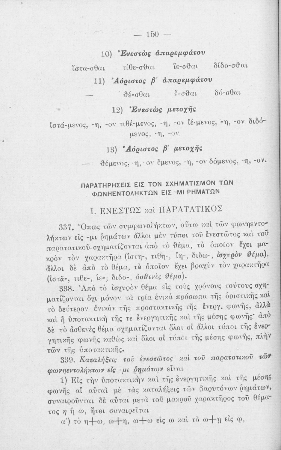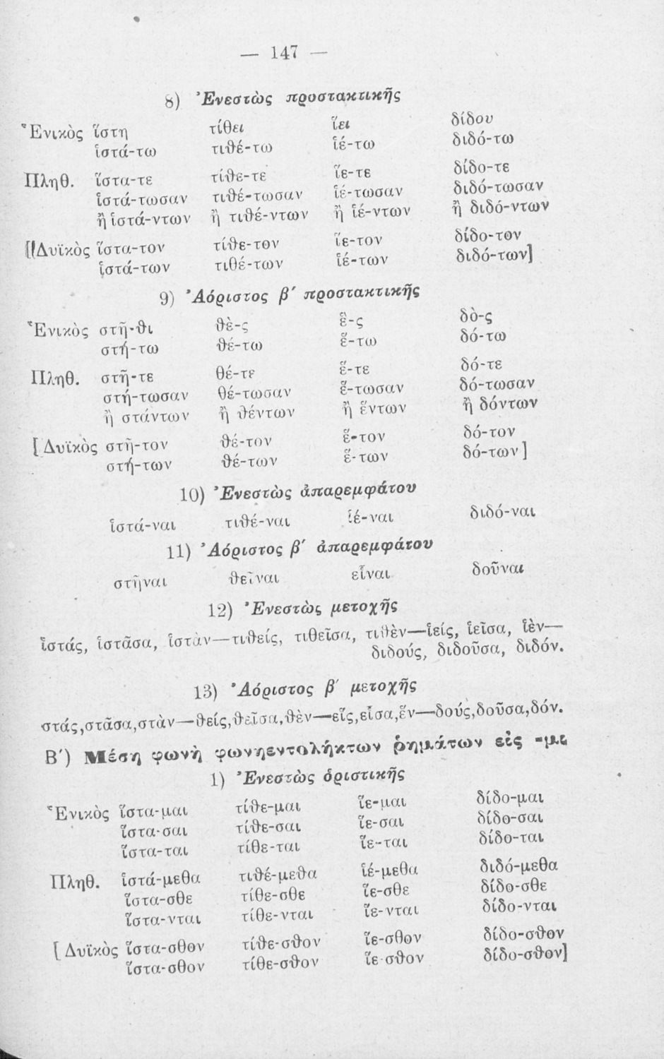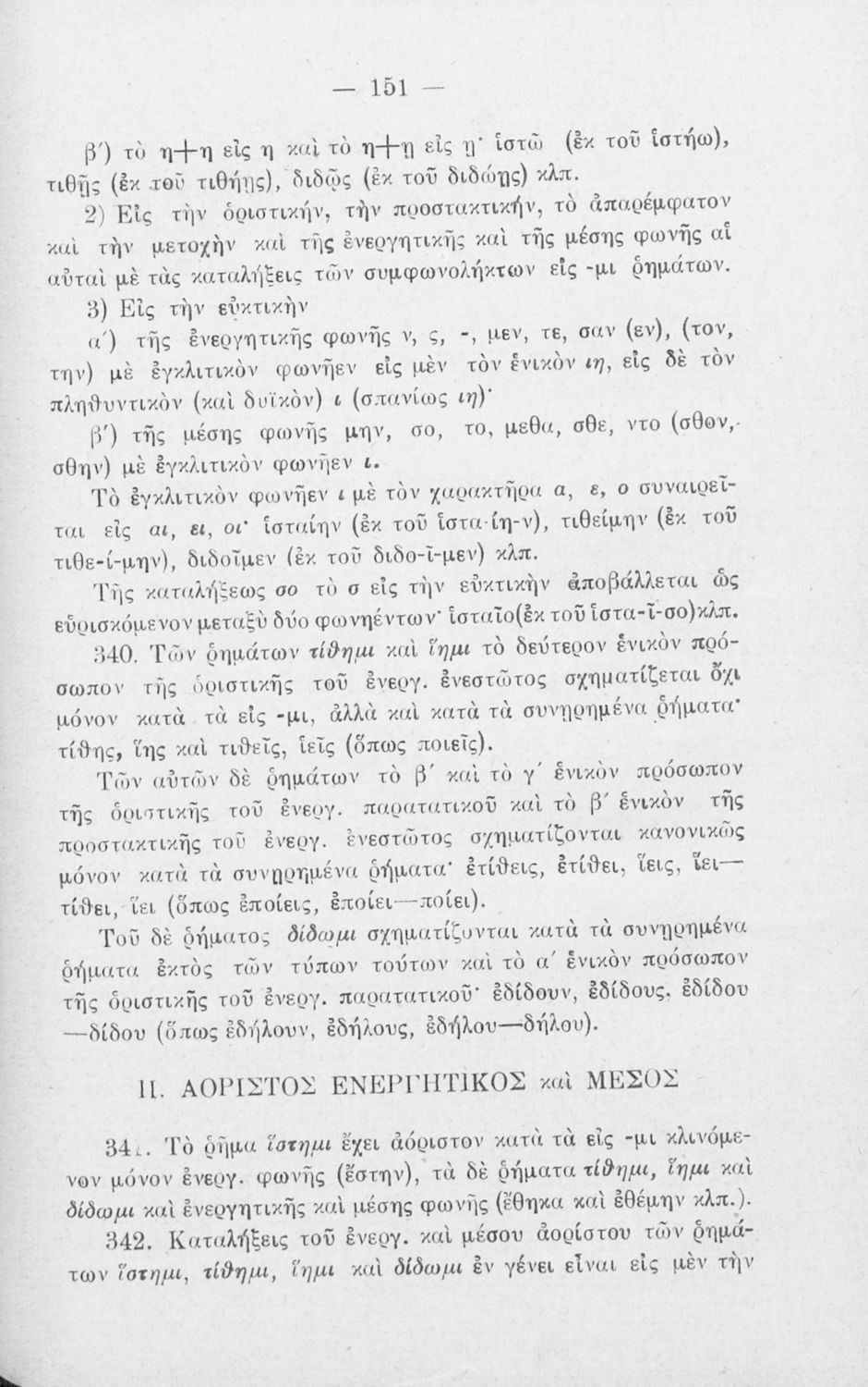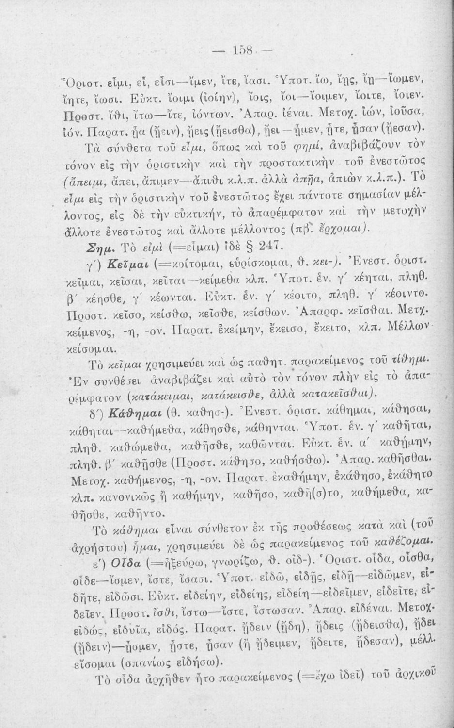 Σχολικό εγχειρίδιο Αρχαίων Ελληνικών Γυμνασίου που περιλαμβάνει τη γραμματική της αρχαίας ελληνικής και είναι χωρισμένο σε φθογγολογικό και τυπολογικό μέρος Περιέχει και κατάλογο ανωμάλων ρημάτων.