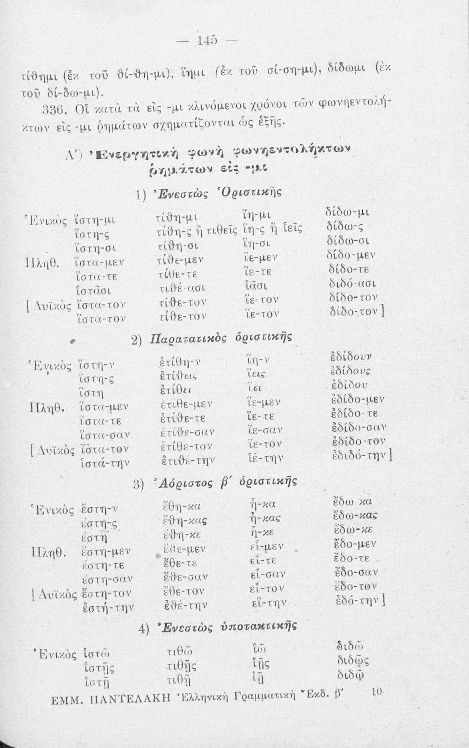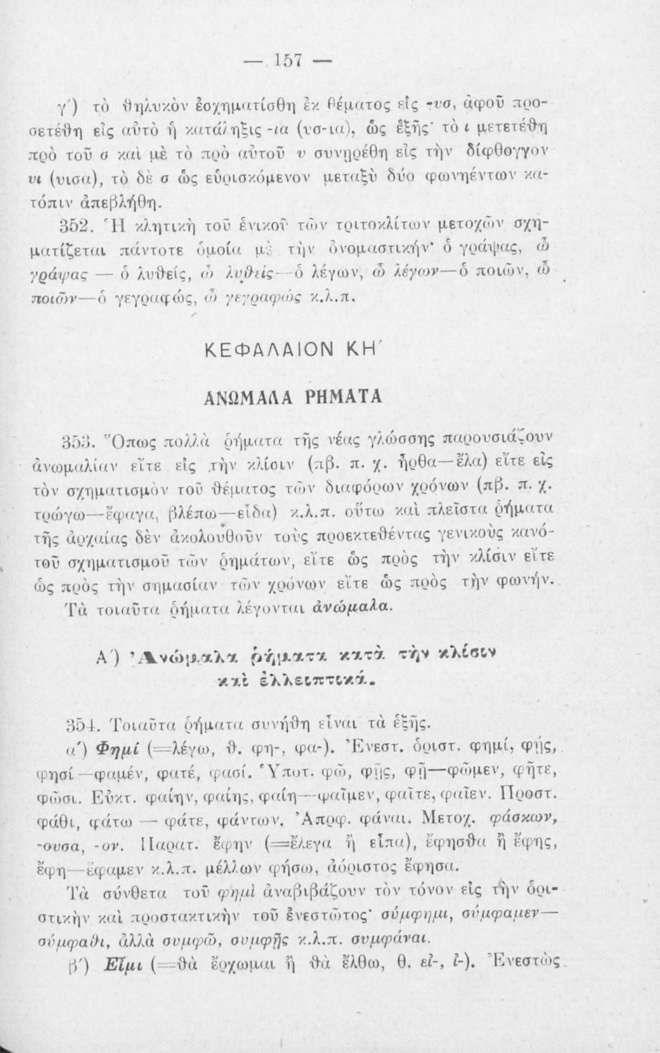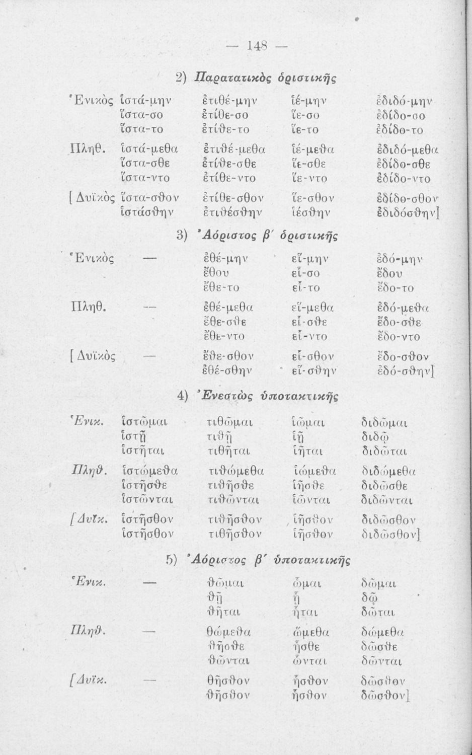 Σχολικό εγχειρίδιο Αρχαίων Ελληνικών Γυμνασίου που περιλαμβάνει τη γραμματική της αρχαίας ελληνικής και είναι χωρισμένο σε φθογγολογικό και τυπολογικό μέρος Περιέχει και κατάλογο ανωμάλων ρημάτων.