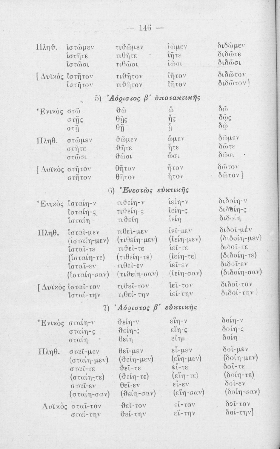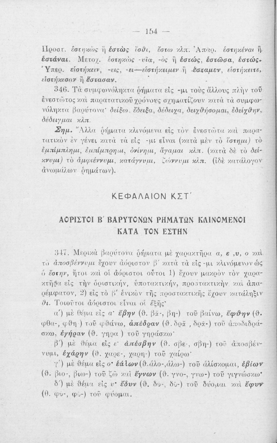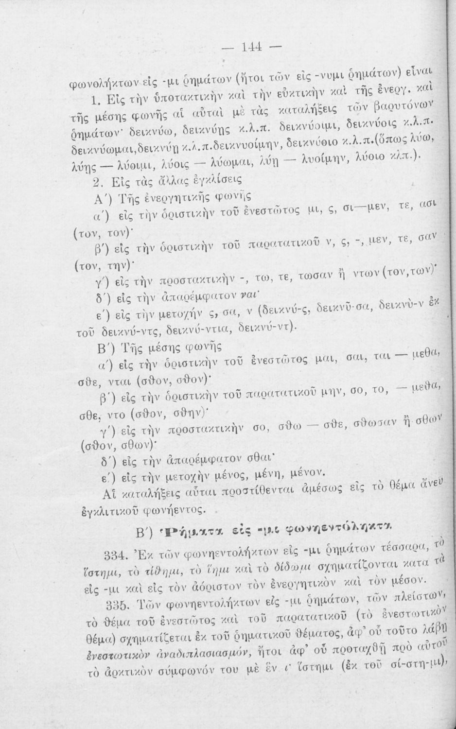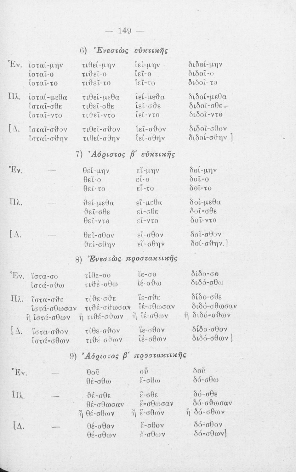 Σχολικό εγχειρίδιο Αρχαίων Ελληνικών Γυμνασίου που περιλαμβάνει τη γραμματική της αρχαίας ελληνικής και είναι χωρισμένο σε φθογγολογικό και τυπολογικό μέρος Περιέχει και κατάλογο ανωμάλων ρημάτων.