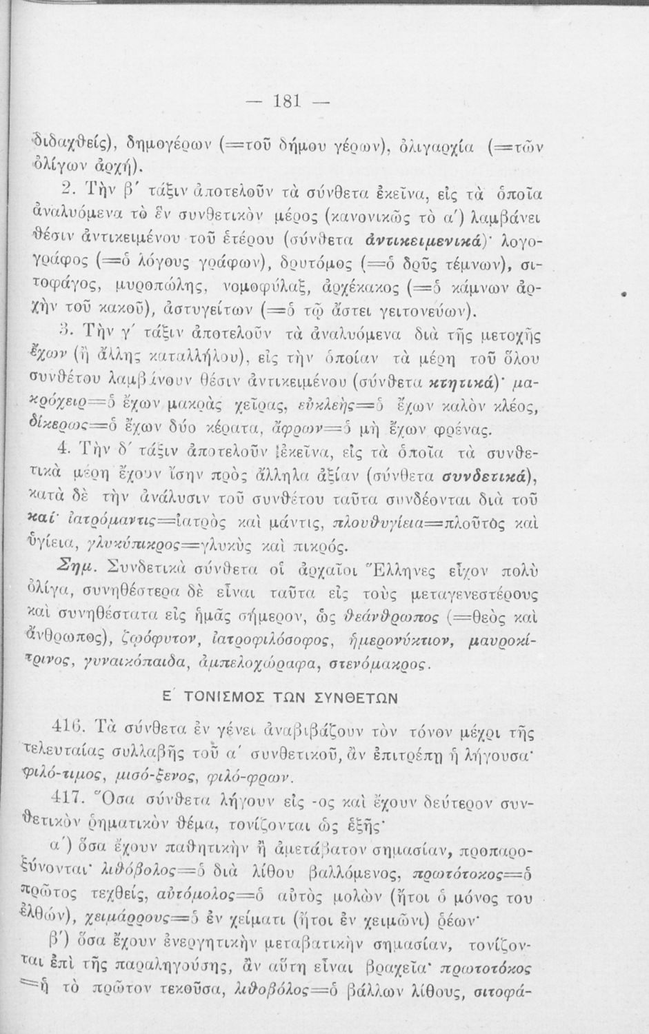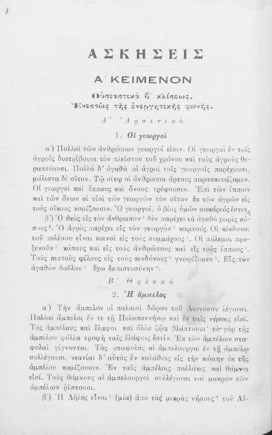 Σχολικό εγχειρίδιο Αρχαίων Ελληνικών για τα Ελληνικά Σχολεία και Παρθεναγωγεία που περιέχει τους κανόνες γραμματικής και είναι χωρισμένο σε φθογγολογικό, τυπολογικό και ετυμολογικό μέρος.