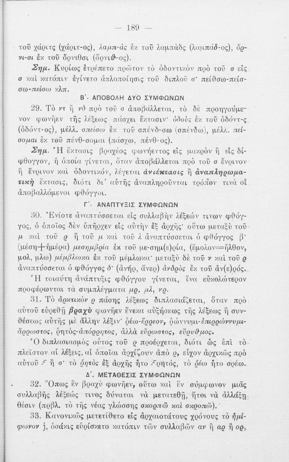 Σχολικό εγχειρίδιο Αρχαίων Ελληνικών Γυμνασίου που περιλαμβάνει τους κανόνες γραμματικής και είναι χωρισμένη στο φθογγολογικό, το τυπολογικό και ετυμολογικό μέρος.