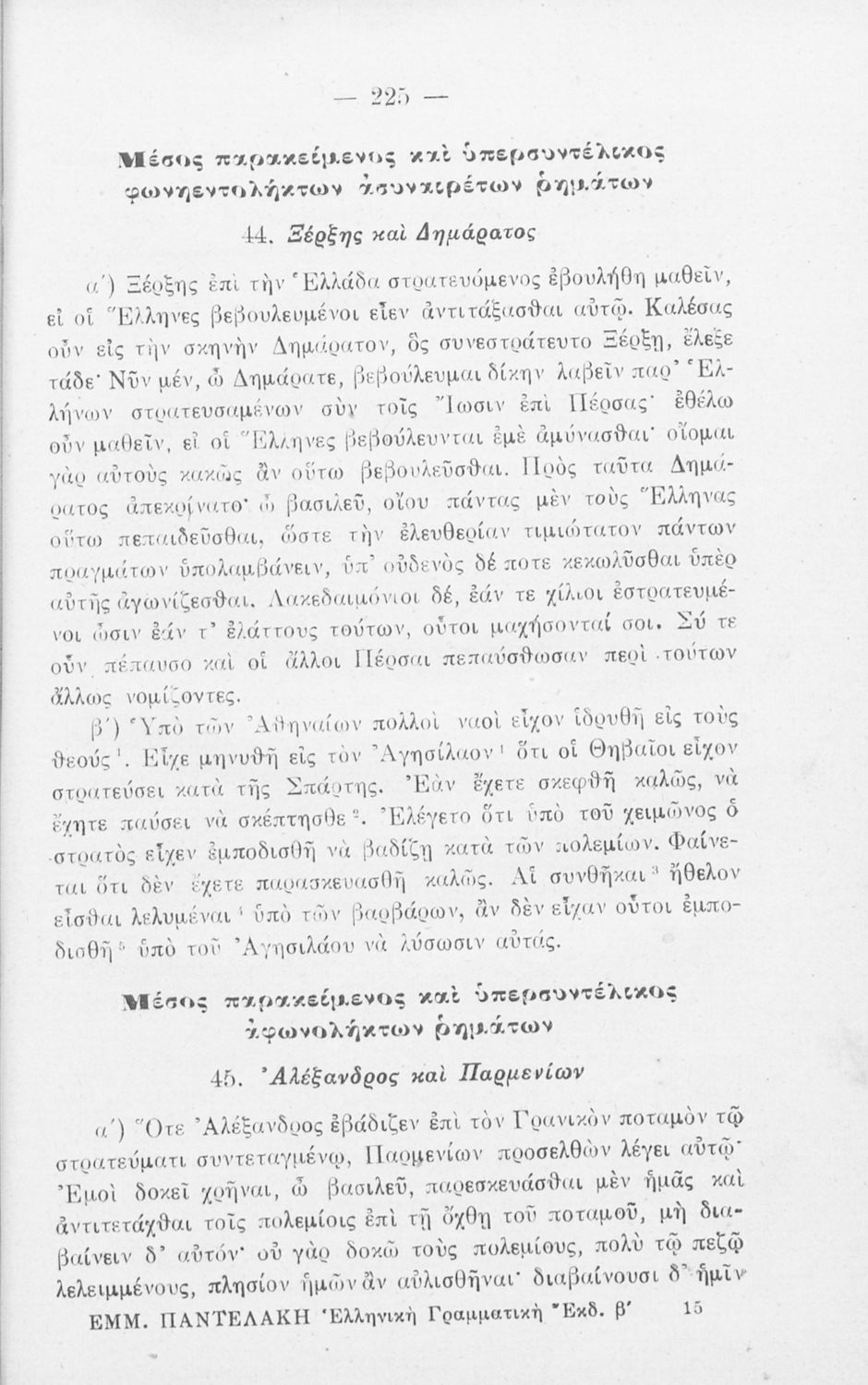 Σχολικό εγχειρίδιο Αρχαίων Ελληνικών Γυμνασίου που περιλαμβάνει τη γραμματική της αρχαίας ελληνικής και είναι χωρισμένο σε φθογγολογικό και τυπολογικό μέρος Περιέχει και κατάλογο ανωμάλων ρημάτων.