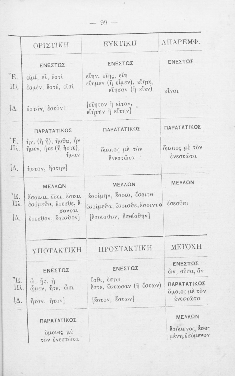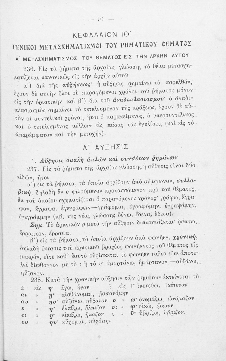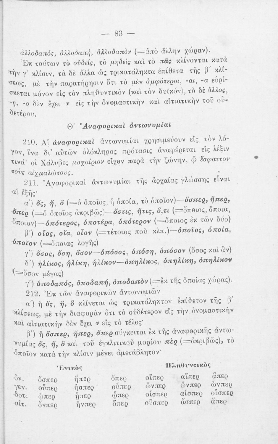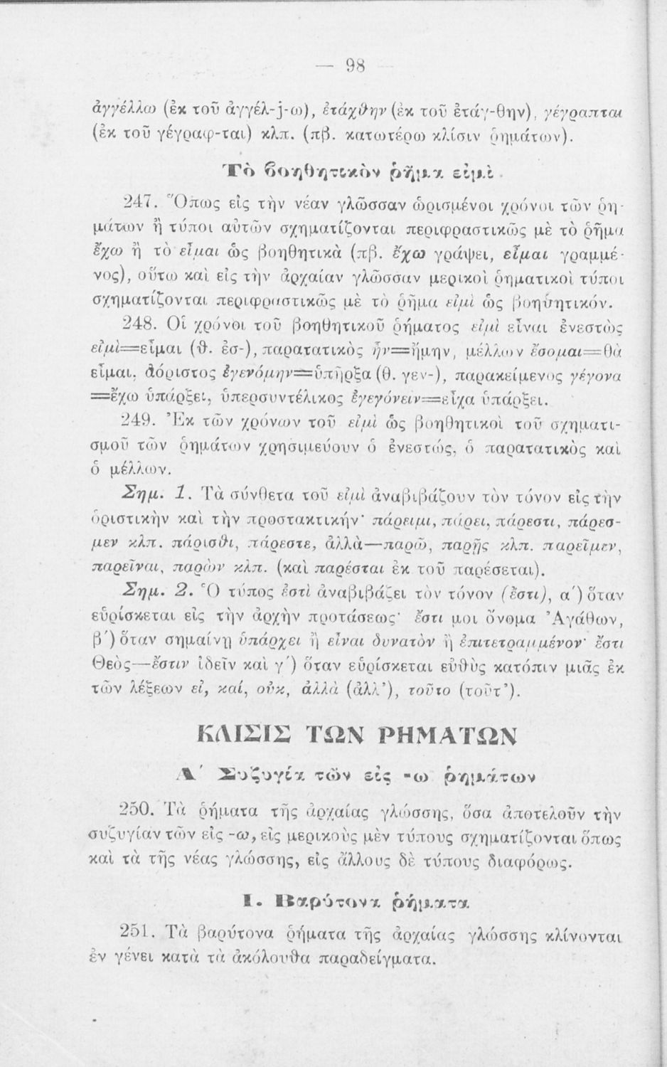 Σχολικό εγχειρίδιο Αρχαίων Ελληνικών Γυμνασίου που περιλαμβάνει τη γραμματική της αρχαίας ελληνικής και είναι χωρισμένο σε φθογγολογικό και τυπολογικό μέρος Περιέχει και κατάλογο ανωμάλων ρημάτων.