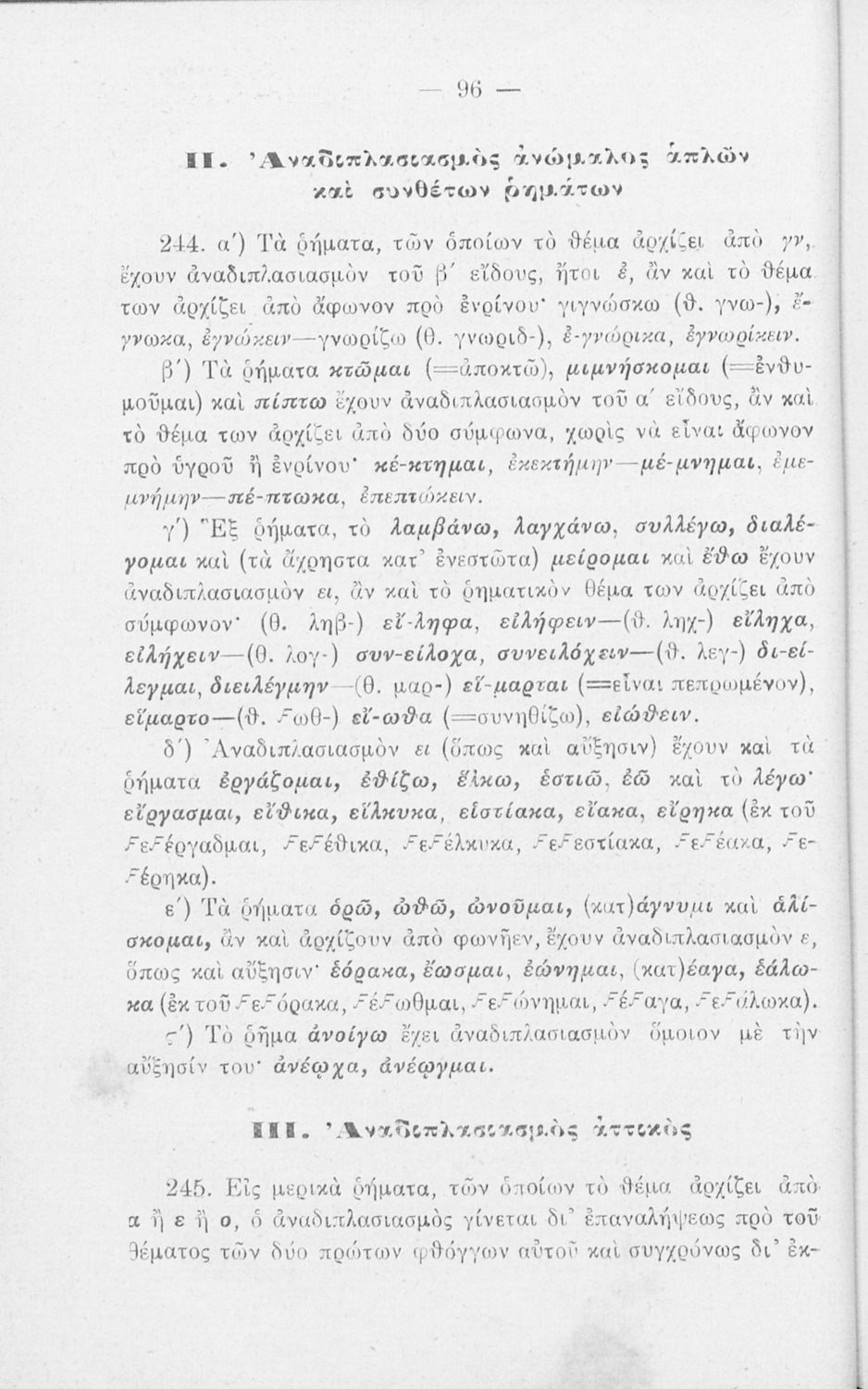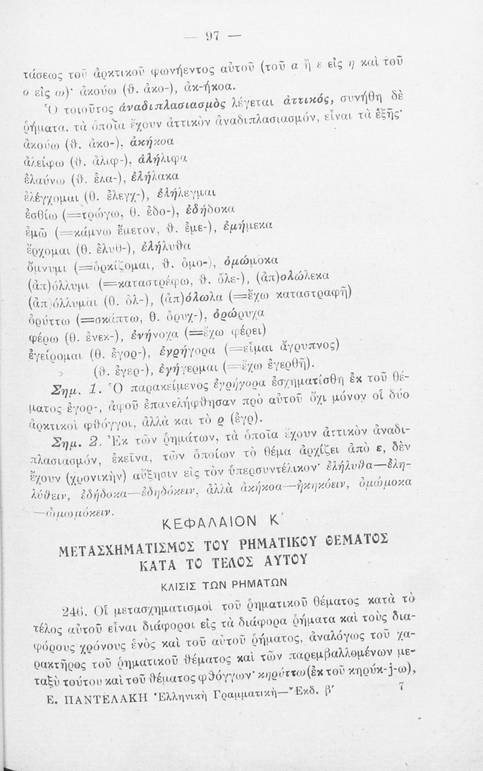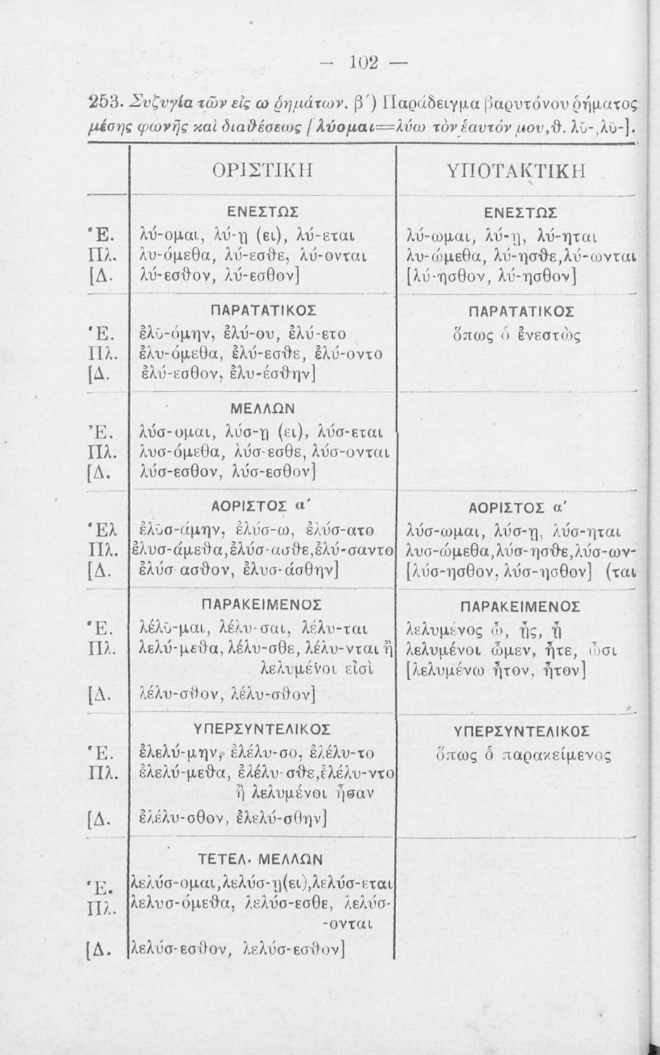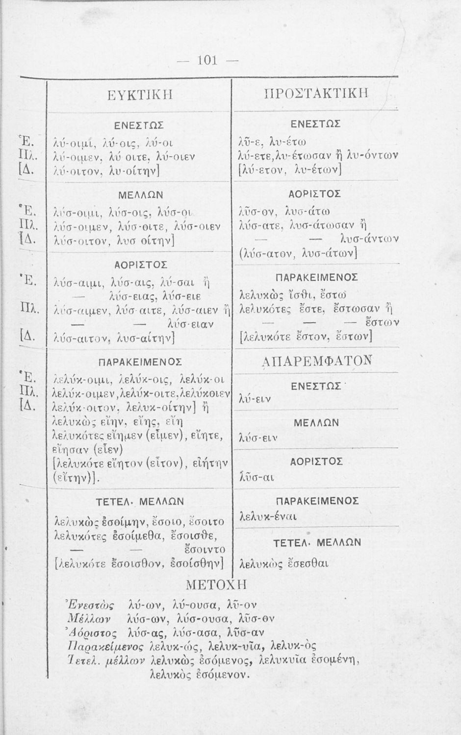 Σχολικό εγχειρίδιο Αρχαίων Ελληνικών Γυμνασίου που περιλαμβάνει τη γραμματική της αρχαίας ελληνικής και είναι χωρισμένο σε φθογγολογικό και τυπολογικό μέρος Περιέχει και κατάλογο ανωμάλων ρημάτων.