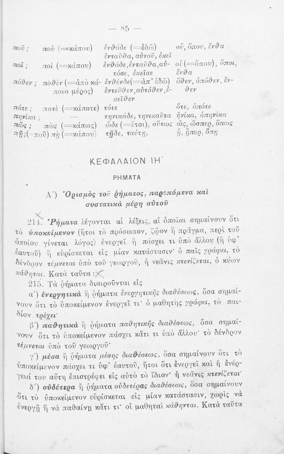 Σχολικό εγχειρίδιο Αρχαίων Ελληνικών Γυμνασίου που περιλαμβάνει τους κανόνες γραμματικής και είναι χωρισμένη στο φθογγολογικό, το τυπολογικό και ετυμολογικό μέρος.