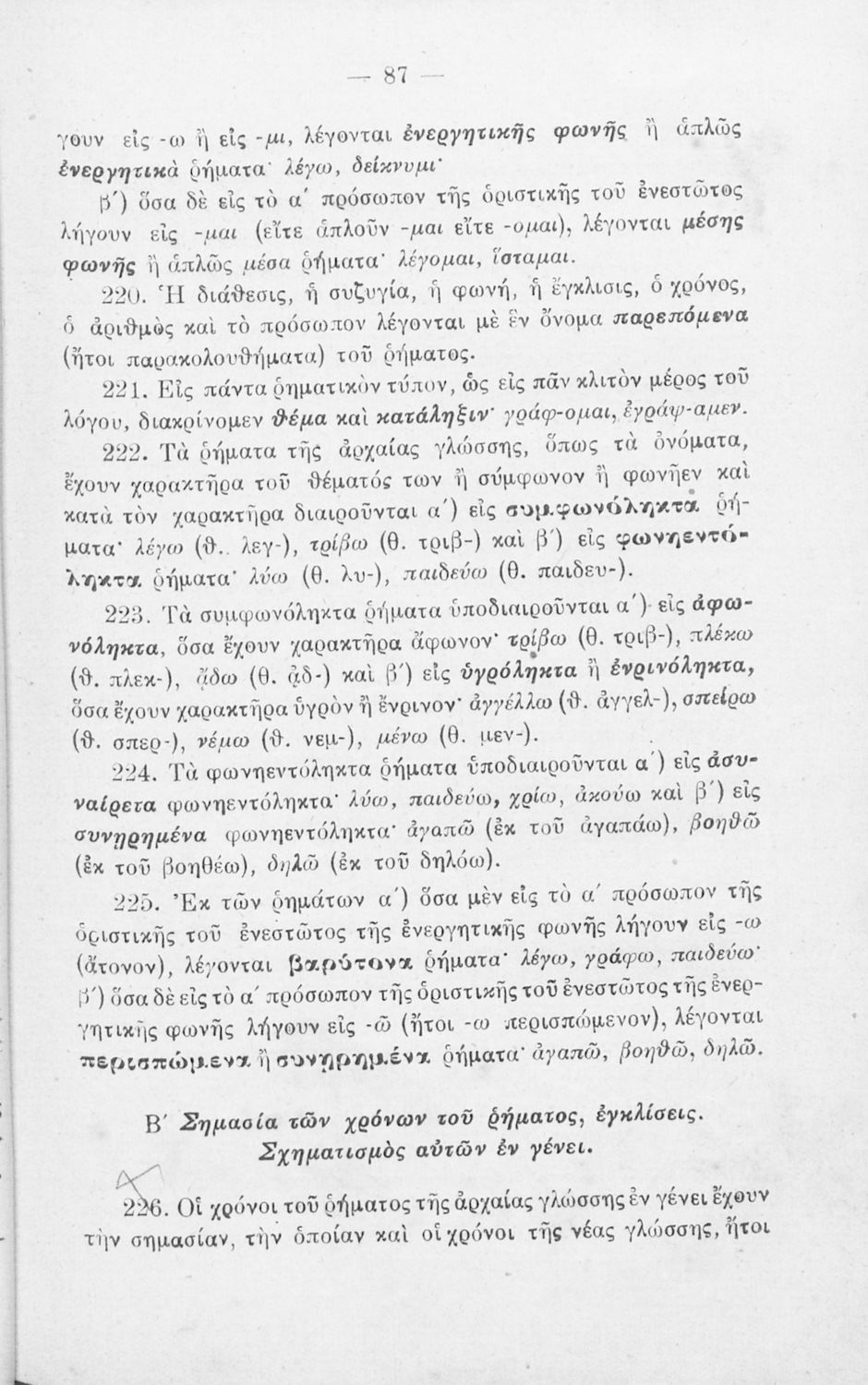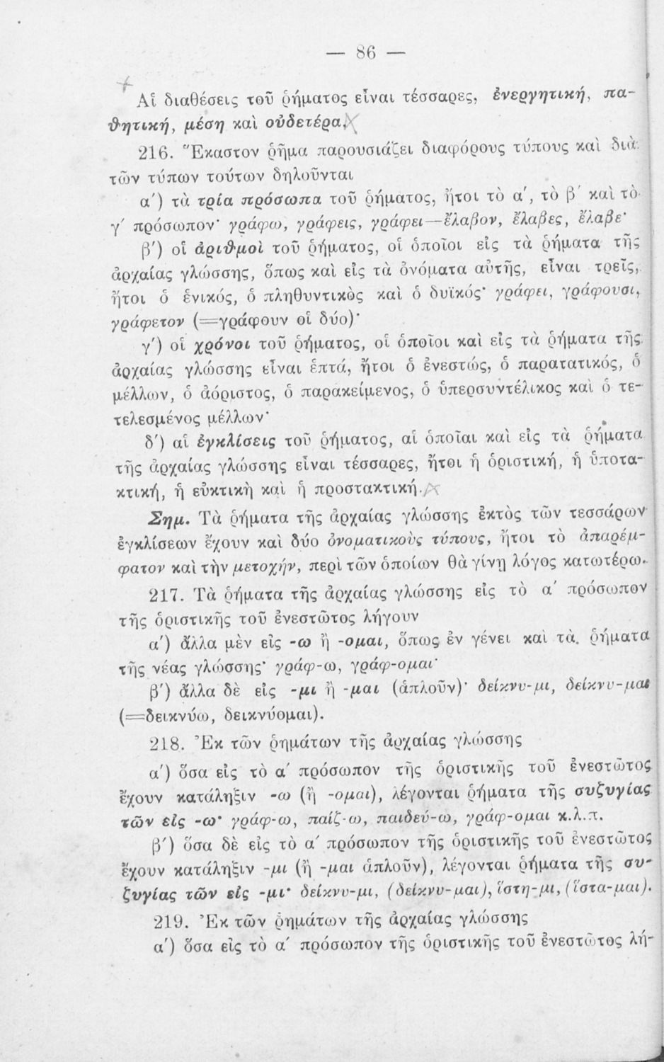 Σχολικό Εγχειρίδιο Αρχαίων Ελληνικών που περιλαμβάνει τους κανόνες γραμματικής της αρχαίας ελληνικής.
