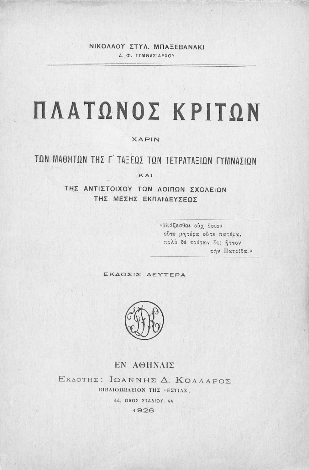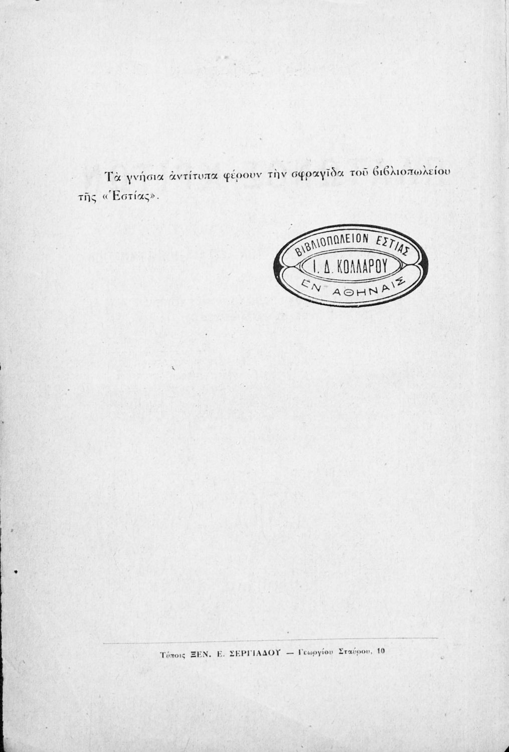 Εκδότης: Ιωάννης Δ. Κολλάρος Έτος έκδοσης: 1926 Τόπος έκδοσης: Αθήνα Έκδοση: 2η |