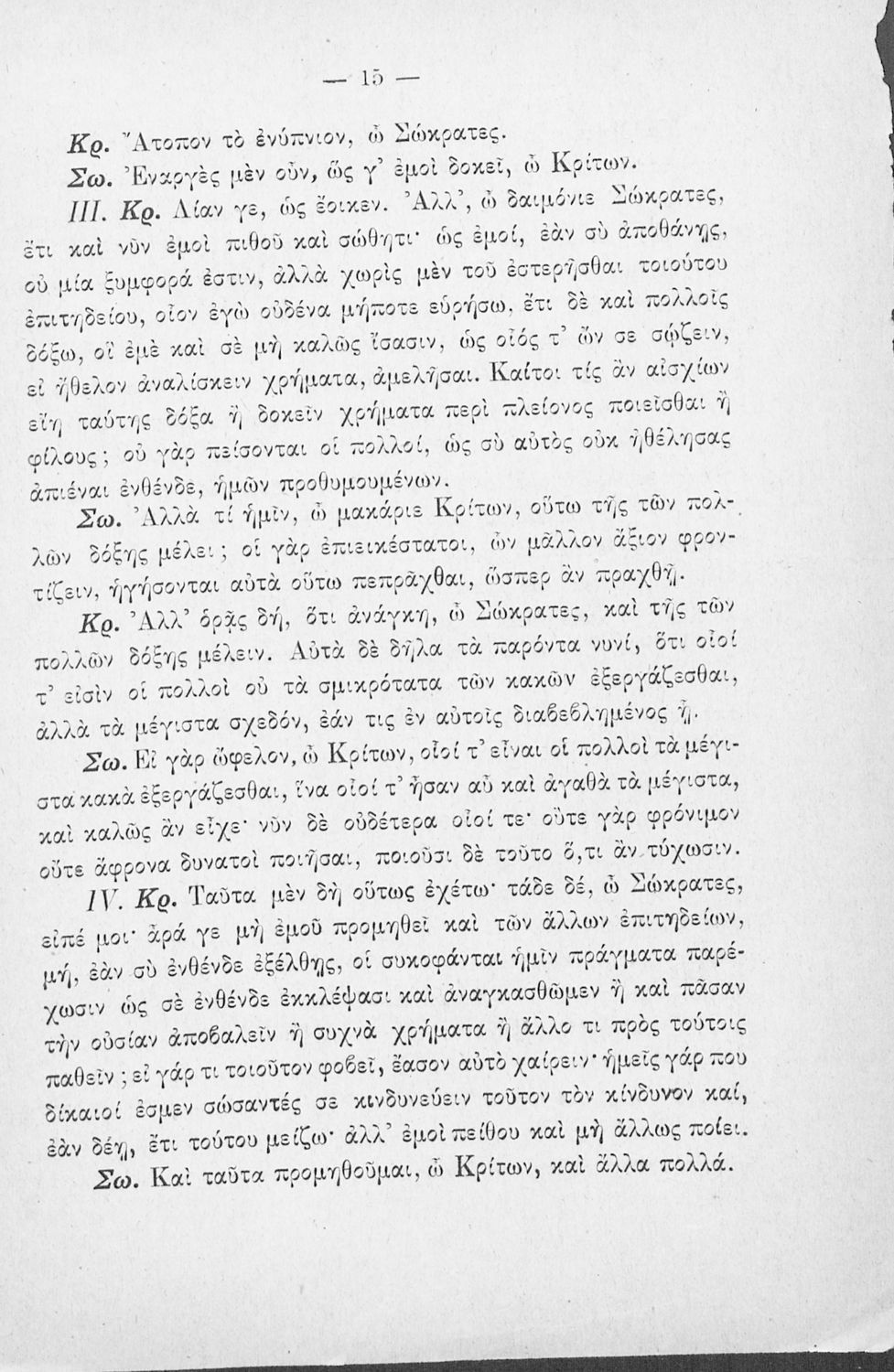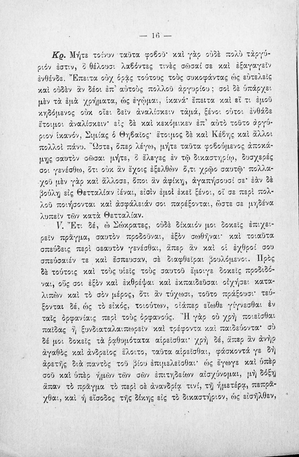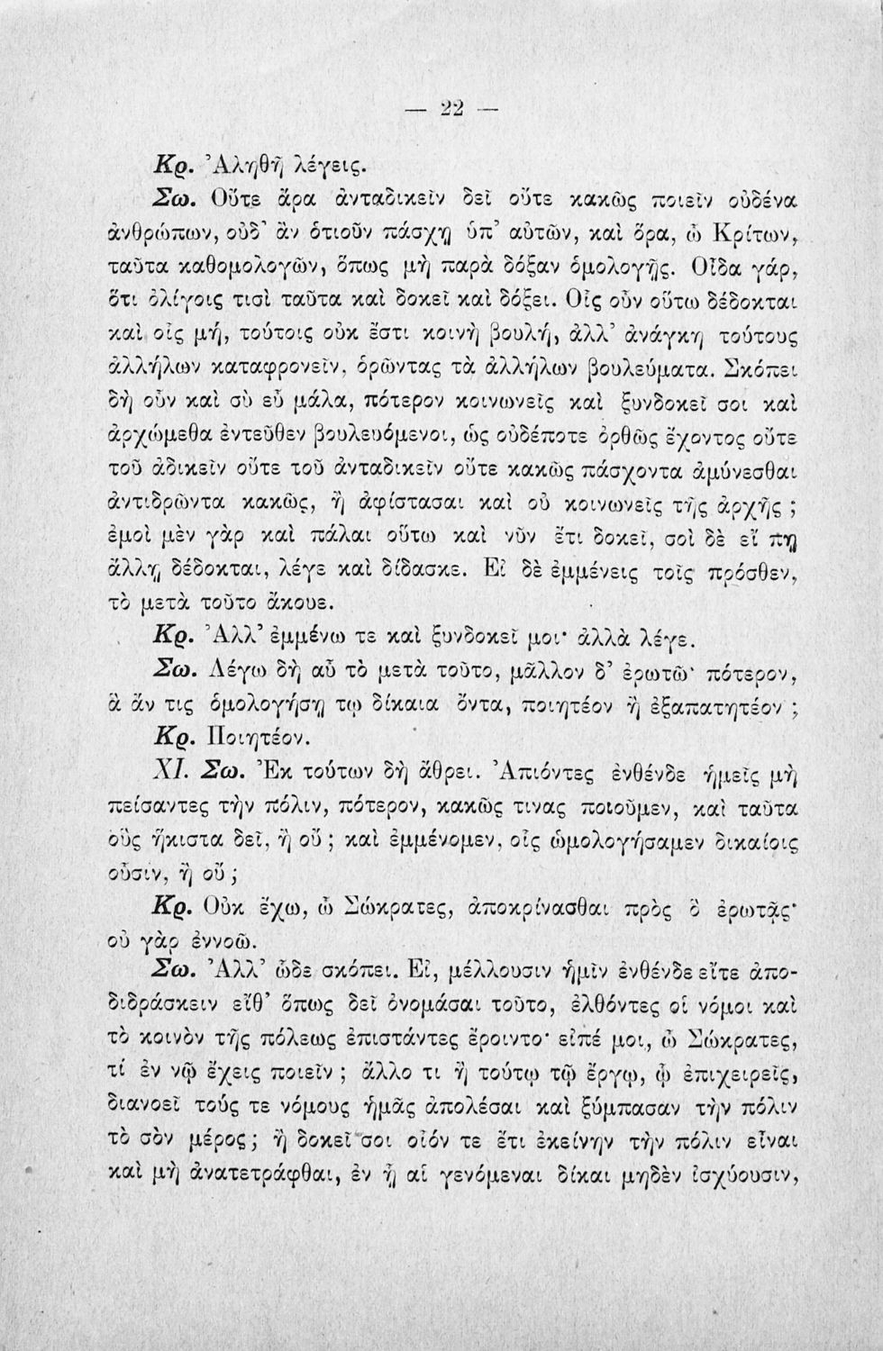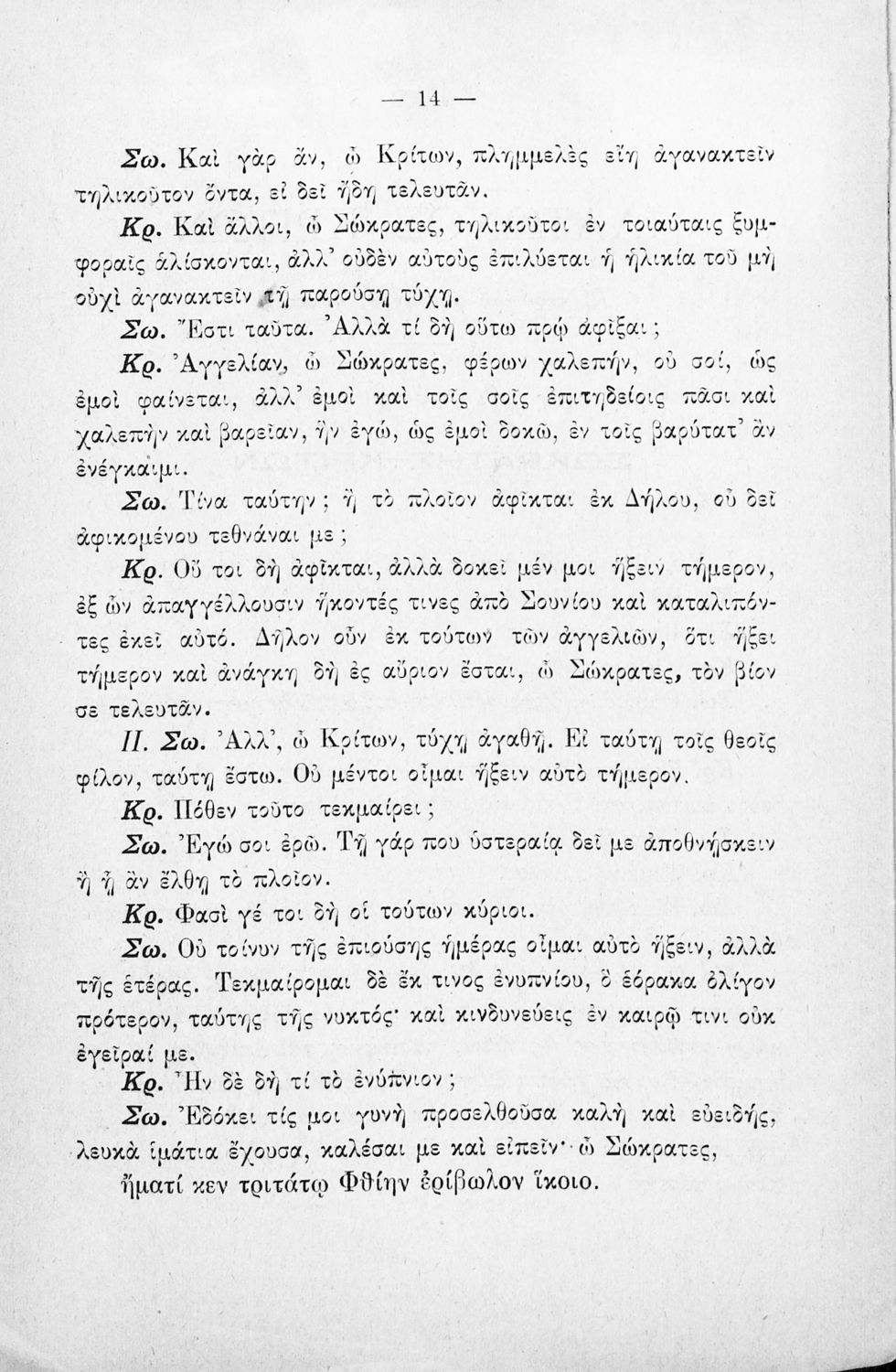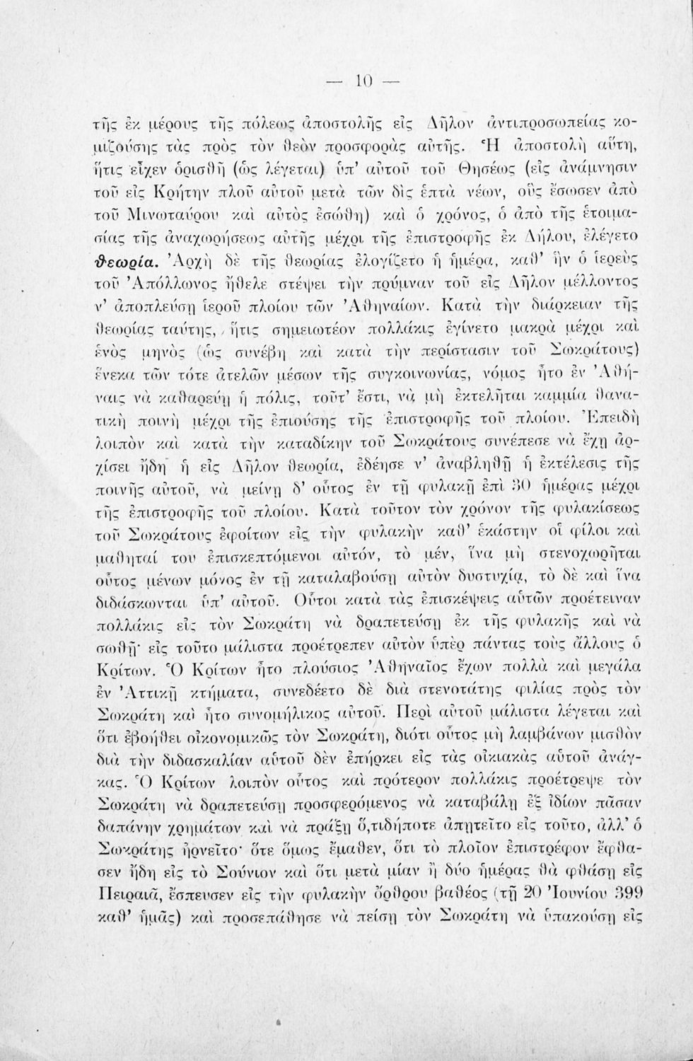 Μαθητικό βοήθημα Αρχαίων Ελληνικών Γ΄ Γυμνασίου που περιέχει σύντομη εισαγωγή στη ζωή και το έργο του Πλάτωνα και του Σωκράτη, κείμενο και ερμηνευτικές και πραγματολογικές σημειώσεις.