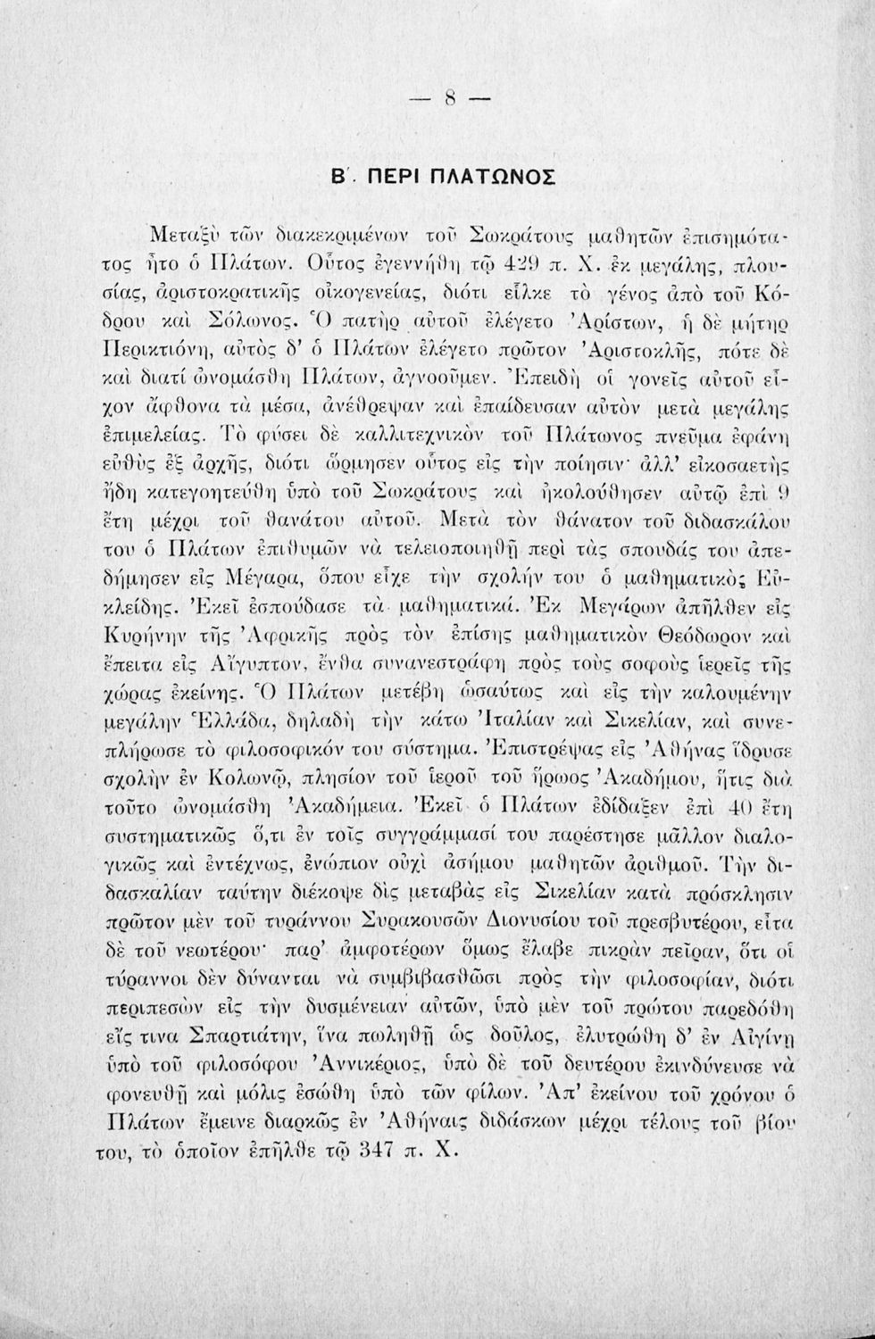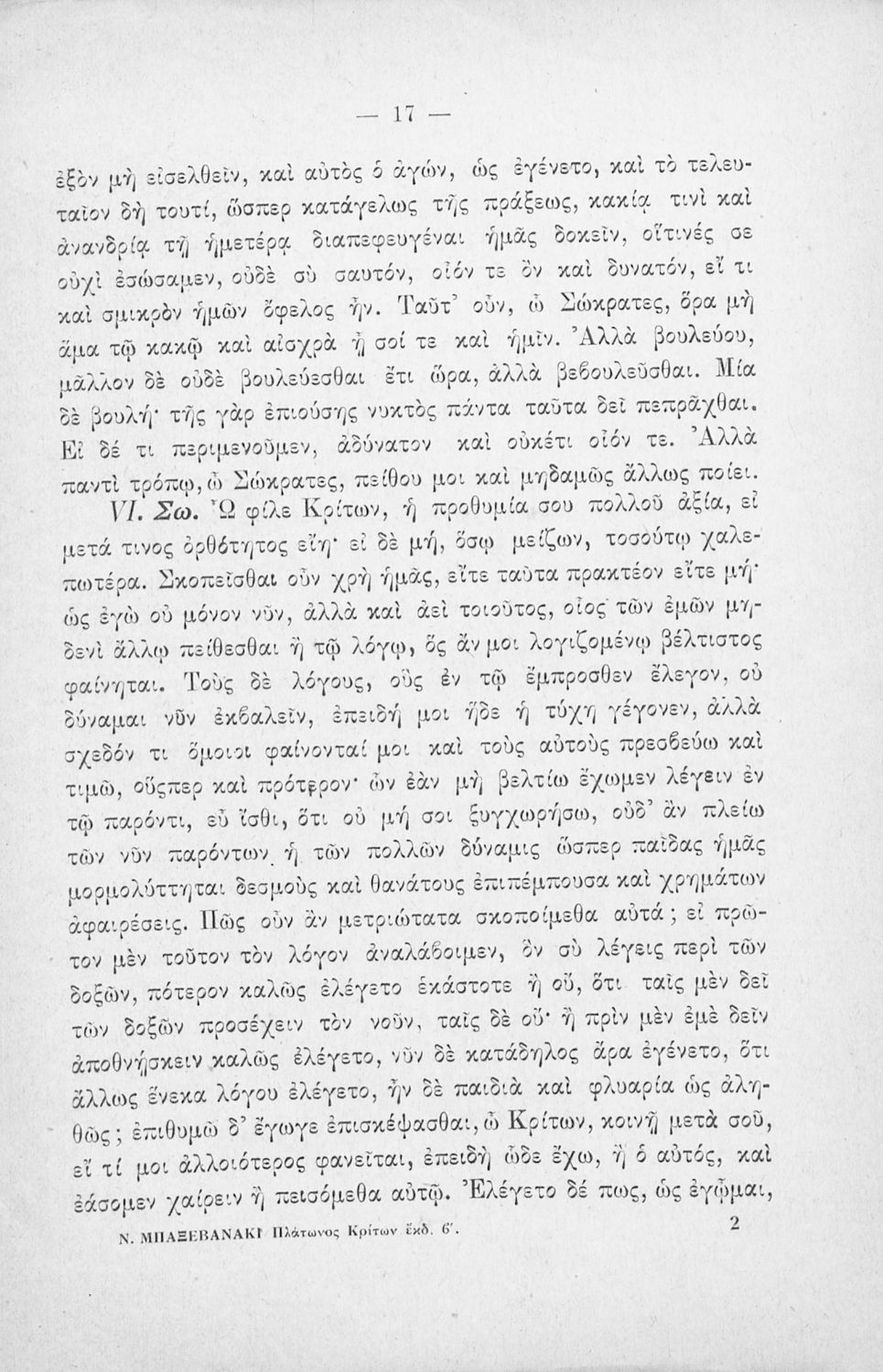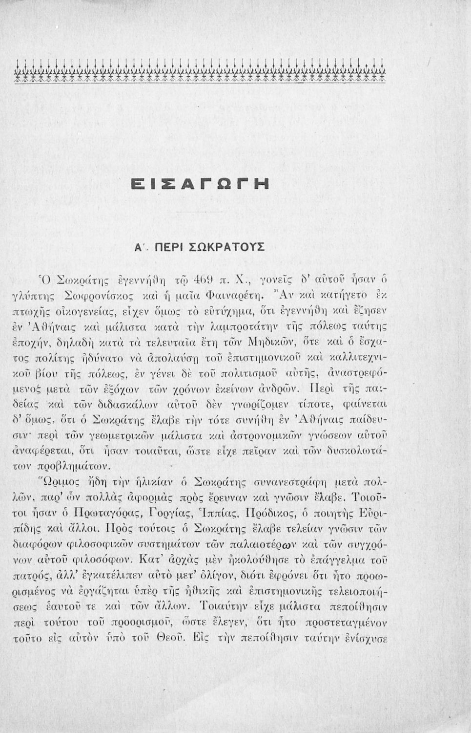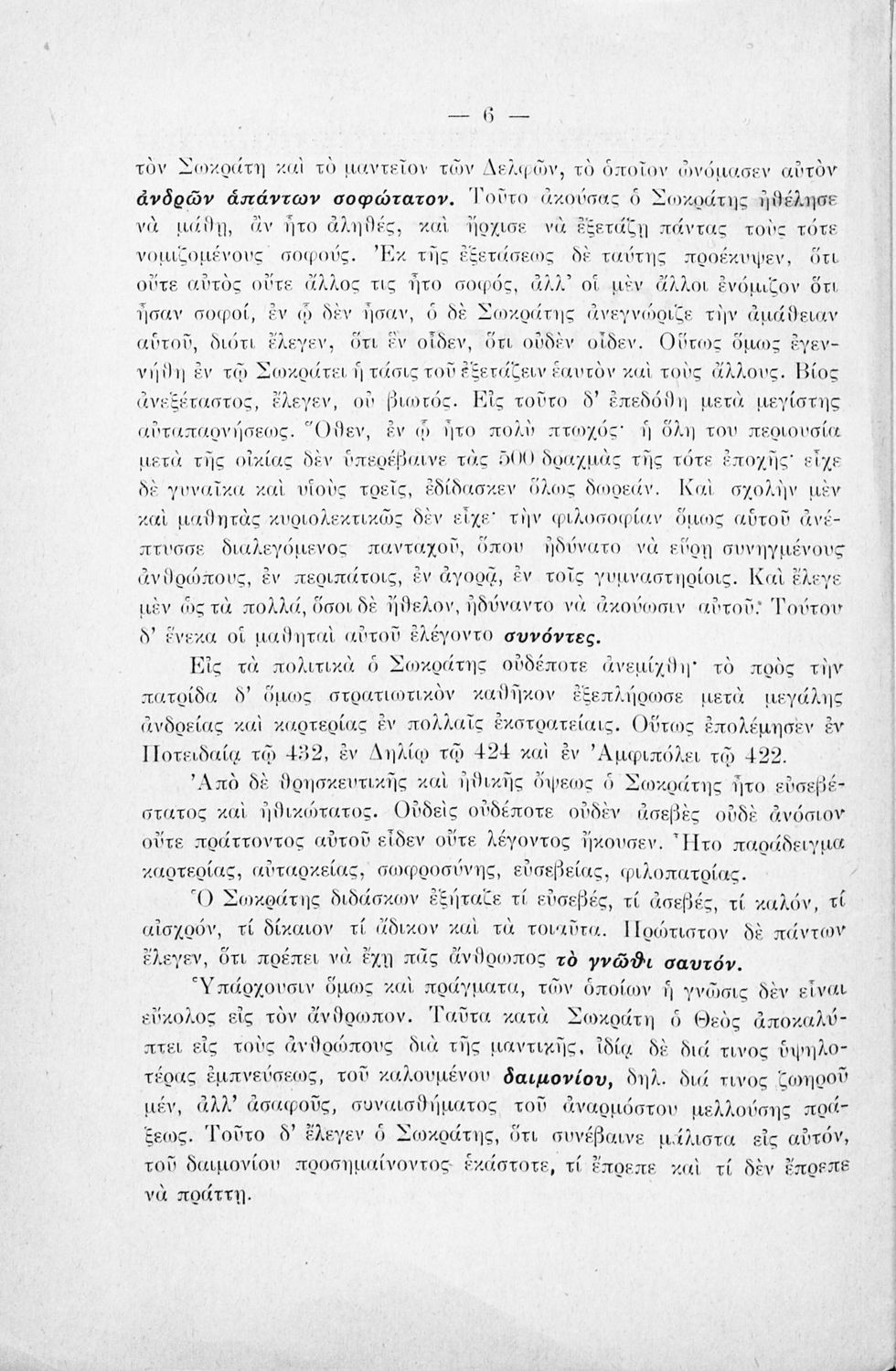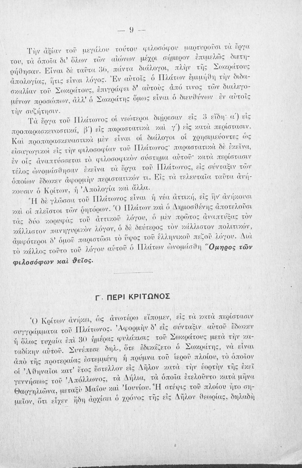 Μαθητικό βοήθημα Αρχαίων Ελληνικών Γ΄ Γυμνασίου που περιέχει σύντομη εισαγωγή στη ζωή και το έργο του Πλάτωνα και του Σωκράτη, κείμενο και ερμηνευτικές και πραγματολογικές σημειώσεις.