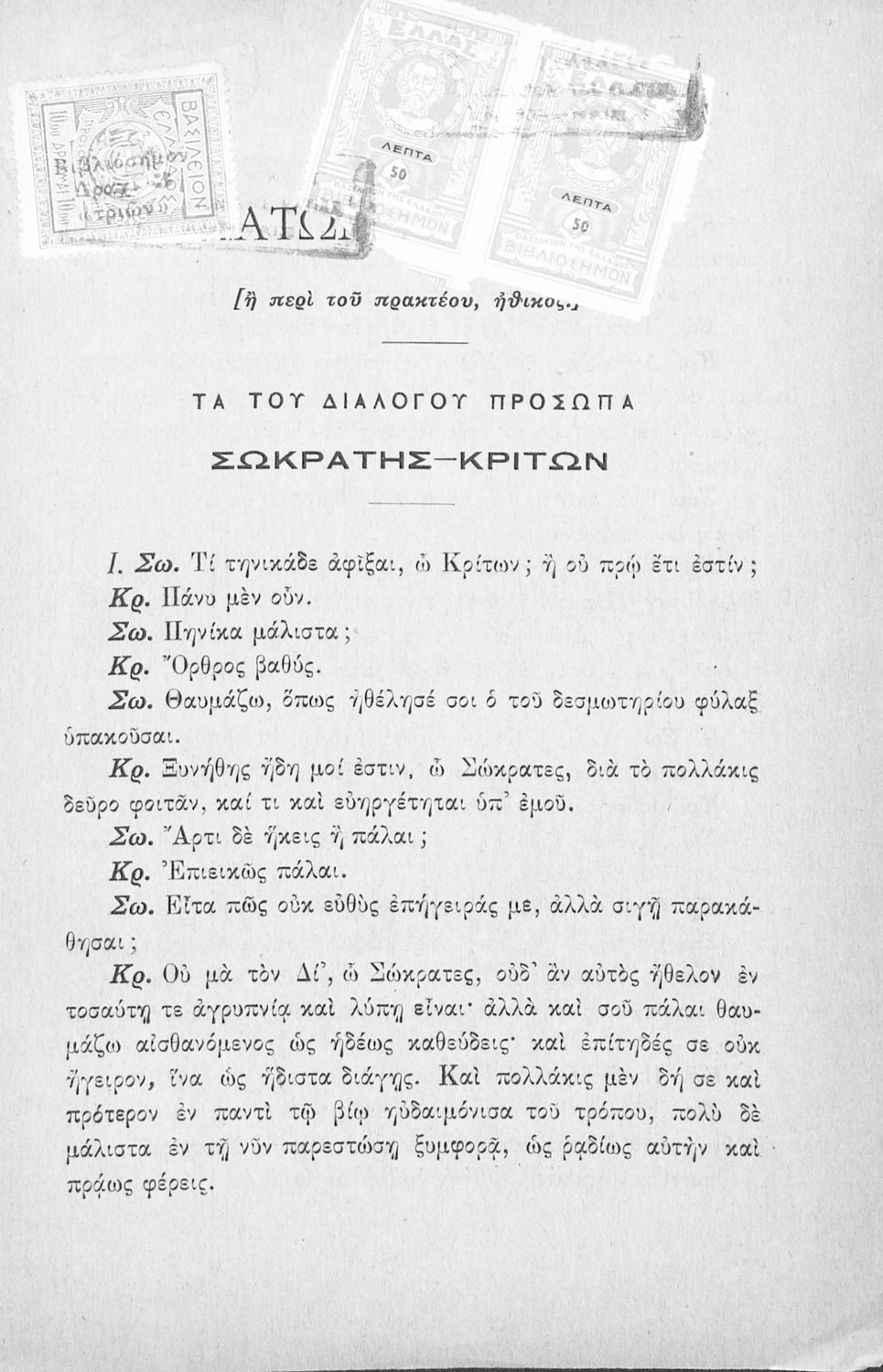 LDR 01255 2200205 4500 035 ## _a02-01751 040 ## _aΕλληνικό Λογοτεχνικό και Ιστορικό Αρχείο 041 ## _ael 100 ## _aΠλάτων _aΝικόλαος Σ. Μπαξεβανάκις (σχόλια) 110 ## _a1926 ΠΛΑ 245 0# _aΠλάτωνος Κρίτων χάριν των μαθητών της Γ΄ τάξεως των Τετραταξίων Γυμνασίων και της αντιστοίχου των λοιπών σχολείων της Μέσης Εκπαιδεύσεως 250 ## _a2η Έκδοση 260 ## _aΑθήνα _bΙωάννης Δ. Κολλάρος _c1926 300 ## _a70 520 ## _aΜαθητικό βοήθημα Αρχαίων Ελληνικών Γ΄ Γυμνασίου που περιέχει σύντομη εισαγωγή στη ζωή και το έργο του Πλάτωνα και του Σωκράτη, κείμενο και ερμηνευτικές και πραγματολογικές σημειώσεις. 521 ## _aΓ' Γυμνασίου 522 ## _aΕλλάδα 546 ## _aΚαθαρεύουσα 563 ## _aΜαλακό Εξώφυλλο 650 #4 _aΚριτών _aΡητορική _aΣοφιστές