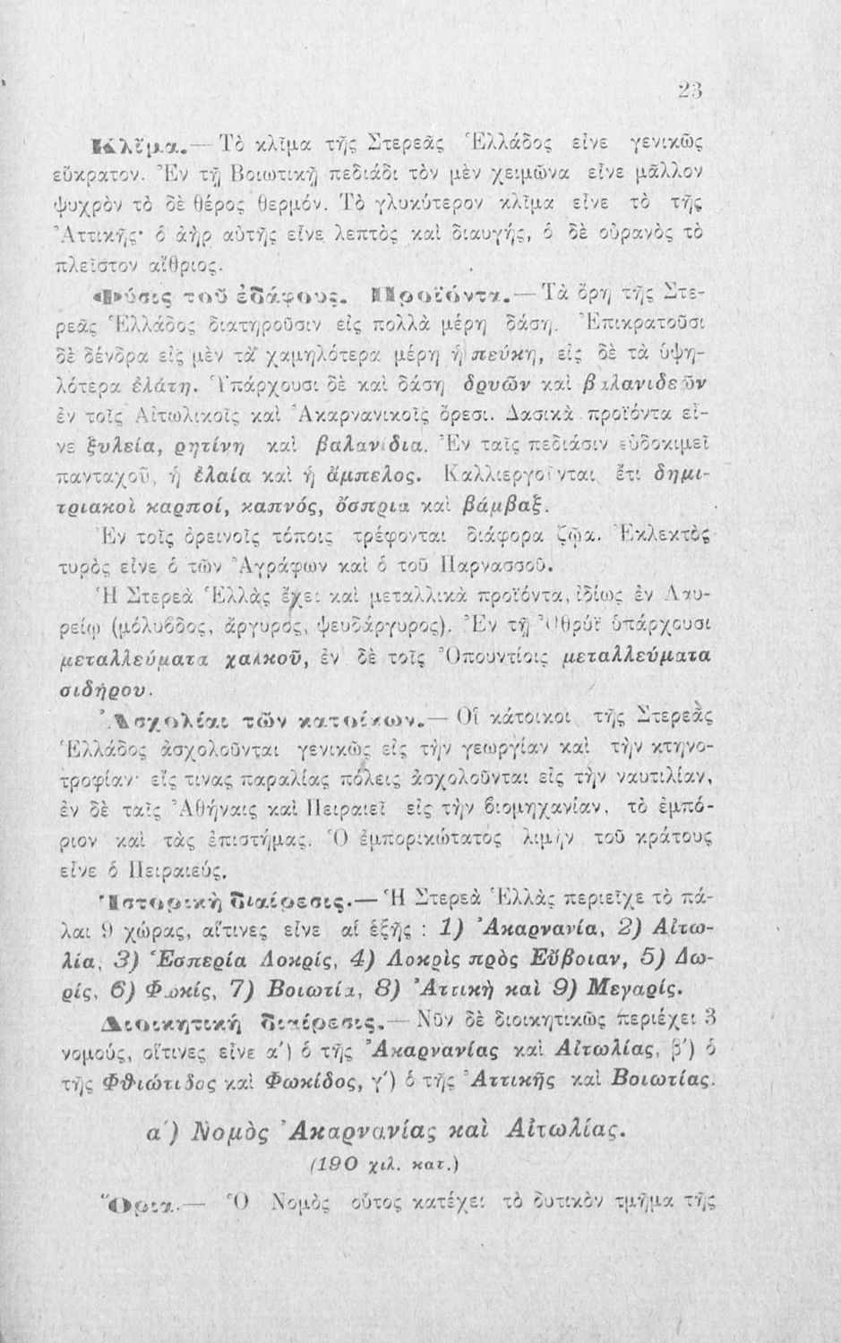 Σχολικό εγχειρίδιο Γεωγραφίας Γ΄ Ελληνικού Σχολείου που αποτελεί μια γενική επισκόπηση της Ελλάδας ανά διαμέρισμα και νομό. Περιέχει και ειδικό κεφάλαιο για τις "λοιπές ελληνικές χώρες" στις οποίες περιλαμβάνονται τα Δωδεκάνησα, η Τουρκική Θράκη, η Ανατολική Ρωμυλία, η Σερβική και Βουλγαρική Μακεδονία, η Μικρά Ασία, η Συρία, η Παλαιστίνη, και η Κύπρος.
