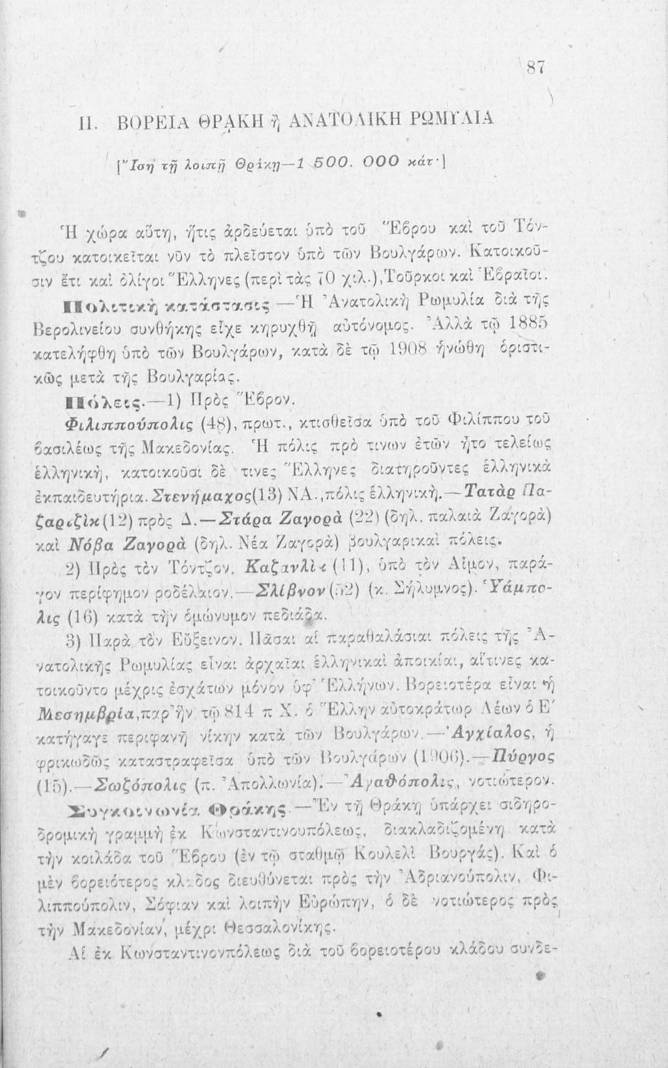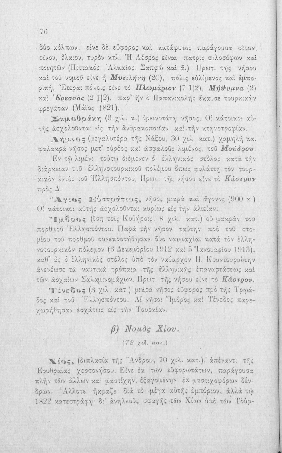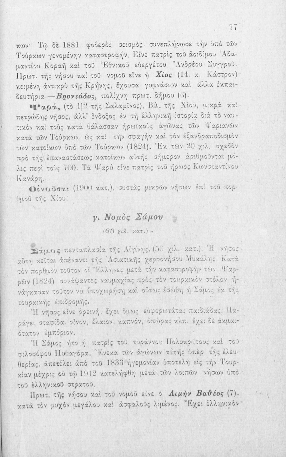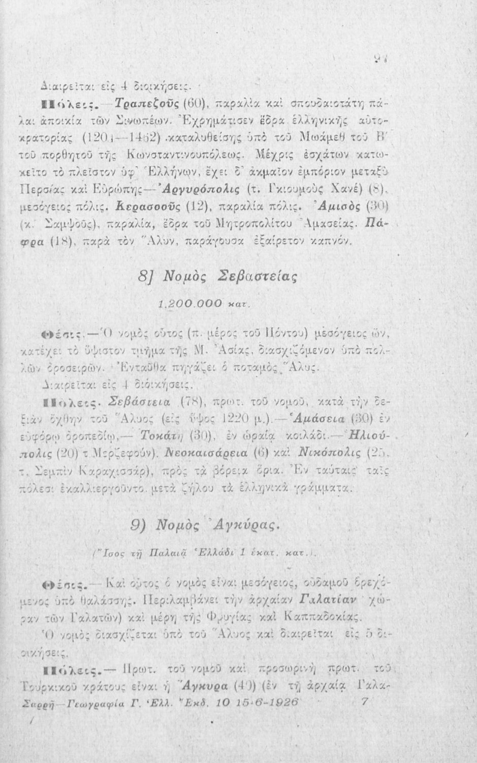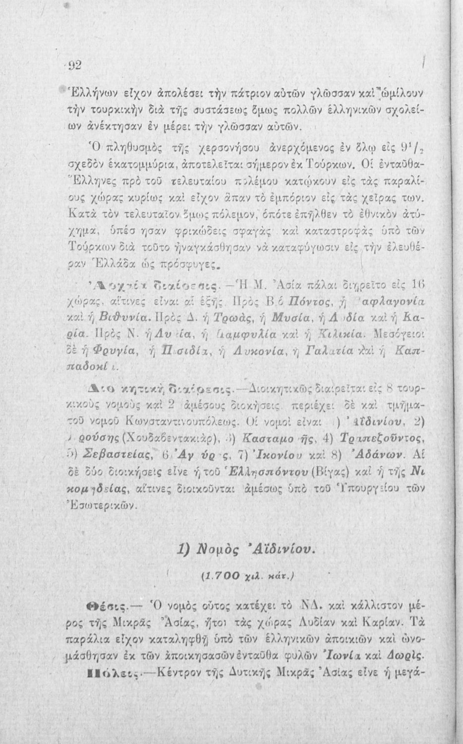 Σχολικό εγχειρίδιο Γεωγραφίας Γ΄ Ελληνικού Σχολείου που αποτελεί μια γενική επισκόπηση της Ελλάδας ανά διαμέρισμα και νομό. Περιέχει και ειδικό κεφάλαιο για τις "λοιπές ελληνικές χώρες" στις οποίες περιλαμβάνονται τα Δωδεκάνησα, η Τουρκική Θράκη, η Ανατολική Ρωμυλία, η Σερβική και Βουλγαρική Μακεδονία, η Μικρά Ασία, η Συρία, η Παλαιστίνη, και η Κύπρος.