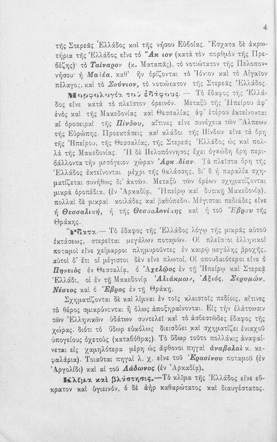 Σχολικό εγχειρίδιο Γεωγραφίας Γ΄ Ελληνικού Σχολείου που αποτελεί μια γενική επισκόπηση της Ελλάδας ανά διαμέρισμα και νομό. Περιέχει και ειδικό κεφάλαιο για τις "λοιπές ελληνικές χώρες" στις οποίες περιλαμβάνονται τα Δωδεκάνησα, η Τουρκική Θράκη, η Ανατολική Ρωμυλία, η Σερβική και Βουλγαρική Μακεδονία, η Μικρά Ασία, η Συρία, η Παλαιστίνη, και η Κύπρος.