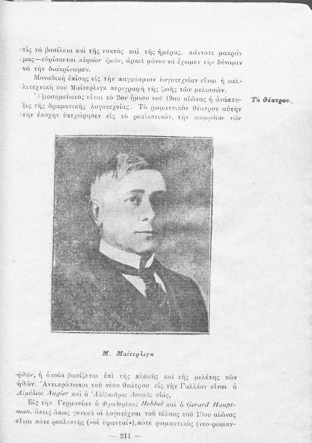 Σχολικό εγχειρίδιο Νέων Ελληνικών Δ΄ Γυμνασίου και Β΄ Αστικού Σχολείου που περιέχει πεζά και ποιήματα Ελλήνων συγγραφέων εμπνευσμένα από τη θρησκευτική και κοινωνική ζωή, την ελληνική μυθολογία, την αρχαία και