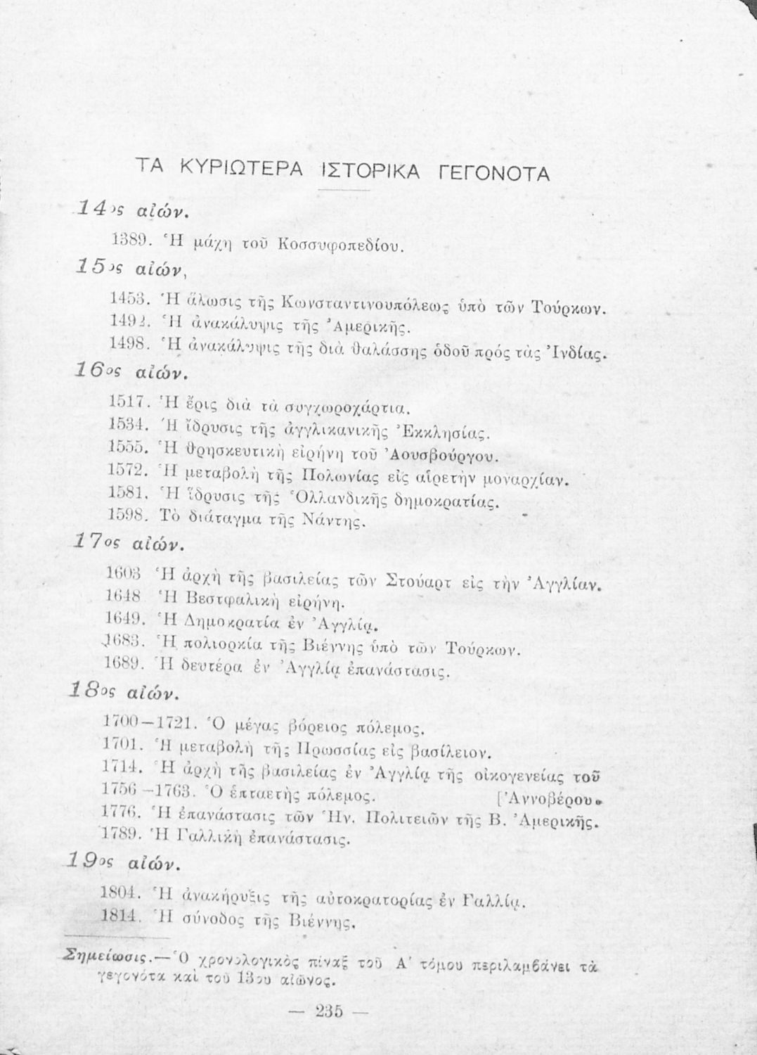 Μαθητικό βοήθημα Ιστορίας που καλύπτει την περίοδο από την άλωση της Κωνσταντινούπολης από τους Φράγκους μέχρι την αποικιοκρατία κατά τον 19ο αιώνα.