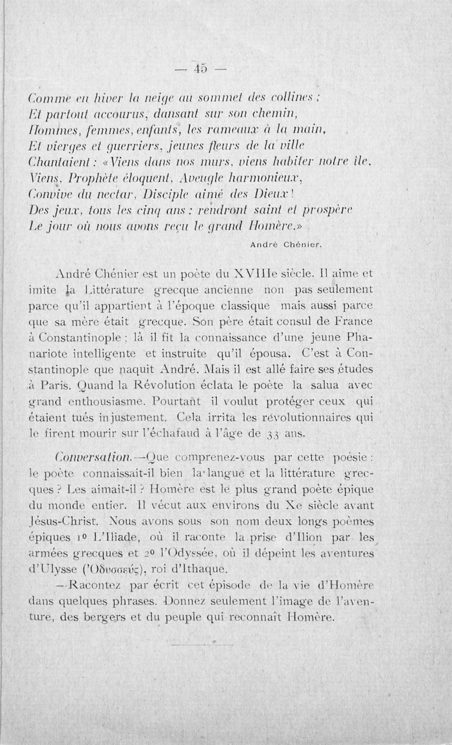 Σχολικό εγχειρίδιο Γαλλικής γλώσσας των τάξεων της Γ΄ Γυμνάσιου, Β΄ Διδασκαλείου Θηλέων και Α' Διδασκαλείου Αρρένων που περιέχει σειρά ποιημάτων και πεζών Γάλλων συγγραφέων, σύντομα βιογραφικά σημειώματα, ...