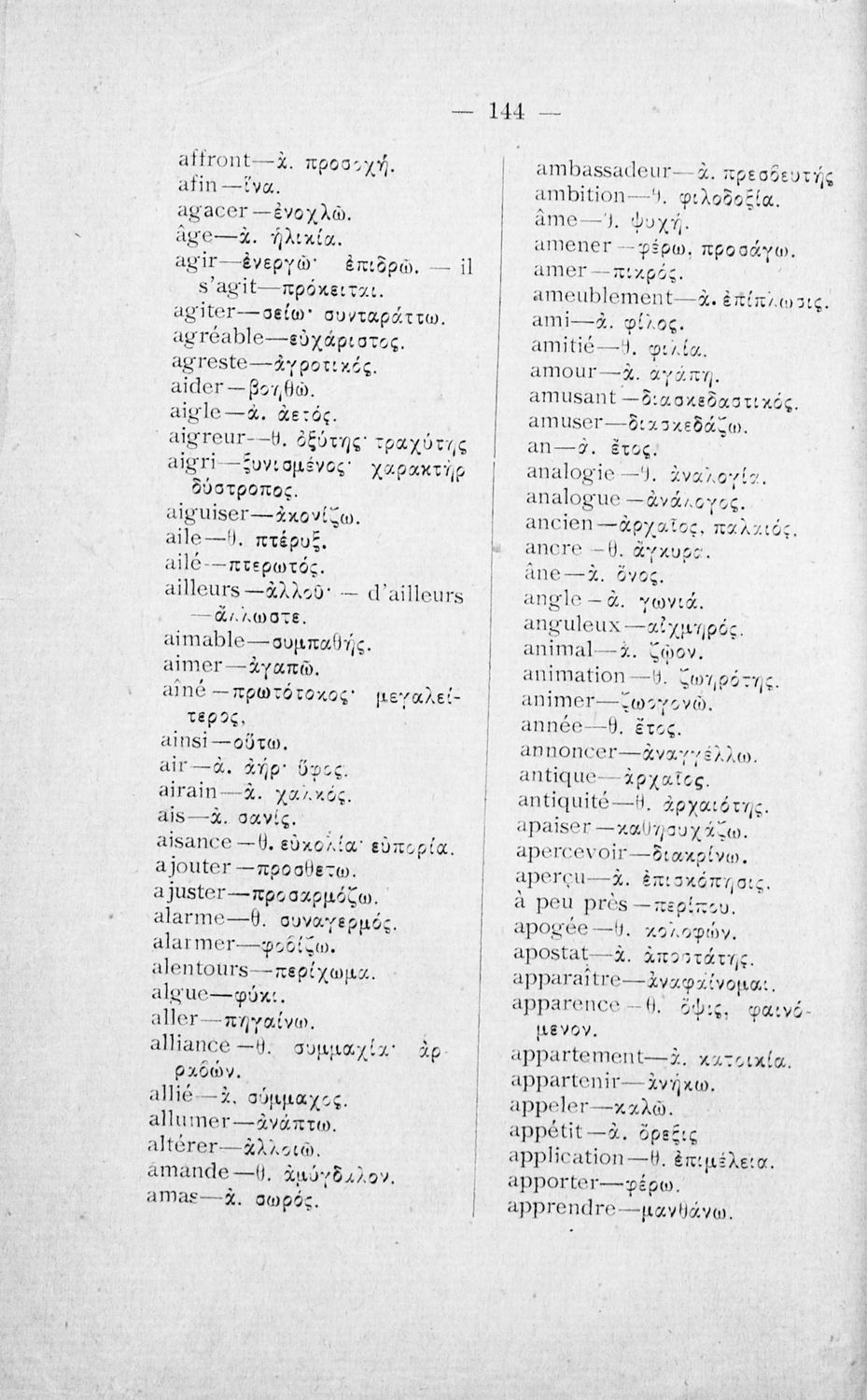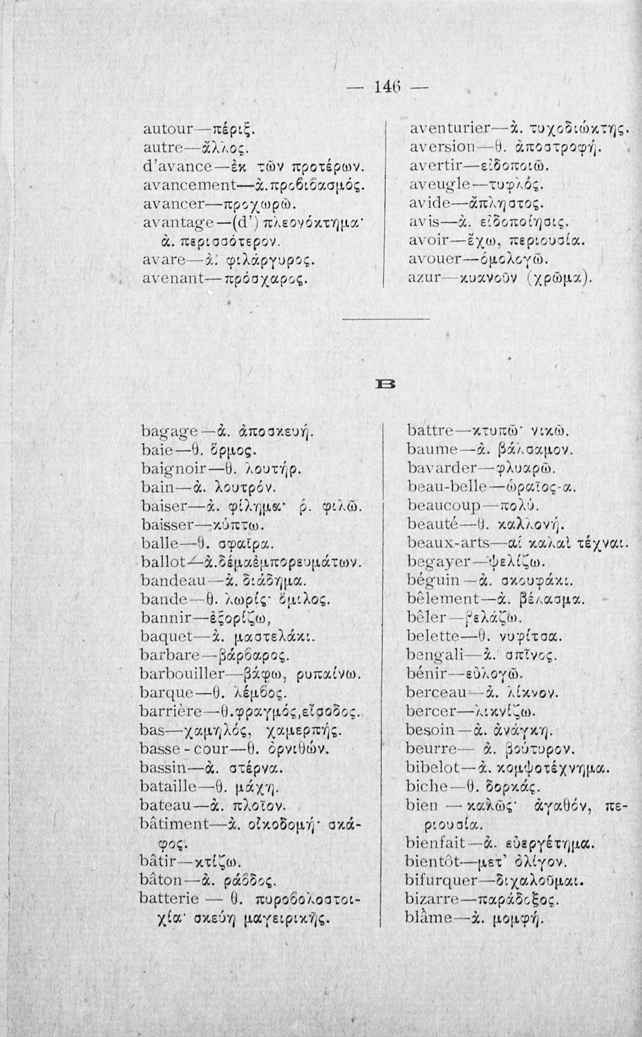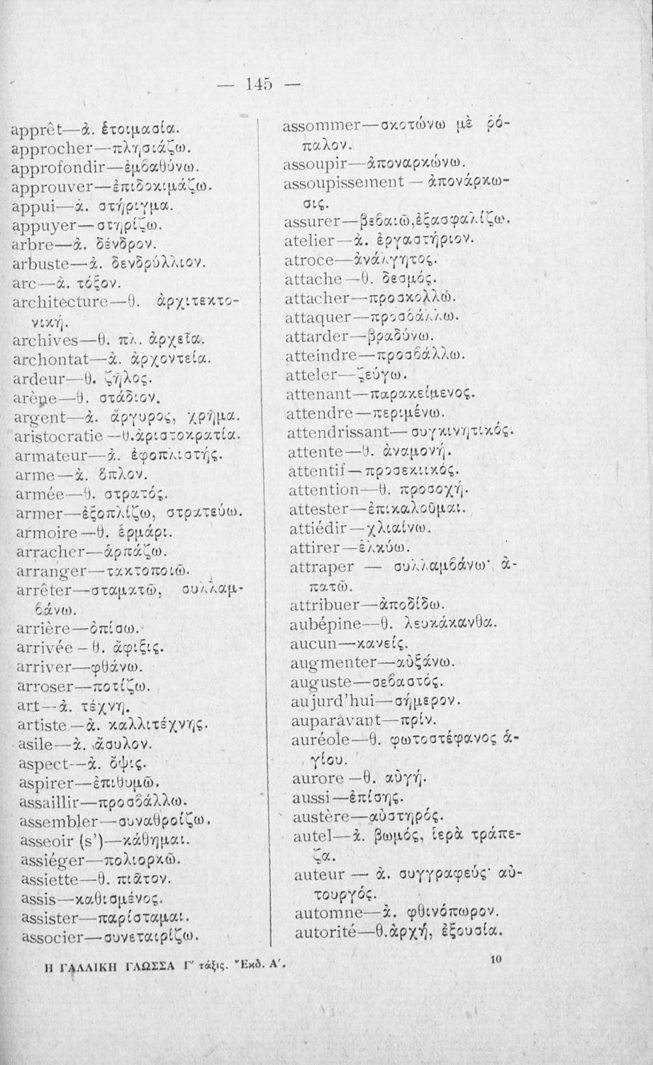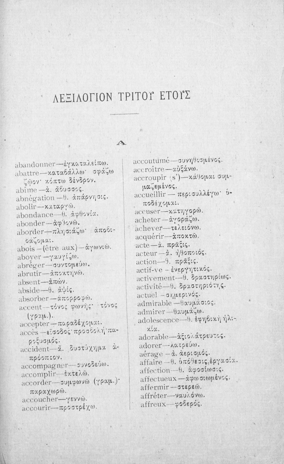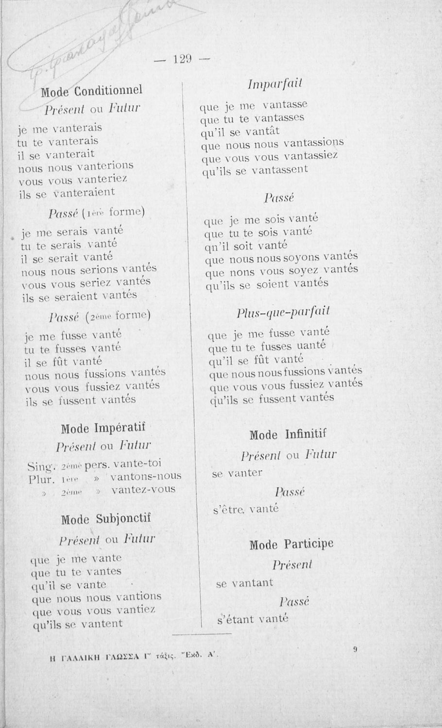 Γραμματική της Γαλλικής γλώσσας για τα Τετρατάξια Γυμνάσια, τη Γ΄ τάξη των Αστικών Σχολείων των Θηλέων και τα Διδασκαλεία της Δημοτικής Εκπαίδευσης που περιλαμβάνει θεωρία, ασκήσεις και λεξιλόγιο.