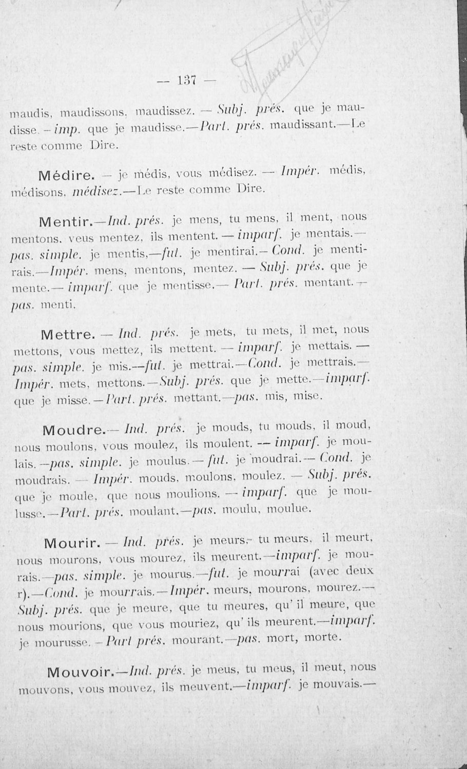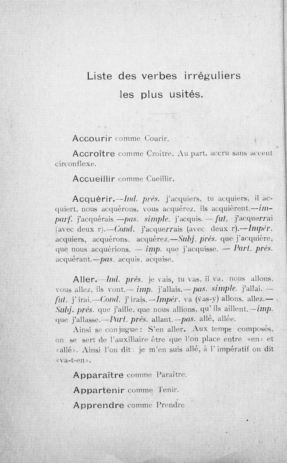 Σχολικό εγχειρίδιο Γαλλικών για τα Γυμνάσια, Αστικά Σχολεία και Διδασκαλεία που περιλαμβάνει τη γραμματική και το συντακτικό της γαλλικής γλώσσας, παραδείγματα και ασκήσεις.