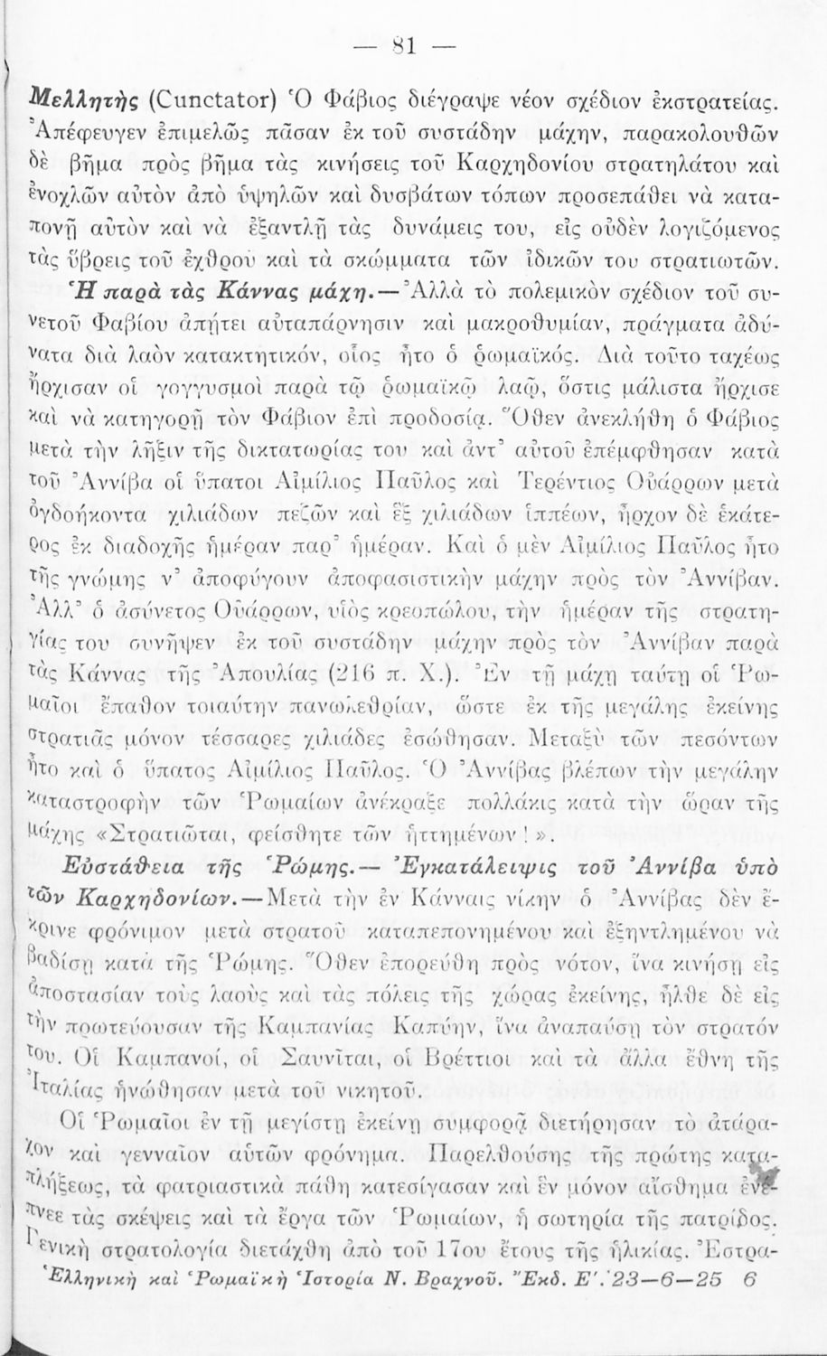 Κωδικός αναγνώρισης: 02-01763 Τίτλος: Ιστορία Ελληνική και Ρωμαϊκή. Από της εν Ιψώ μάχης μέχρι του θανάτου του Θεοδοσίου του μεγάλου. Δια την Β΄ Τάξιν των Γυμνασίων Συγγραφέας: Νικ. Ι. Βραχνός Μέγεθος και υπόστρωμα: Σχολικό εγχειρίδιο, μαλακό εξώφυλλο, 228 σελίδες. Σκίτσα, εικόνες, χάρτης (ασπρόμαυρα). |