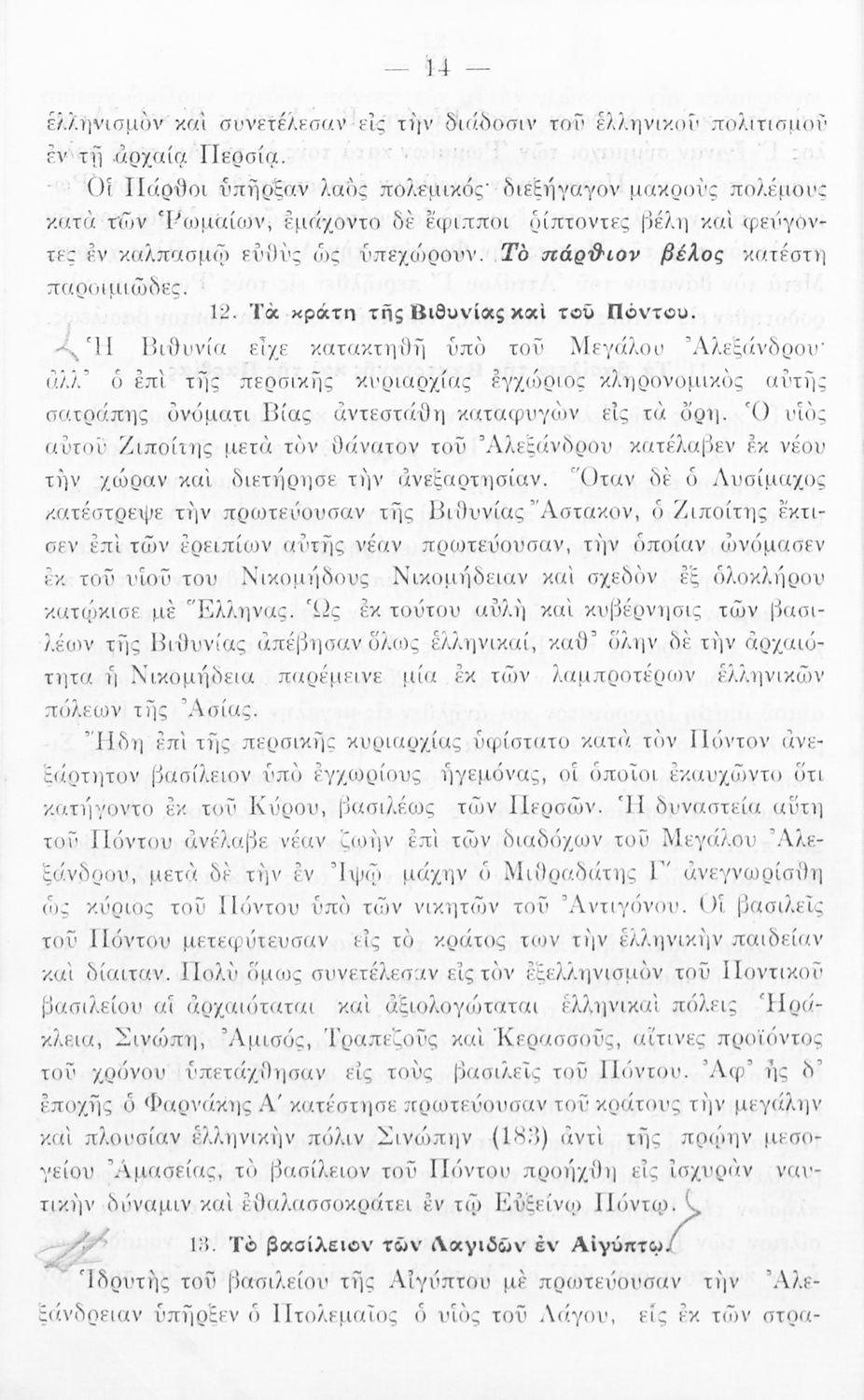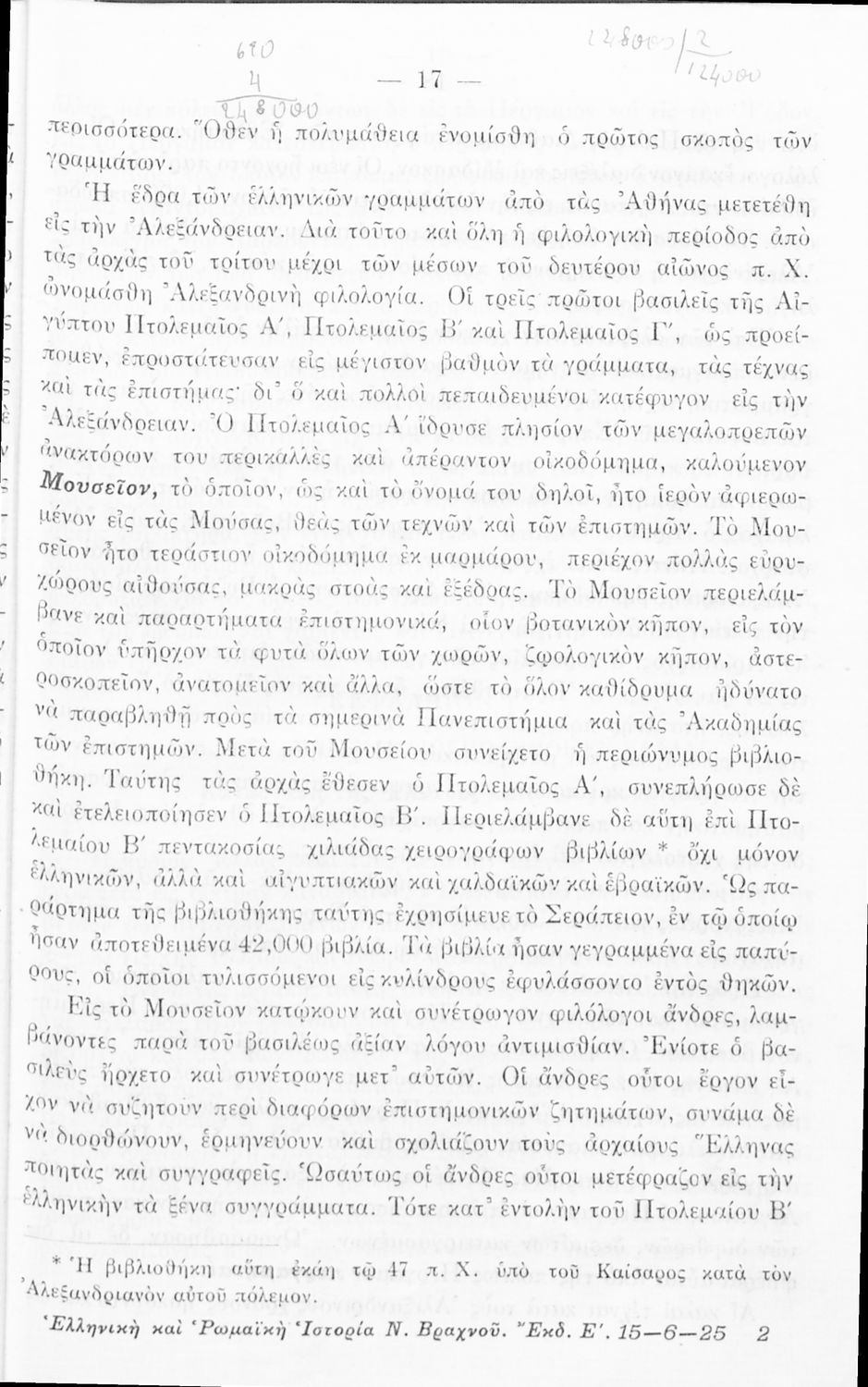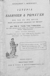 Κωδικός αναγνώρισης: 02-01763 Τίτλος: Ιστορία Ελληνική και Ρωμαϊκή. Από της εν Ιψώ μάχης μέχρι του θανάτου του Θεοδοσίου του μεγάλου. Δια την Β΄ Τάξιν των Γυμνασίων Συγγραφέας: Νικ. Ι. Βραχνός Μέγεθος και υπόστρωμα: Σχολικό εγχειρίδιο, μαλακό εξώφυλλο, 228 σελίδες. Σκίτσα, εικόνες, χάρτης (ασπρόμαυρα). |