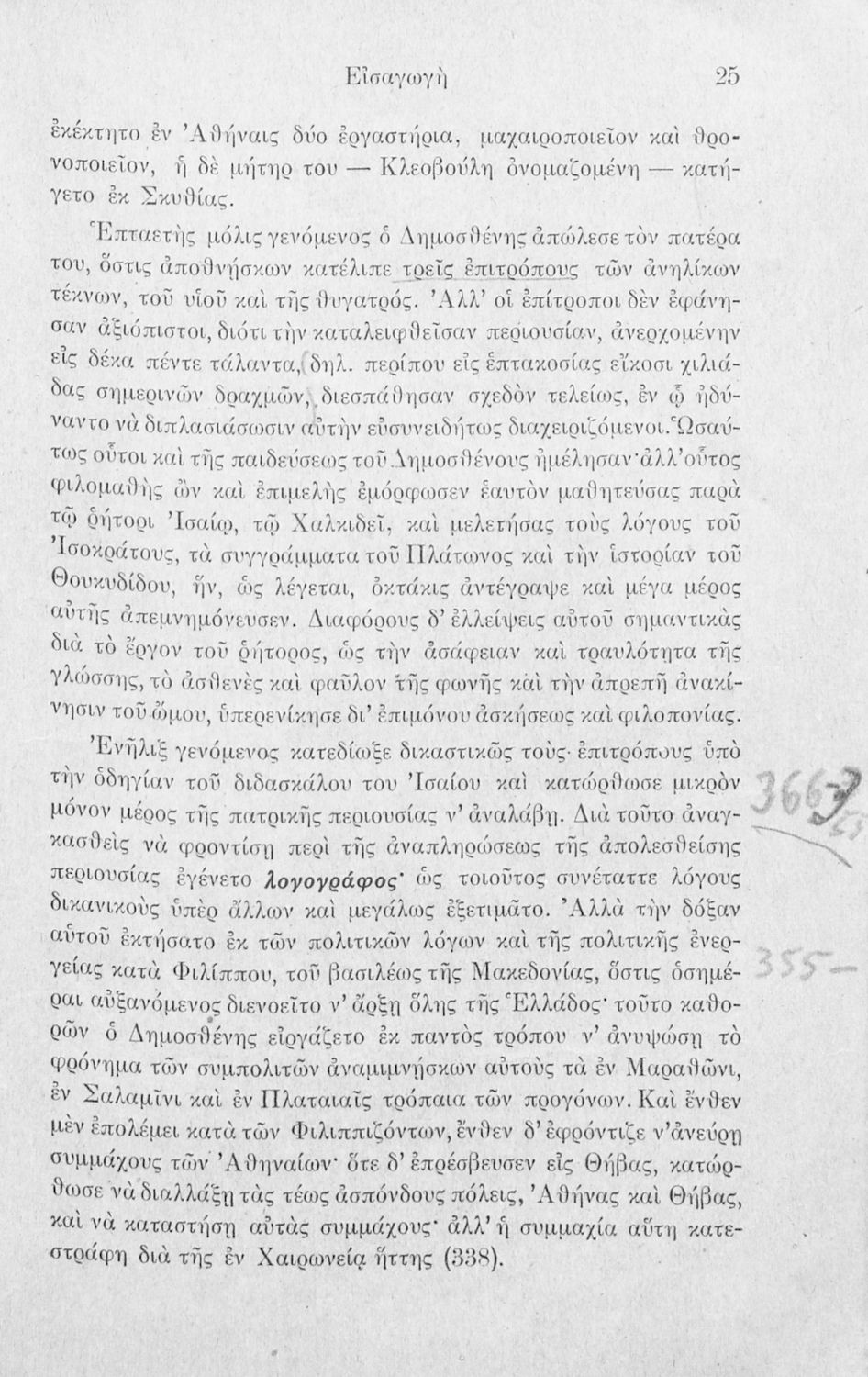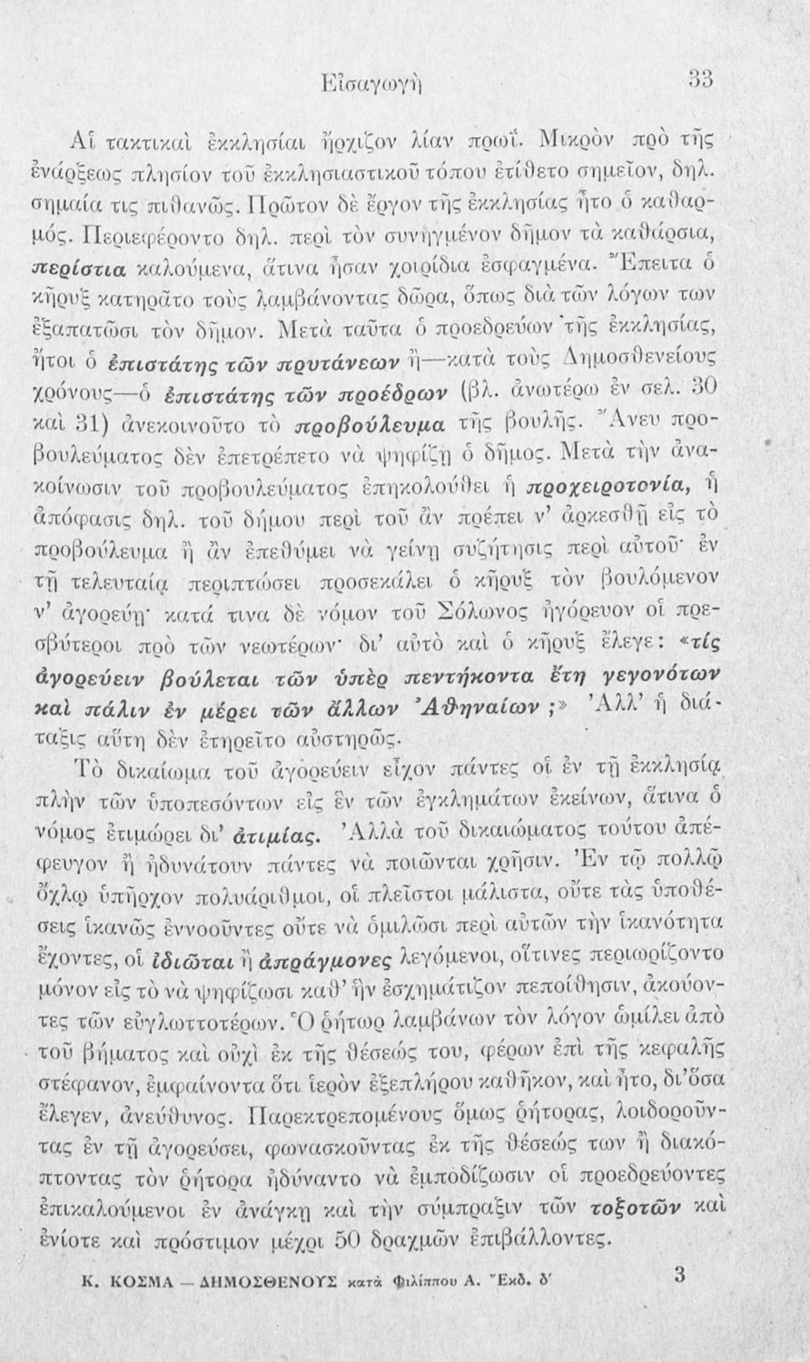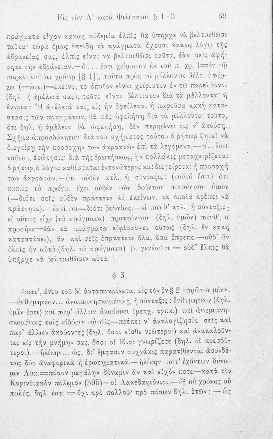 Σχολικό εγχειρίδιο Αρχαίων Ελληνικών Γ΄ Γυμνασίου που περιλαμβάνει τον Λόγο του Δημοσθένη Α΄ κατά Φιλίππου, εισαγωγικά σχόλια για το έργο και τον ζωή του Δημοσθένη, ερμηνευτικά και γραμματικά σχόλια και παρατηρήσεις.