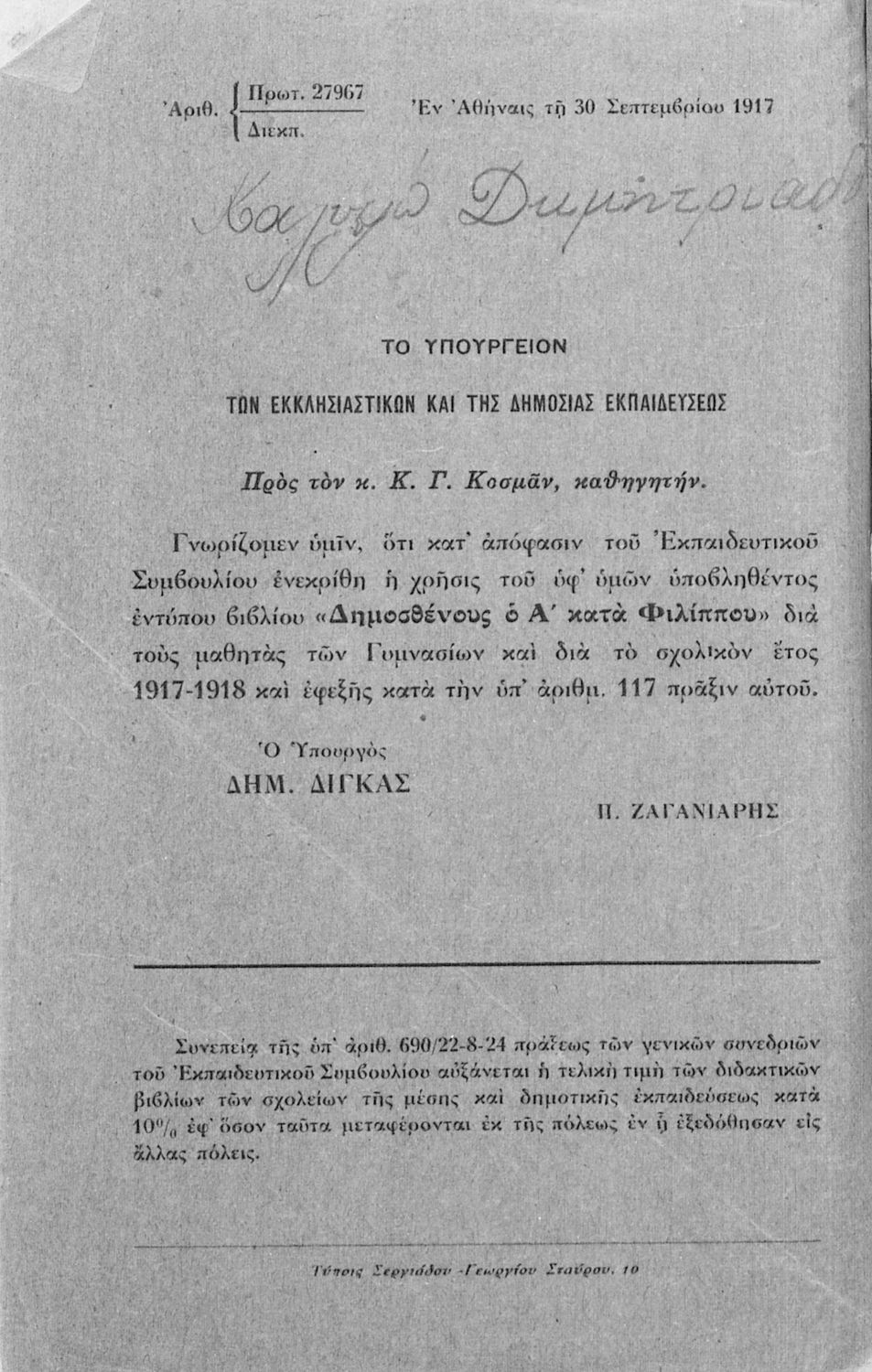 Υπουργική απόφαση / Σύμβαση: 27967/30-9-1917