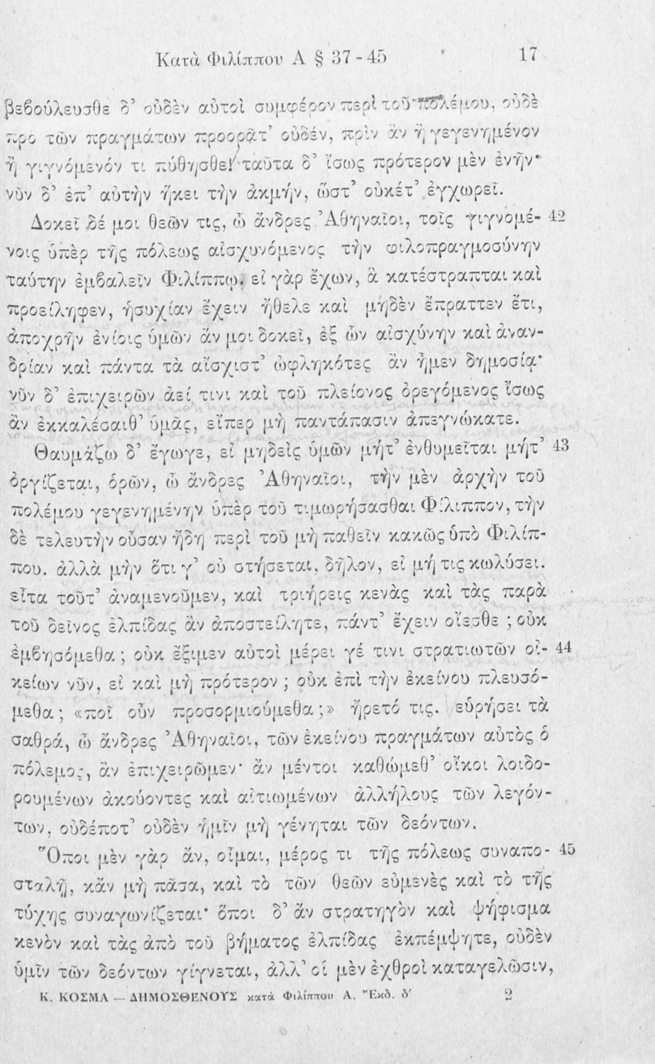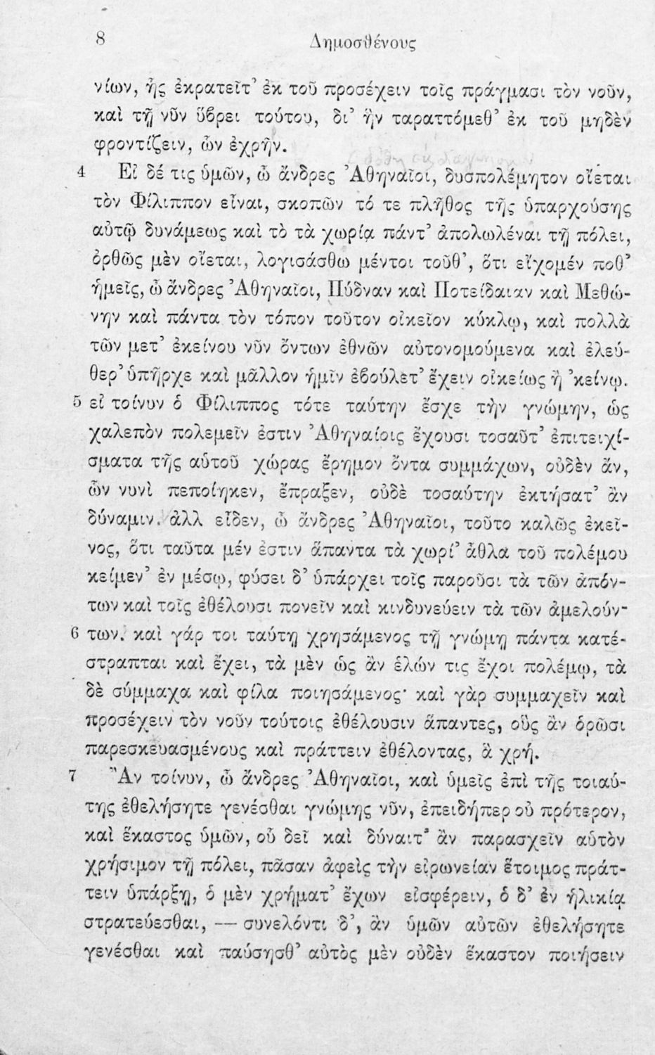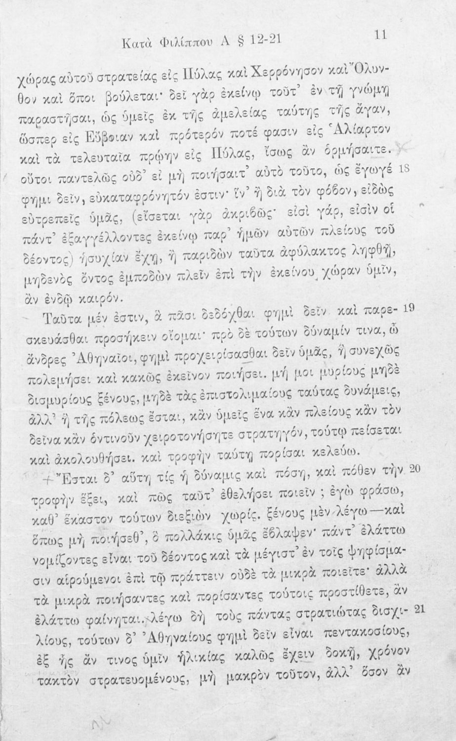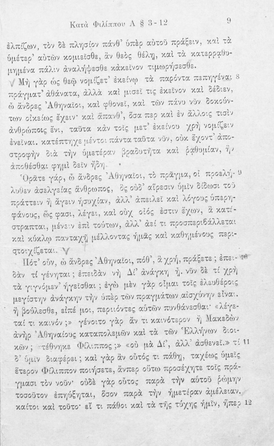 Σχολικό εγχειρίδιο Αρχαίων Ελληνικών Γ΄ Γυμνασίου που περιλαμβάνει τον Λόγο του Δημοσθένη Α΄ κατά Φιλίππου, εισαγωγικά σχόλια για το έργο και τον ζωή του Δημοσθένη, ερμηνευτικά και γραμματικά σχόλια και παρατηρήσεις.