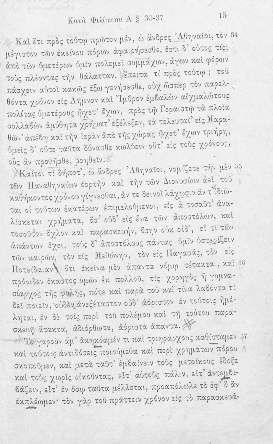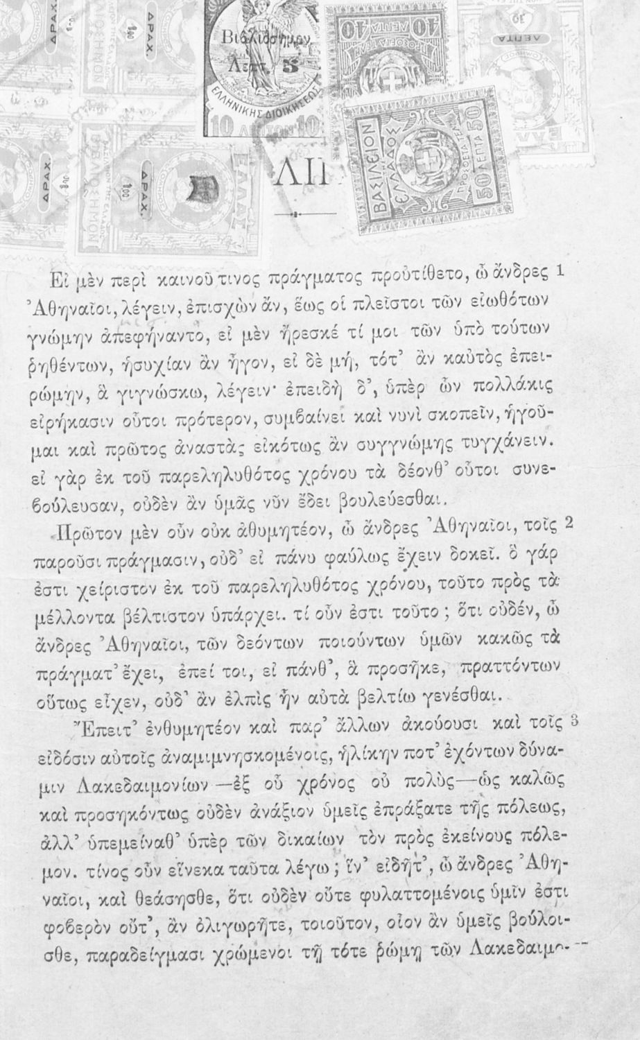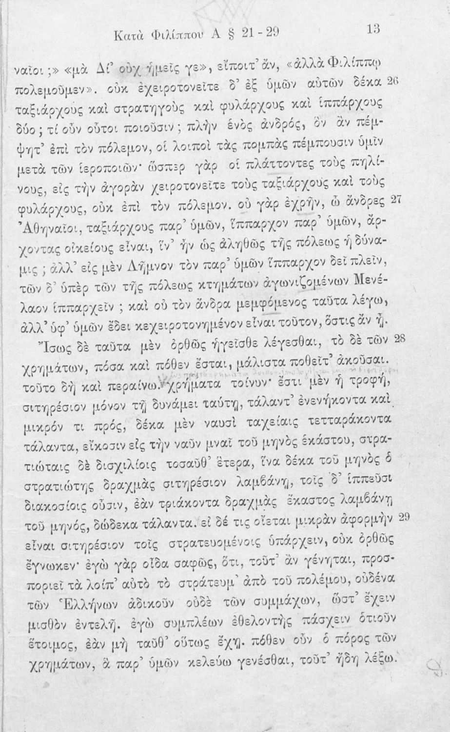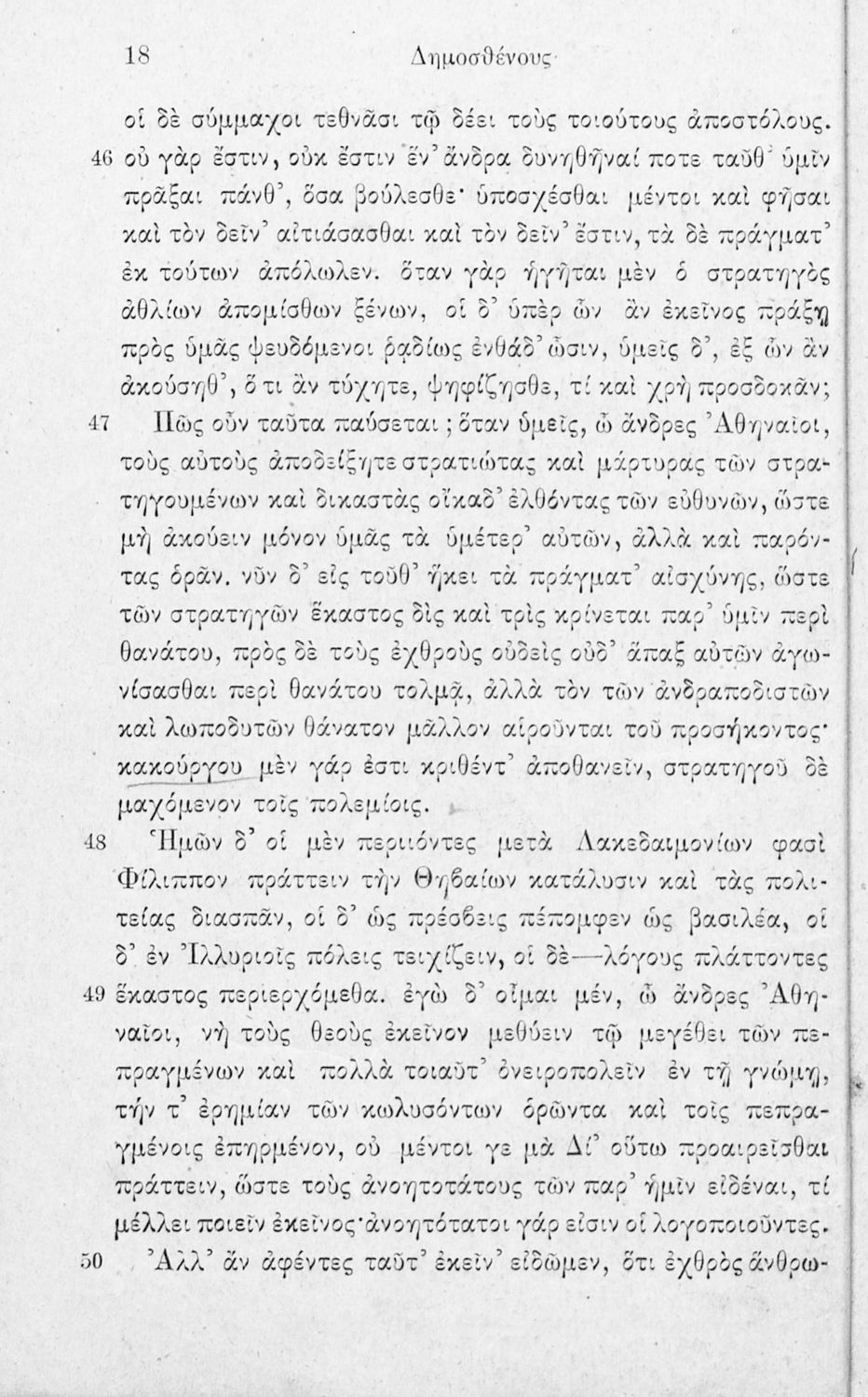 Σχολικό εγχειρίδιο Αρχαίων Ελληνικών Γ΄ Γυμνασίου που περιλαμβάνει τον Λόγο του Δημοσθένη Α΄ κατά Φιλίππου, εισαγωγικά σχόλια για το έργο και τον ζωή του Δημοσθένη, ερμηνευτικά και γραμματικά σχόλια και παρατηρήσεις.